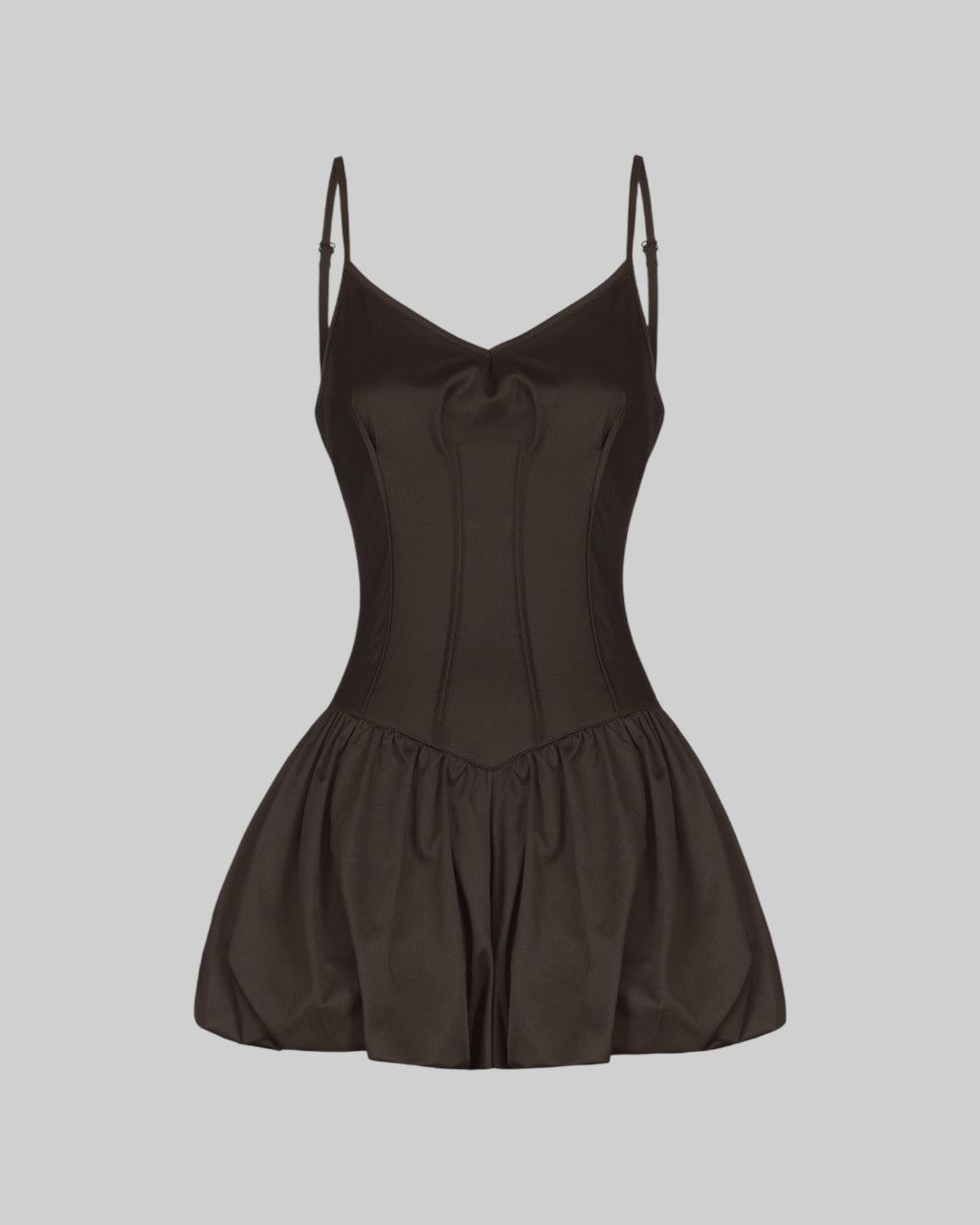 Комбинезон мини сшит, как корсет на тонких бретелях, юбка с двойными воланами.