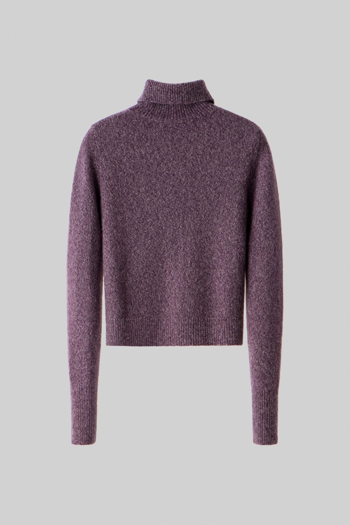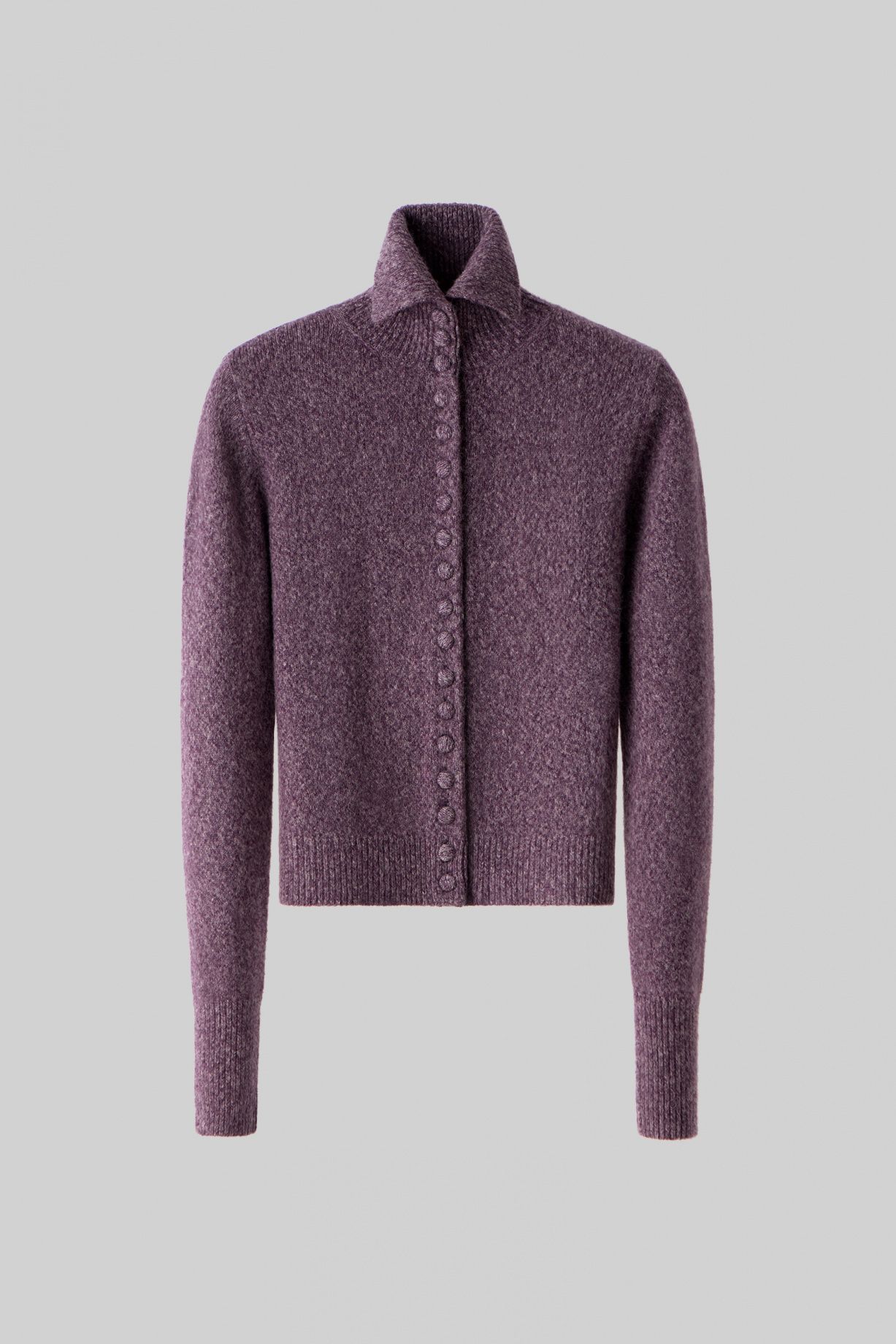 Трикотажный свитер из мягкой шерсти альпака с обтянутыми пуговицами, длинным рукавом и высоким воротником-стойкой. По низу изделия и рукавов выполнены эластичные манжеты-резинки. Свитер связан из смешанных нитей, что придаёт полотну мягкость, гладкость и приятную эластичность.