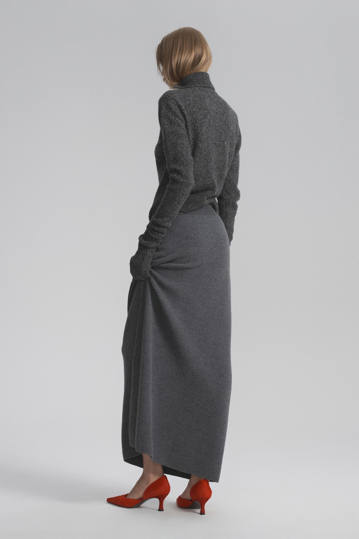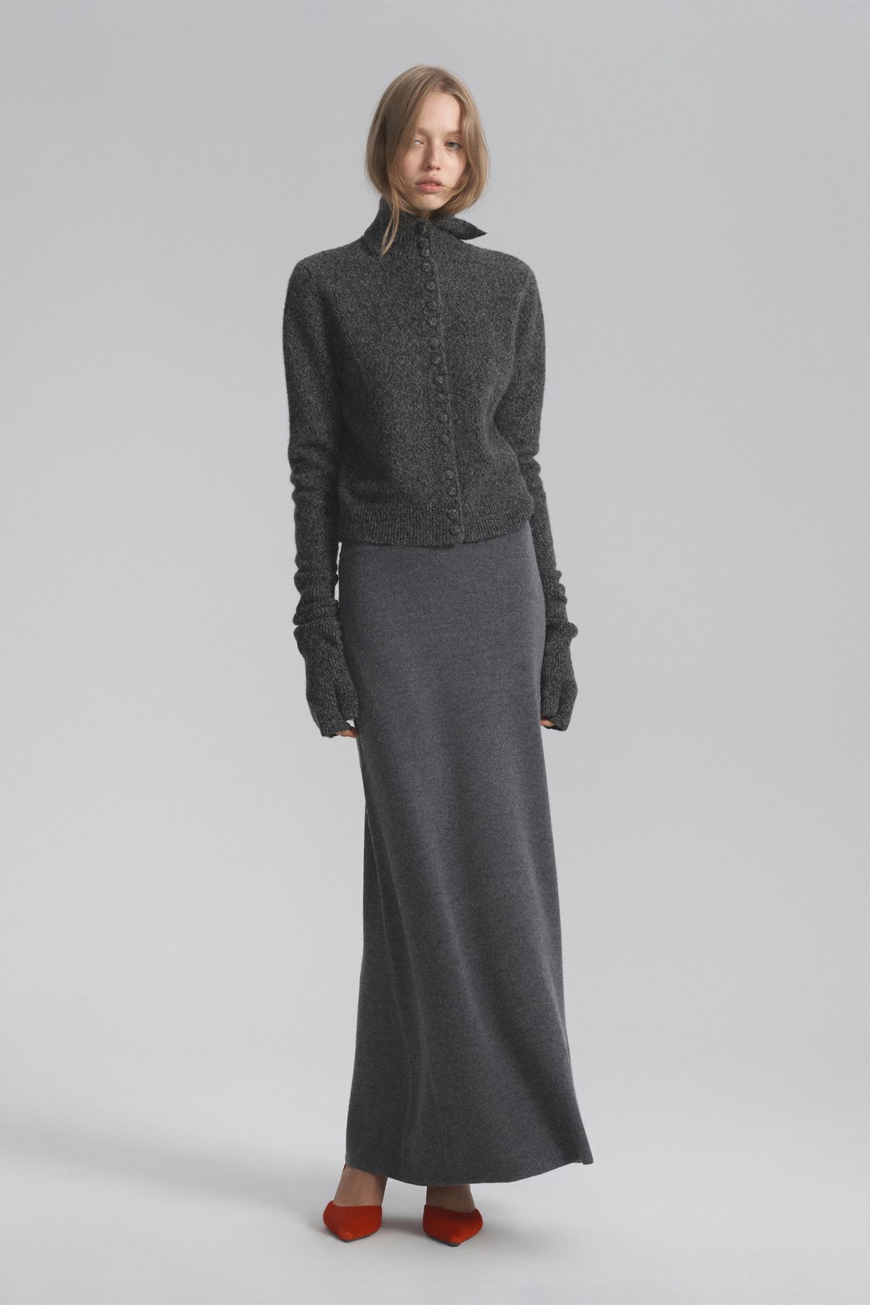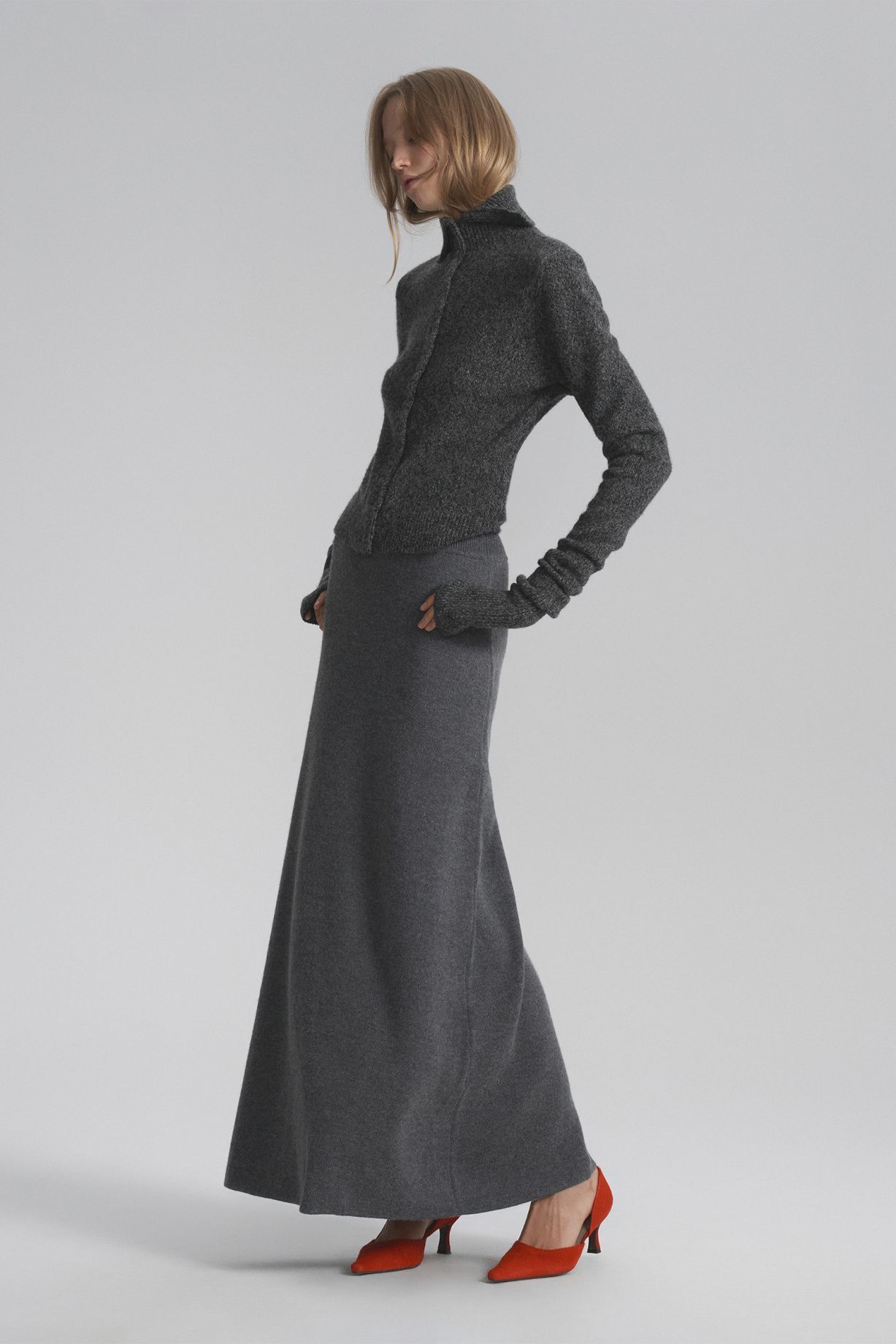 Трикотажный свитер из мягкой шерсти альпаки с обтянутыми пуговицами, длинным рукавом и высоким воротником - стойкой. По низу изделия и рукавов вывязаны манжеты-резинки. Основное переплетение кулирная гладь - где тонкое, гладкое и эластичное трикотажное полотно вяжется из смешанных нитей, создавая приятную на ощупь ткань.Состав: 80% шерсть мериноса 15% вискоза 5% эластан