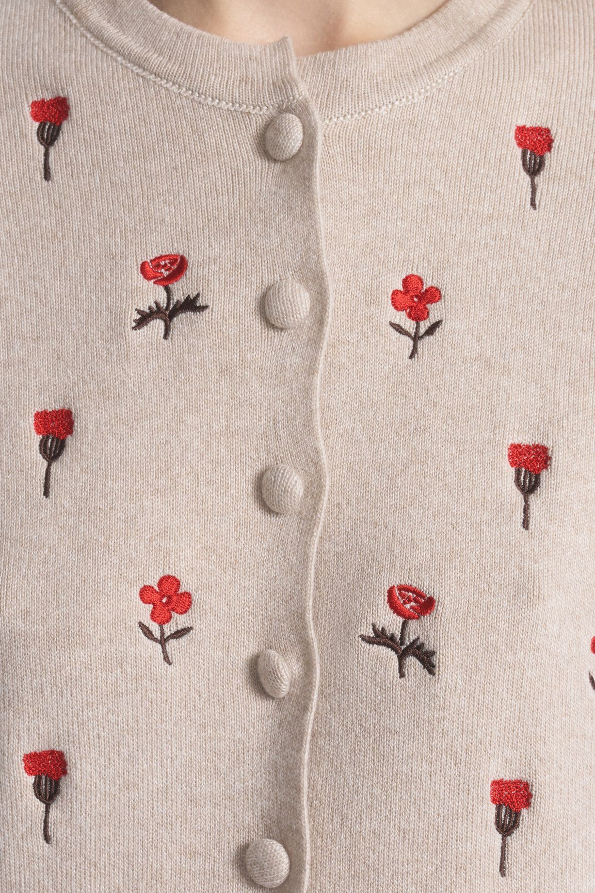 Кардиган из итальянского трикотажа, с вышивкой, в составе премиальный кашемир и шелк, с пуговицами обтянутыми тканью в тон.Состав: 40% кашемир, 40% вискоза, 20% шёлк