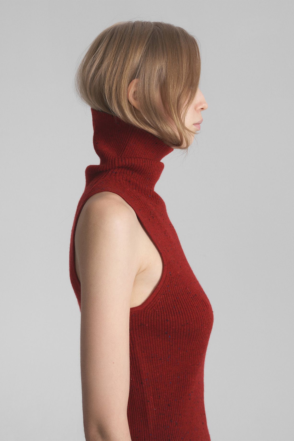 Удлинённый трикотажный топ из мягкой мериносовой шерсти с высоким воротником-стойкой. Можно носить самостоятельно или сочетать с жакетом: это универсальная база на каждый день и любой сезон.Состав: 80% шерсть мериноса, 15% вискоза, 5% эластан