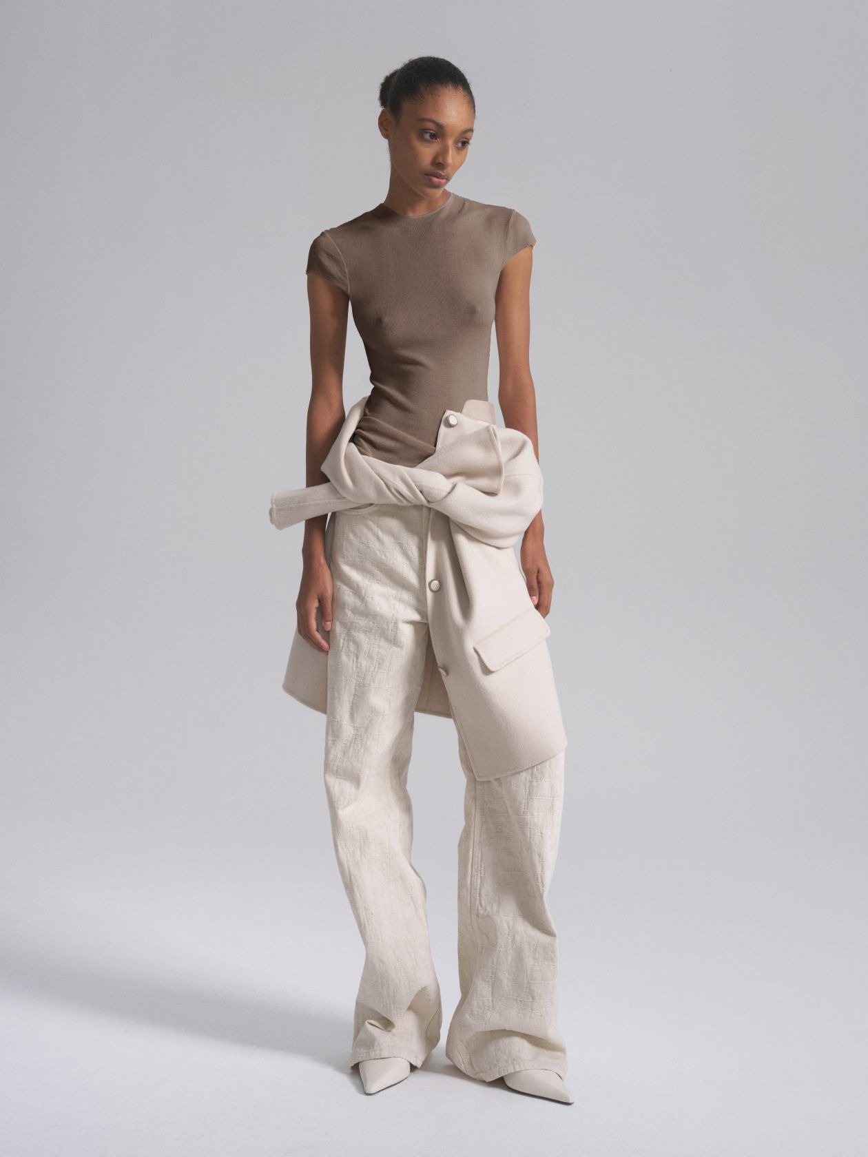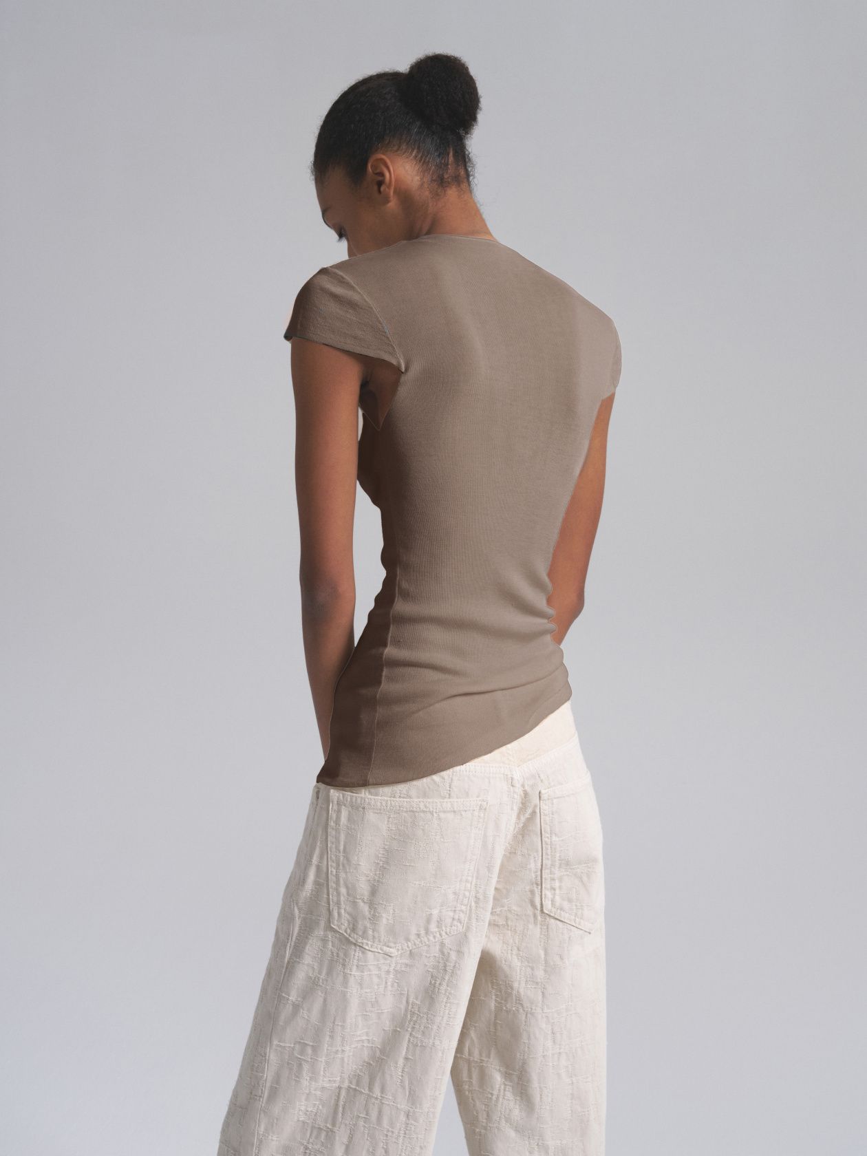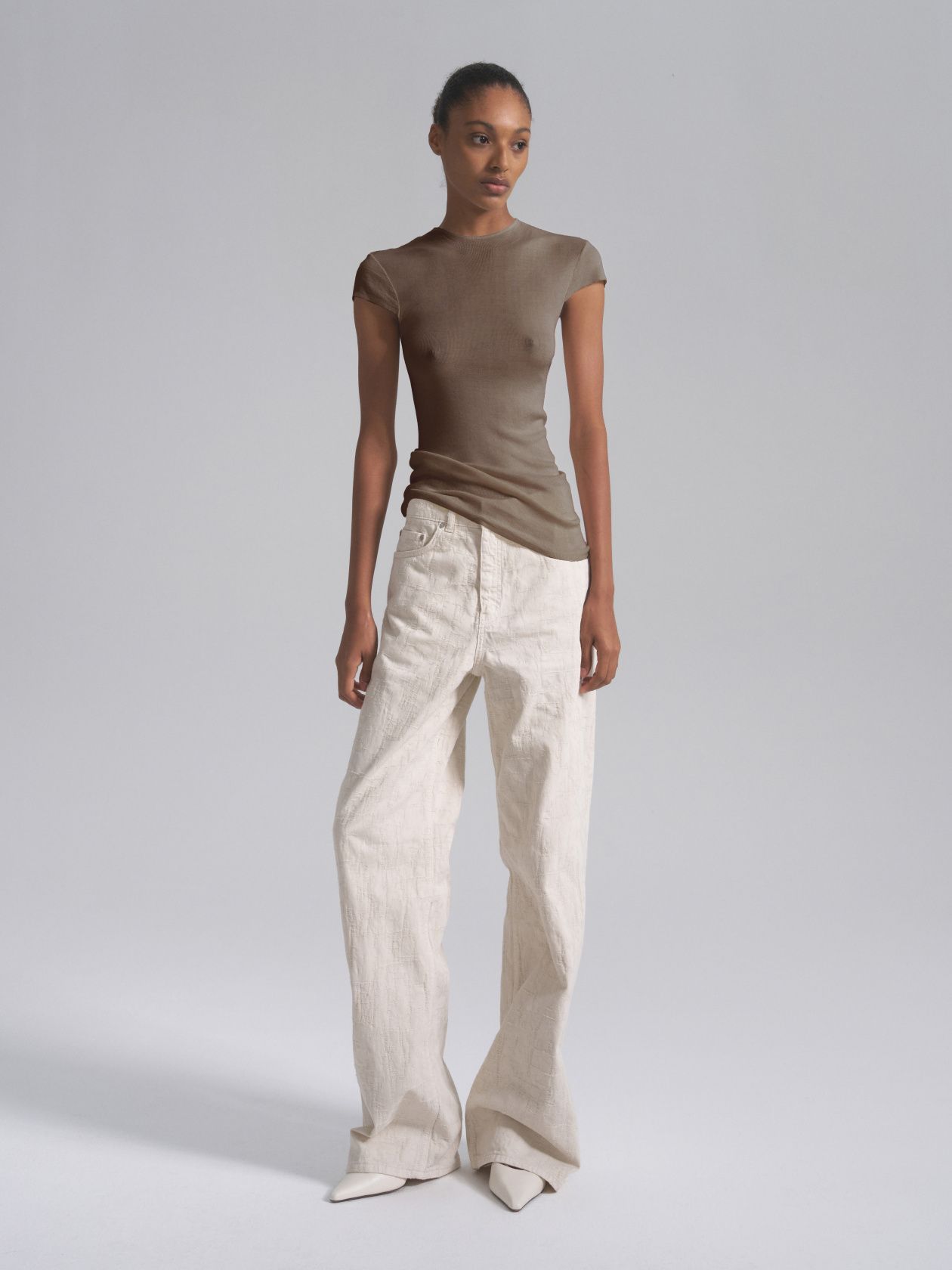 Приталенная футболка с короткими рукавами из кашемира и шелка. Изделие выполнено из плотного трикотажа, который держит форму и создаёт идеальную посадку по фигуре. Бесшовный воротник сохраняет чёткую форму даже после многократной носки.Состав: 80% шёлк 20% кашемир