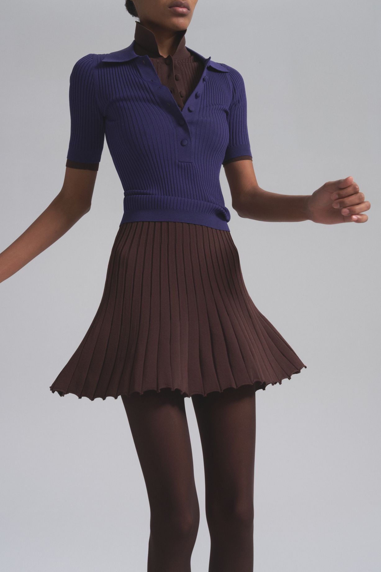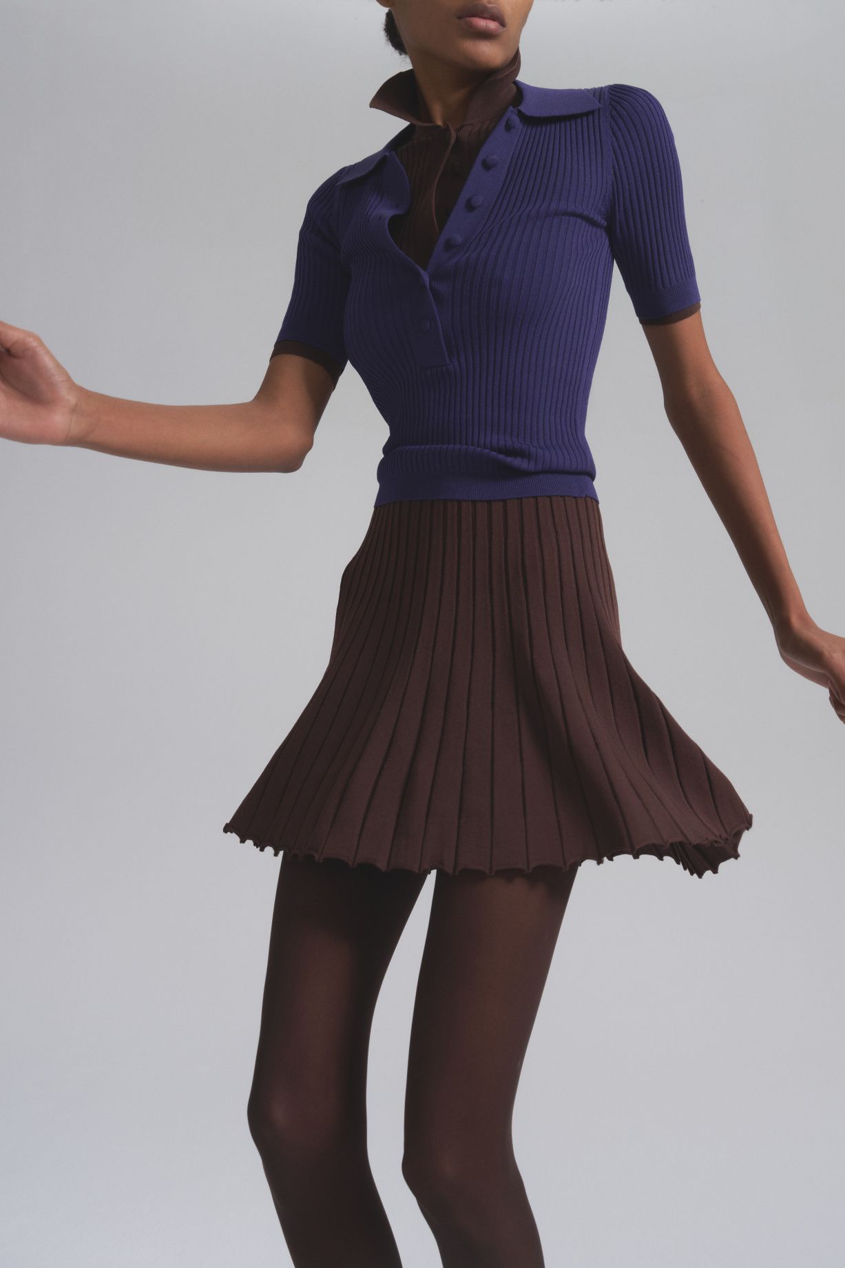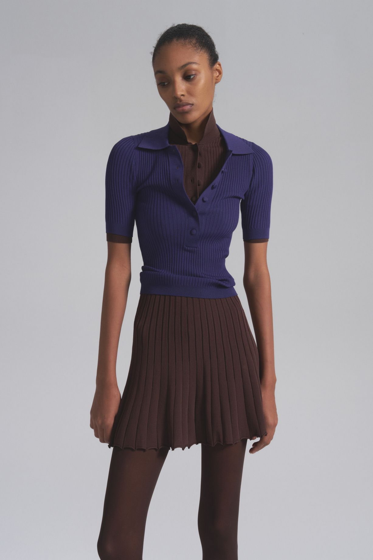 Приталенное трикотажное поло с обтянутыми пуговицами. Благодаря трикотажу с содержанием эластана изделие идеально держит форму и подчеркивает изгибы и достоинства фигуры. Дизайн поло вдохновлен эстетикой платья Джульетта и дублирует его фирменные черты, поэтому в сочетании они создают гармоничный и стильный образ.