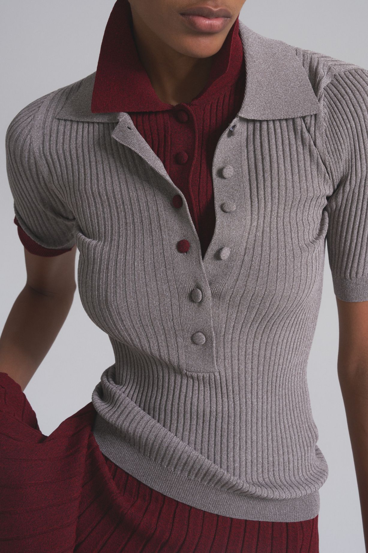 Приталенное трикотажное поло с обтянутыми пуговицами. Благодаря трикотажу с содержанием эластана изделие идеально держит форму и подчеркивает изгибы и достоинства фигуры. Дизайн поло вдохновлен эстетикой платья Джульетта и дублирует его фирменные черты, поэтому в сочетании они создают гармоничный и стильный образ.