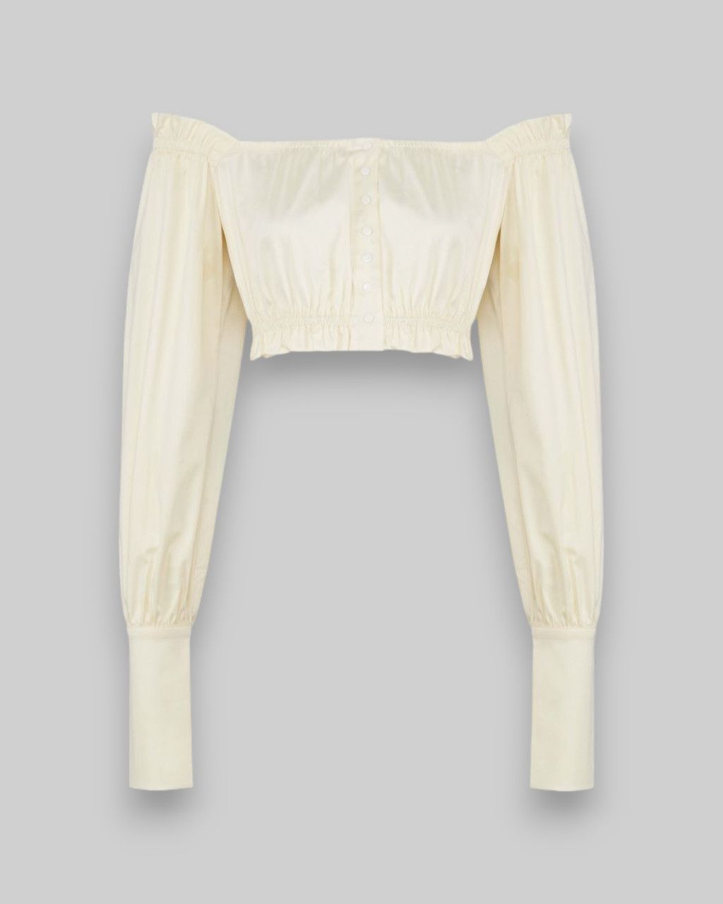 Укороченный топ с рукавами и удлиненными манжетами.Состав: 91% вискоза, 9% эластан