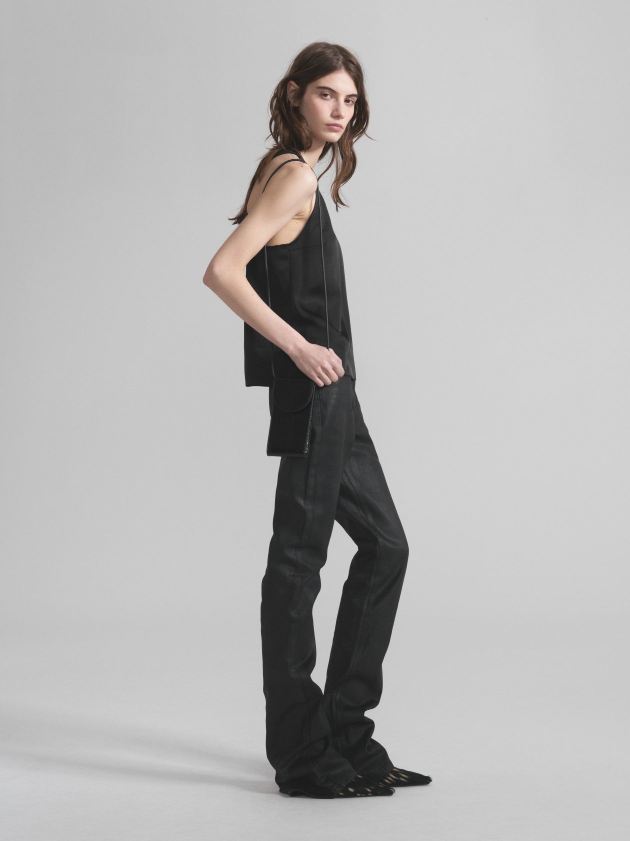 Классическая майка-топ с легким сатиновым блеском. Минималистичный дизайн подчеркивает линию плеч и ключиц за счет открытой проймы. Модель дополнит любой повседневный и вечерний образ, став идеальной основой вашего базового гардероба.