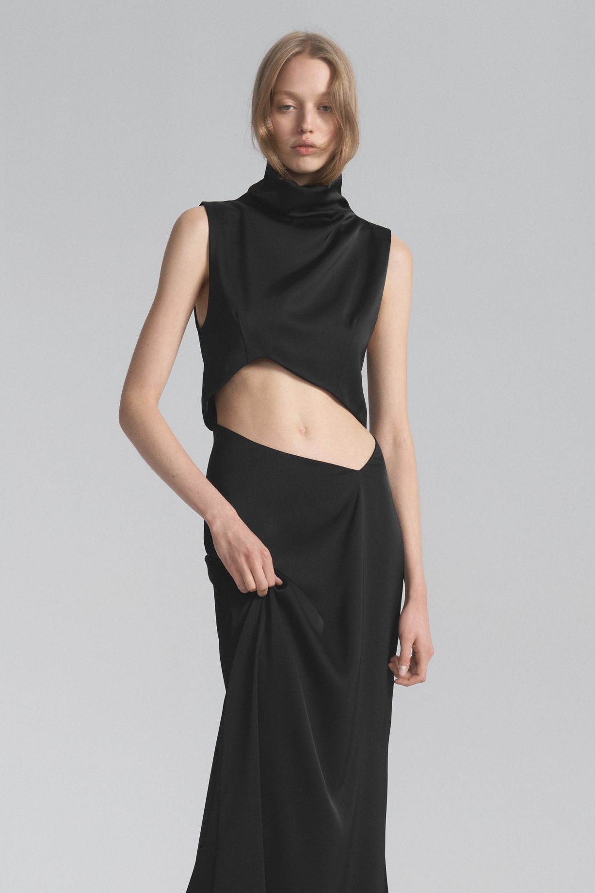Шелк с легким блеском и роскошь, вискоза обеспечивают мягкость и драпировку, создавая солнечный и изысканный образ. Высокий воротник и удлиненная кроя подчеркивают силуэт и придают образу уникальность и женственность. Застегивается на молнию.Состав: 70% вискоза, 30% шелк