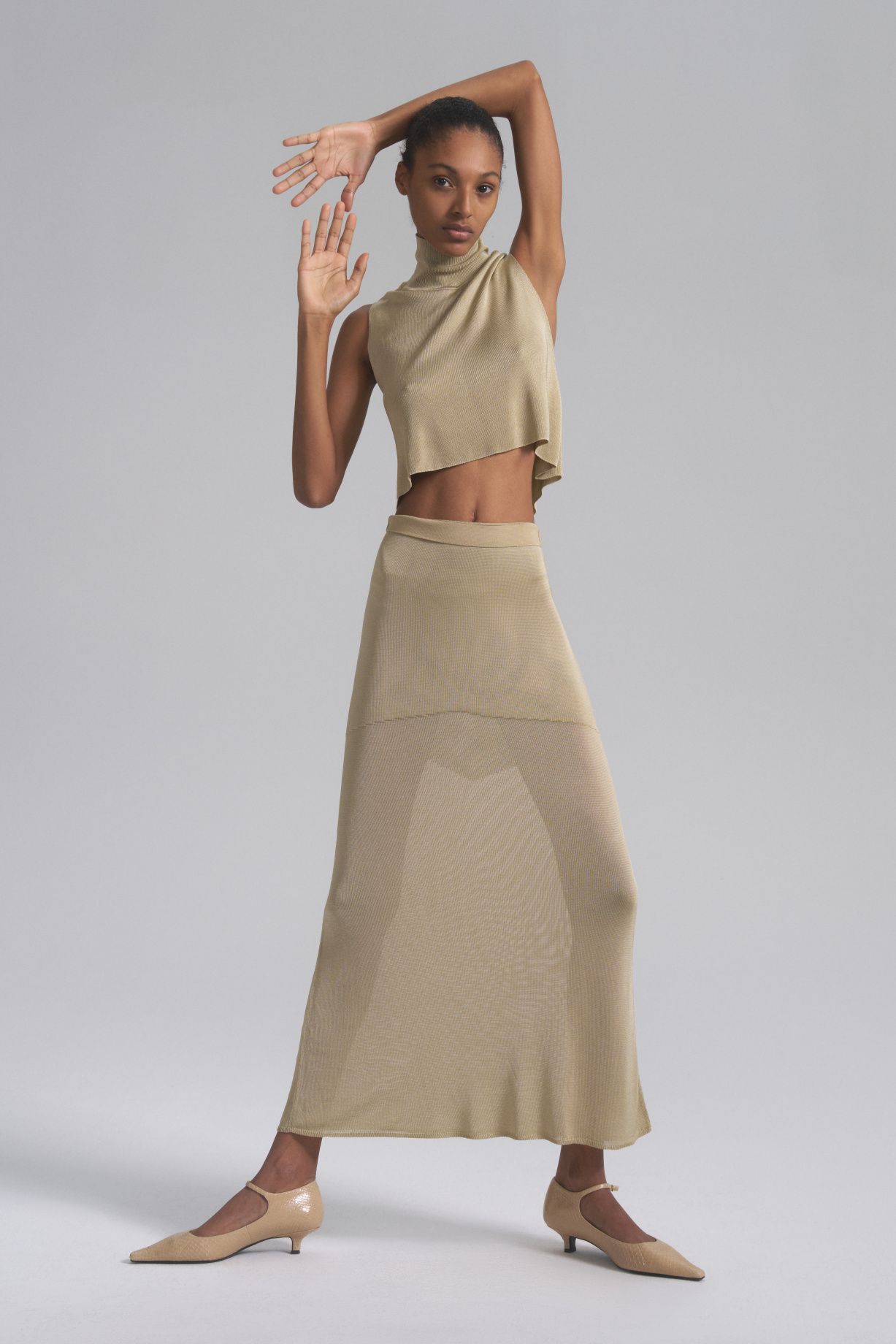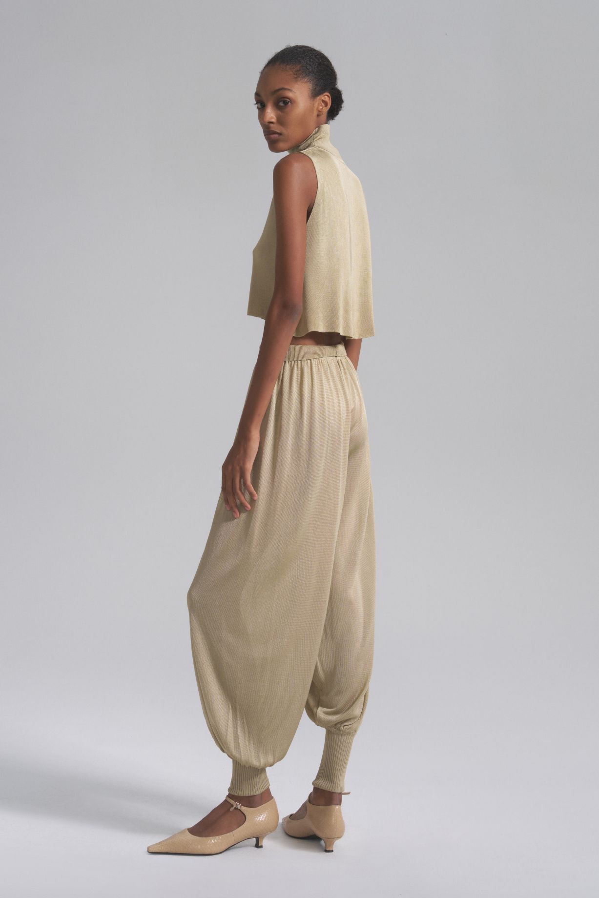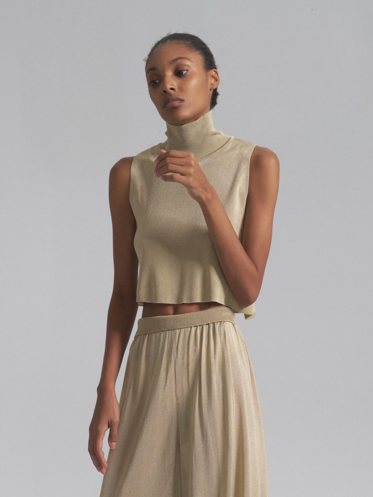 Укороченный топ Наоми с высоким воротом станет идеальным дополнением к вашему гардеробу. Материал создает мягкость и драпировку, а также блеск и роскошь, что делает топ идеальным для любого случая.Состав: 80% вискоза, 20% шелк