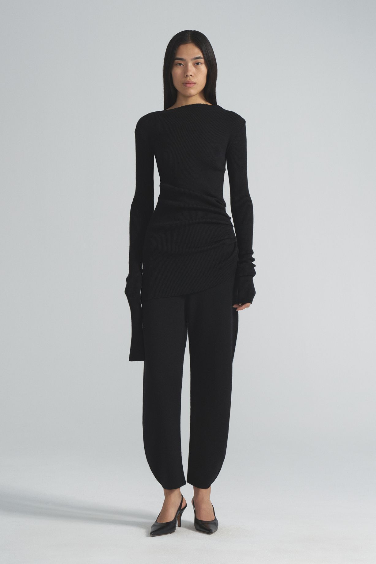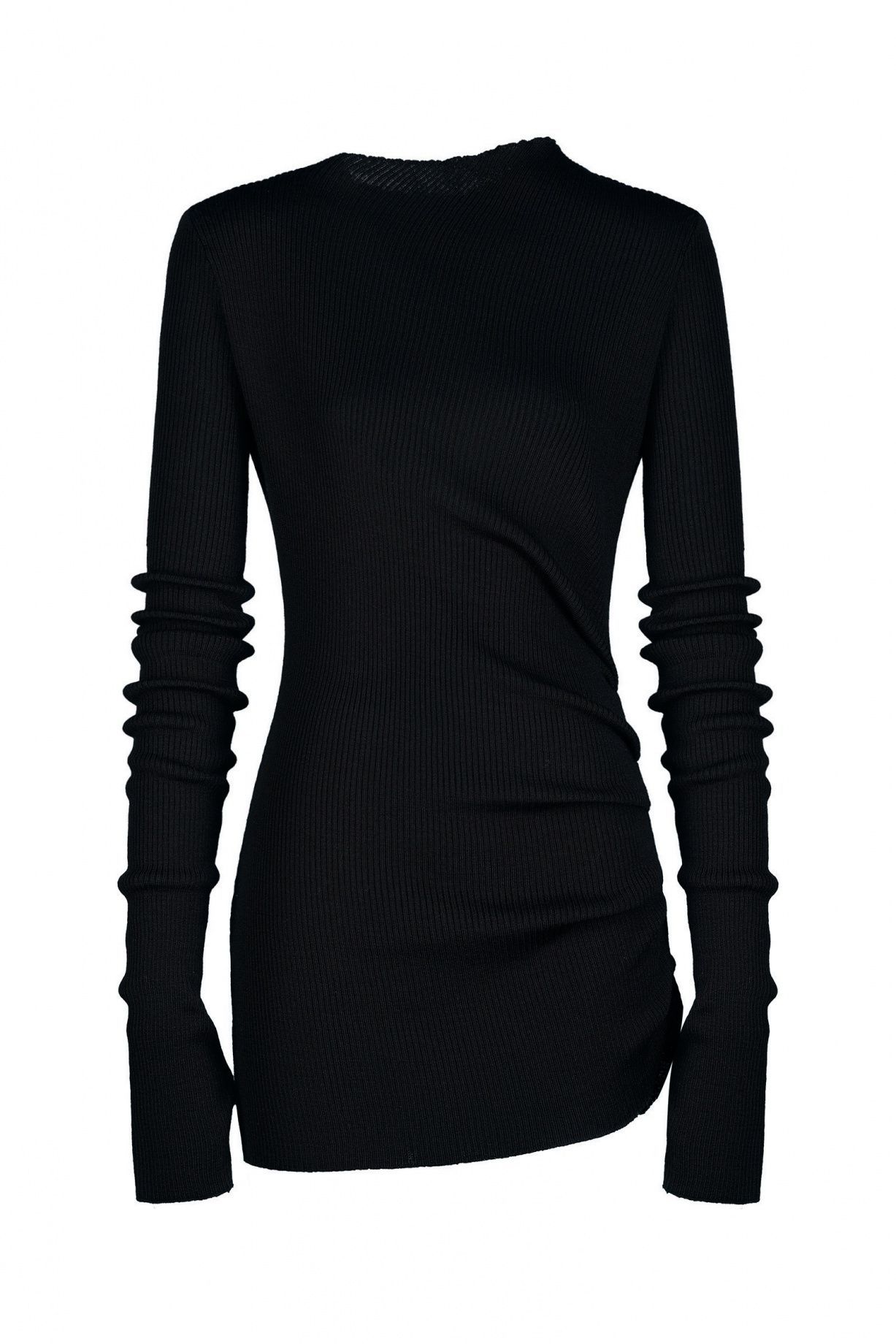 Мини-платье с асимметричным кроем из шерсти австралийского мериноса, сборка по боковому шву, ажурная обработка горловины.Состав: 100% шерсть австралийского мериноса