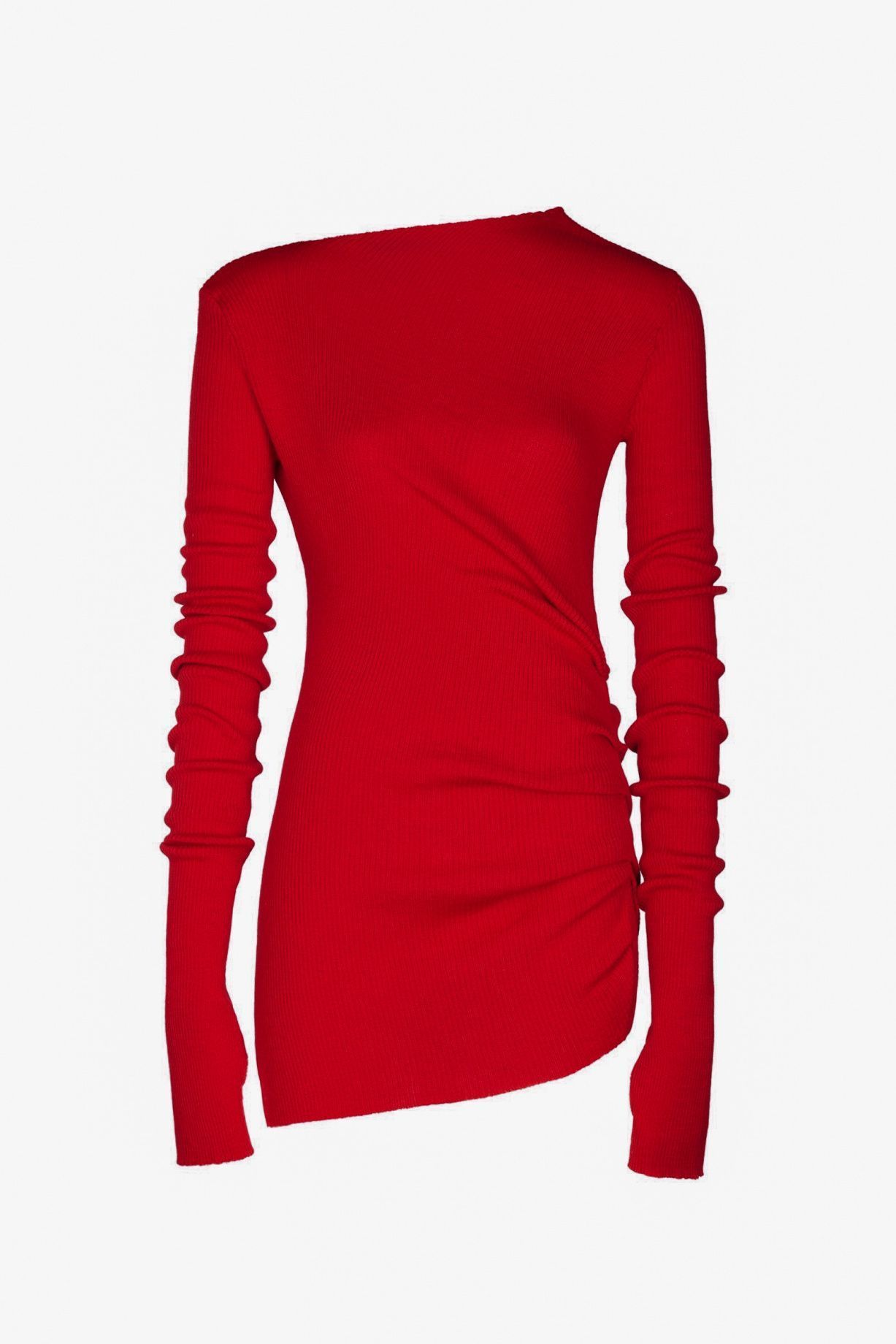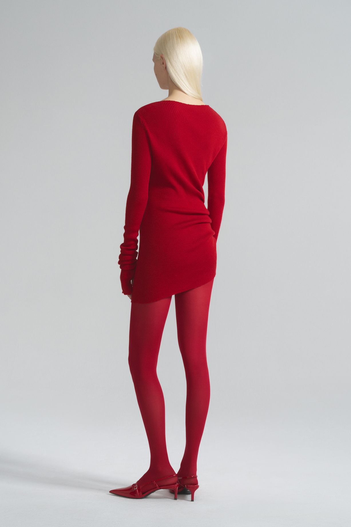 Мини-платье с асимметричным кроем из шерсти австралийского мериноса, сборка по боковому шву, ажурная обработка горловины.Состав: 100% шерсть австралийского мериноса