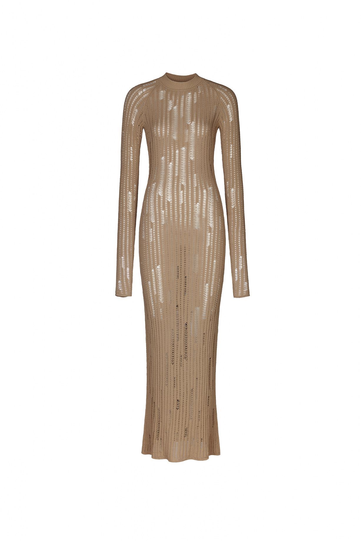 Платье макси с длинным рукавом и круглым вырезом горловины, изготовлено из премиального итальянского трикотажа с составом 91% вискозы и 9% эластана.Состав: 91% вискоза, 9% эластан