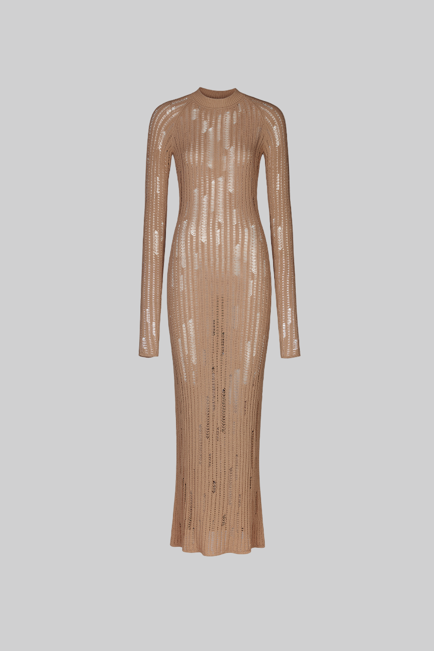 Платье макси с длинным рукавом и круглым вырезом горловины, изготовлено из премиального итальянского трикотажа с составом 91% вискозы и 9% эластана.Состав: 91% вискоза, 9% эластан