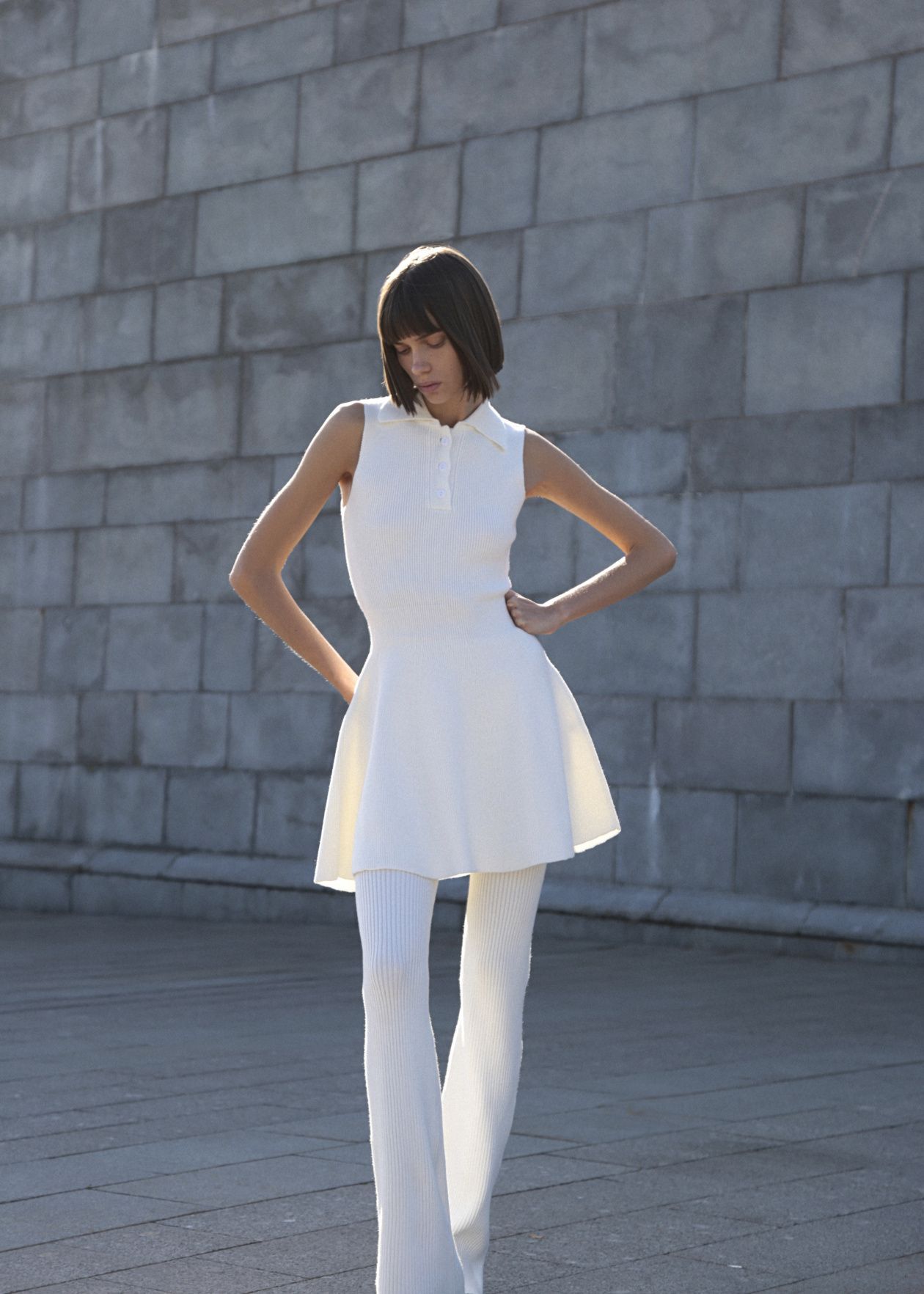 Платье-клеш из плотного трикотажа. В составе изделия теплая шерсть и мягкая вискоза. Модель с пышным расклешенным подолом и приталенным силуэтом дополнена отложным воротником.Состав: 80% вискоза, 20% шерсть