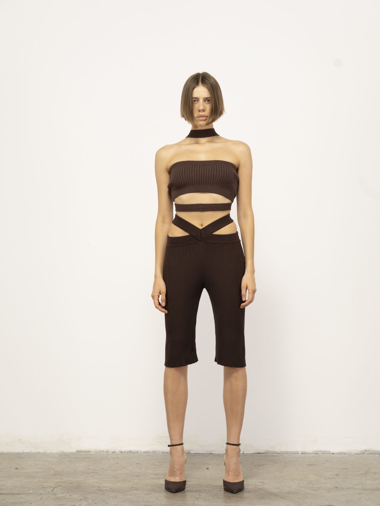 Удлиненные шорты с Х-образным поясом подчеркивающим талию.Состав: 100% вискоза