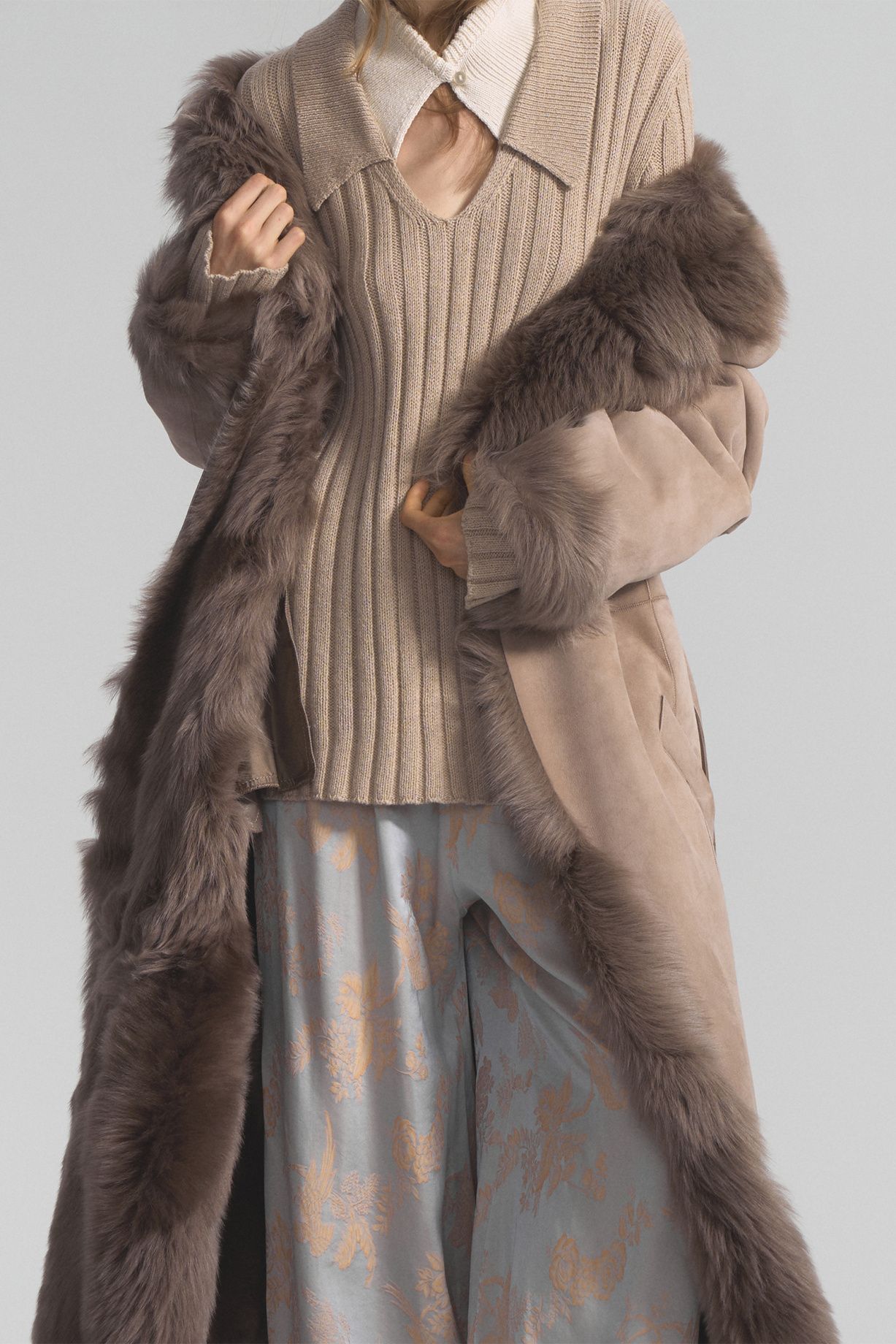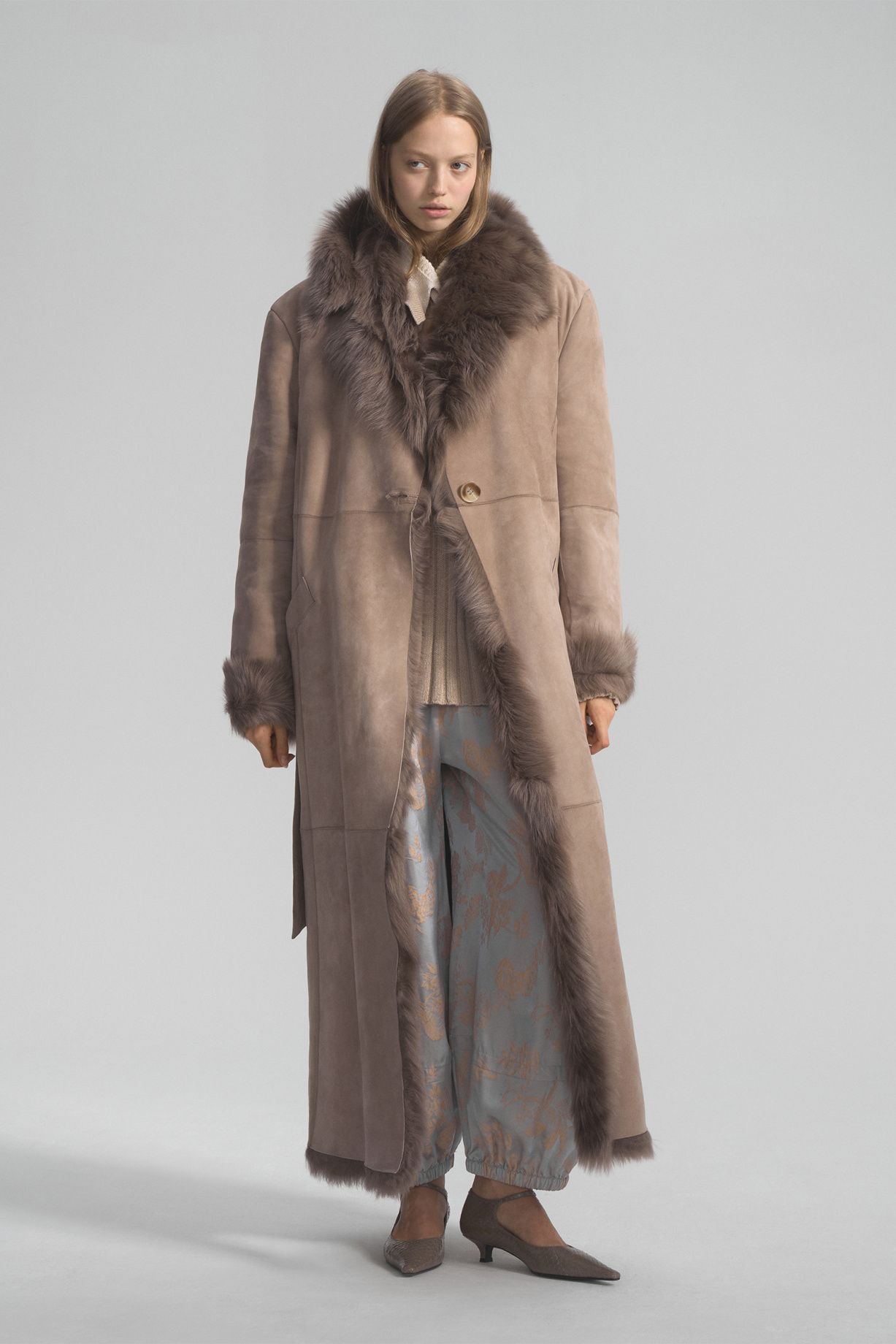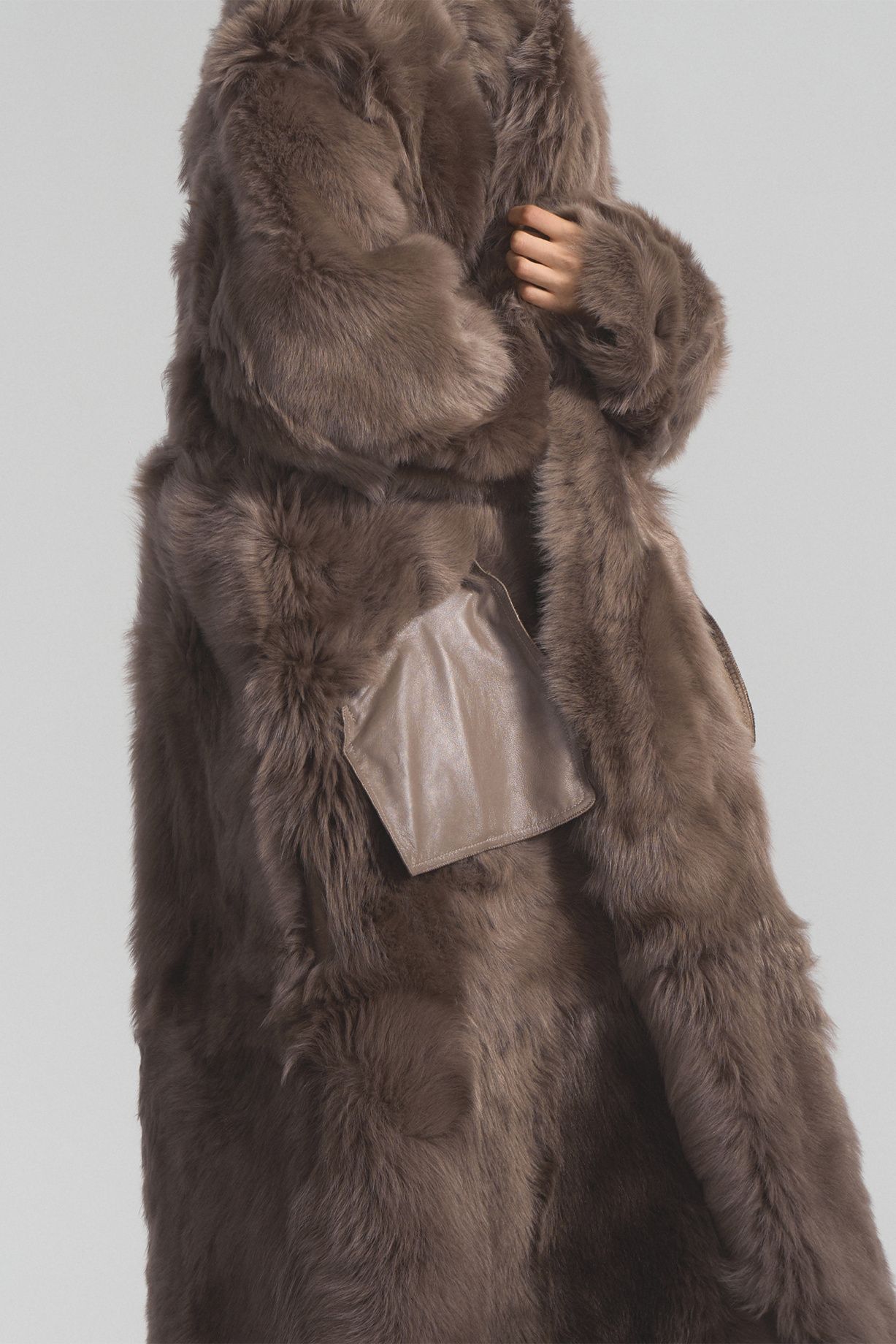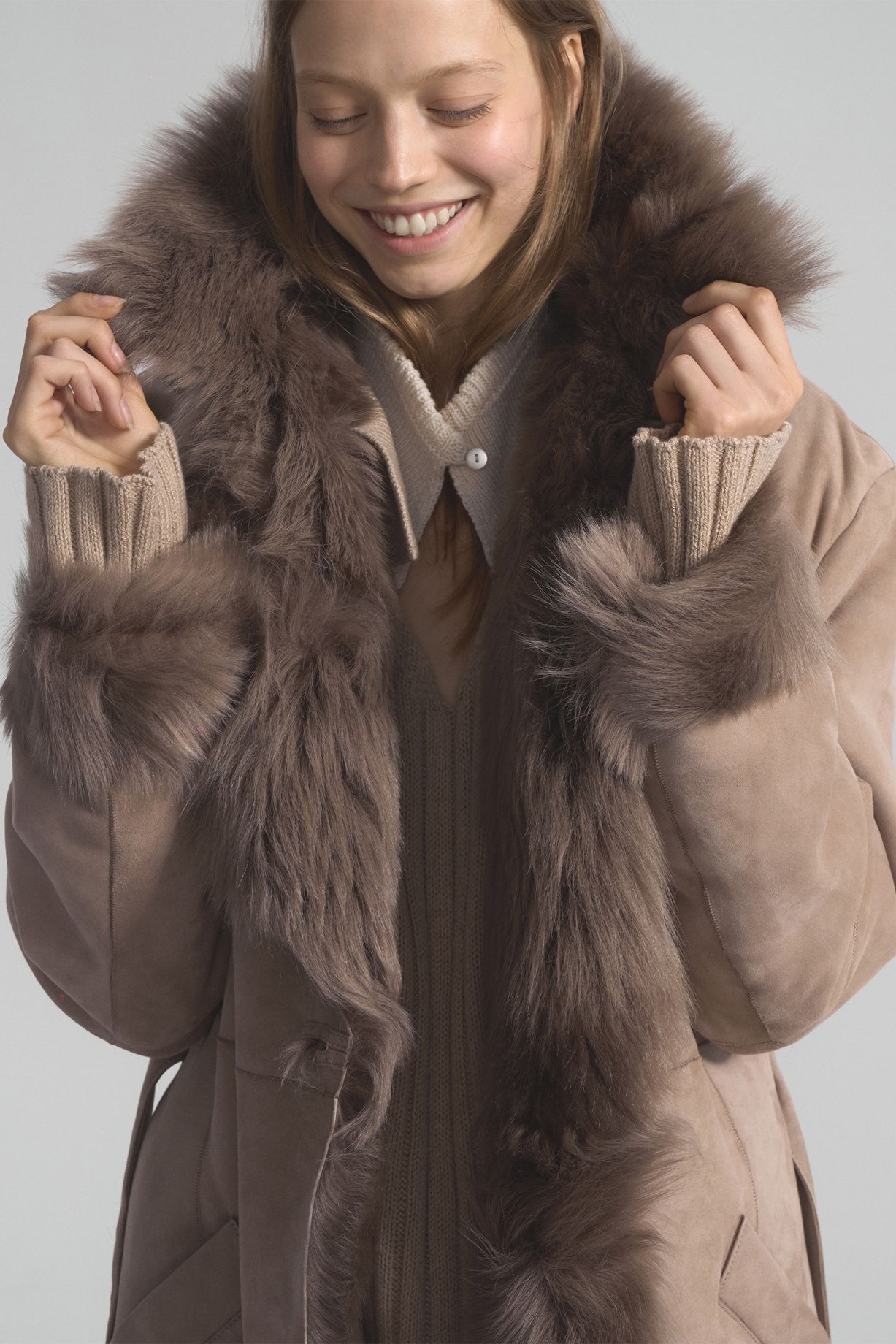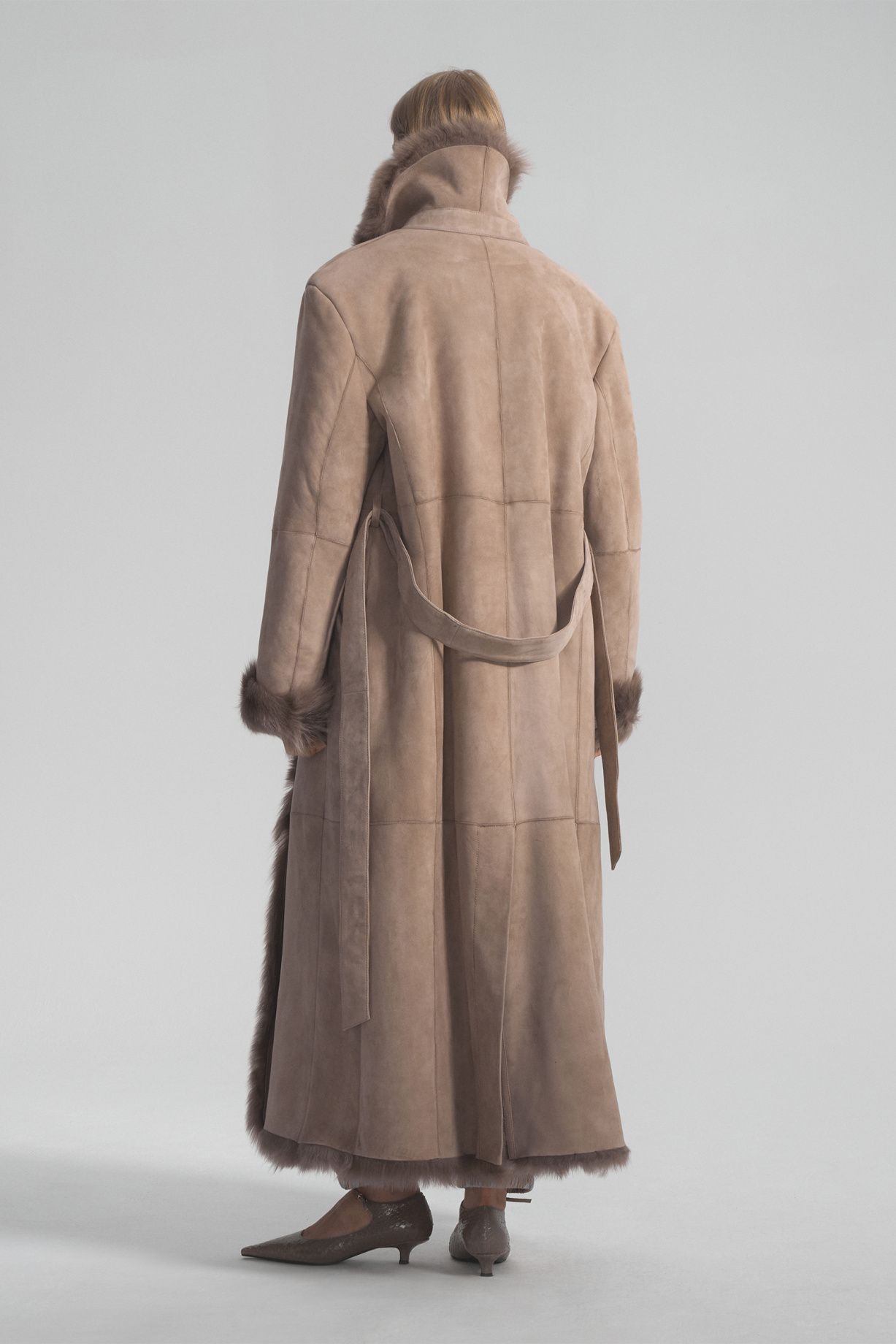 Дубленка из натуральной тосканской овчины цвета этуп. Модель длиной макси, объемного силуэта "оверсайз". Дополнена симметричными карманами и поясом того же цвета, что и изделие. Удобна в холодное время года.Состав: 100% натуральная овчина
