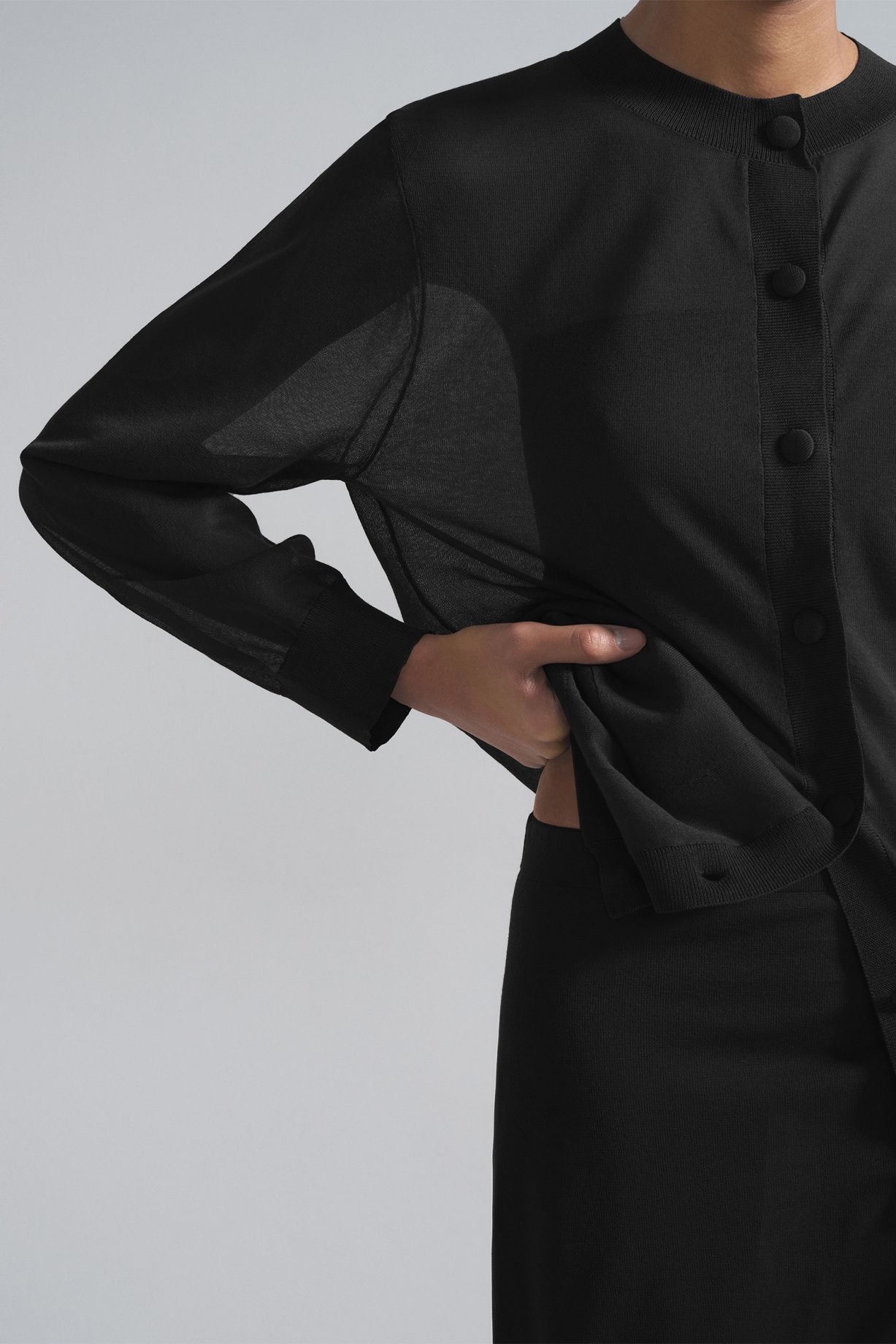 Прямая прозрачная юбка с небольшим расклешением к низу на цельновязанном поясе с резинкой.Состав: 20% шелк, 60% вискоза, 20% нейлон