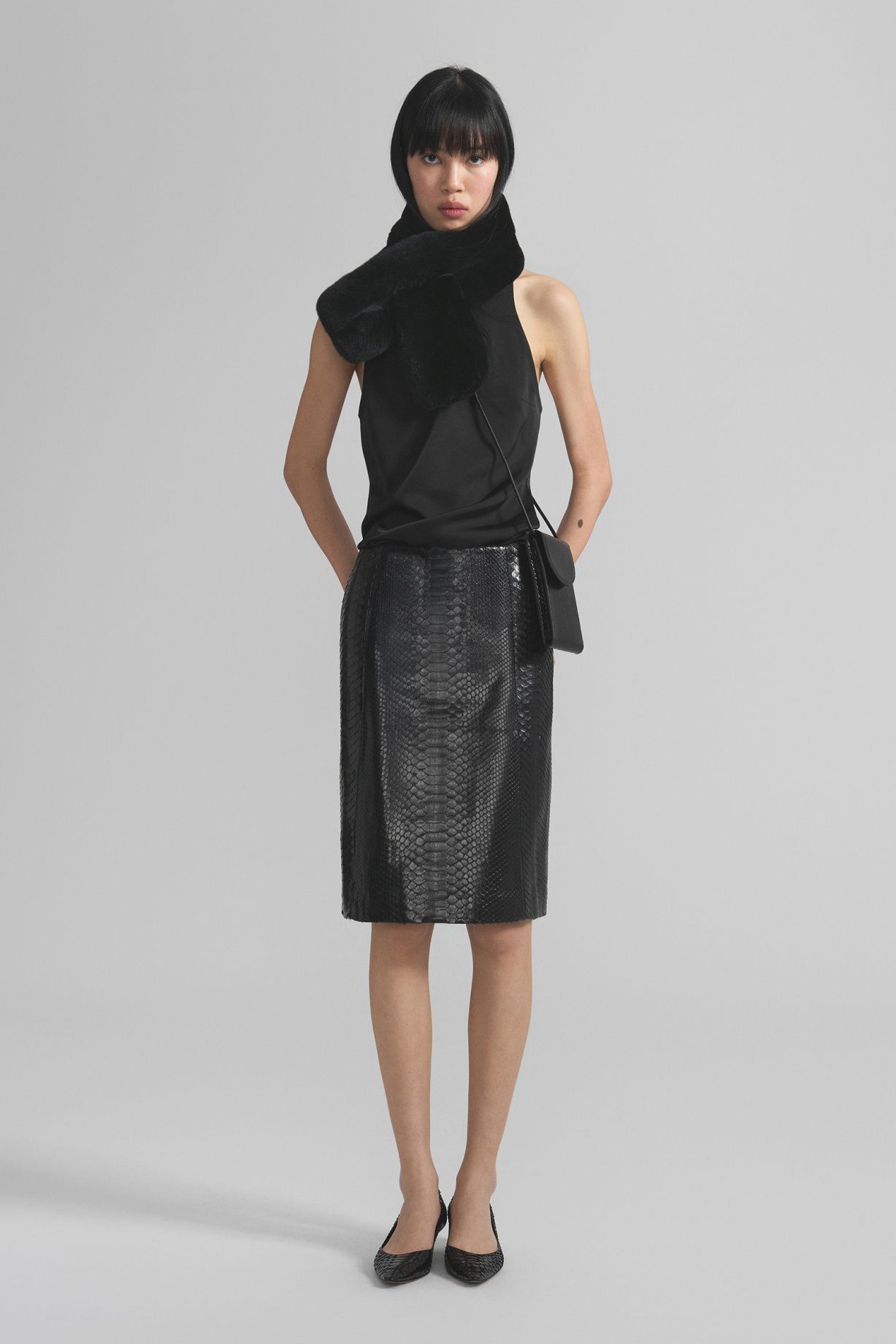 Юбка миди из экзотической кожи питона премиального качества. Материал обладает чётким рельефным рисунком чешуи и приятен на ощупь. Прямой силуэт и посадка по линии талии создают стройный, выверенный контур. Застёжка на потайной молнии расположена вдоль пояса. Карманы в боковых швах выполнены незаметно, не нарушая линий юбки. Для цельного и идеального образа к юбке можно подобрать жакет из экзотической кожи питона (арт. 00001580).