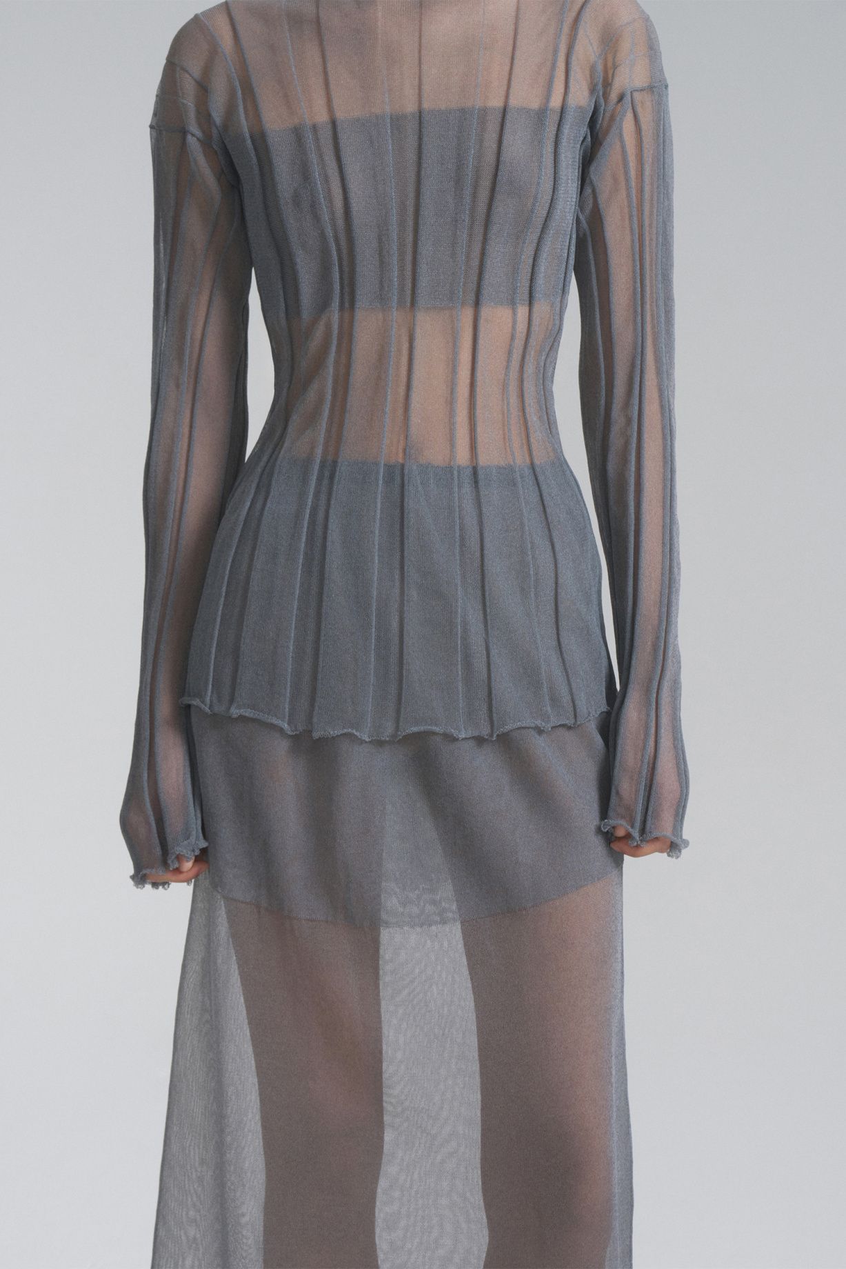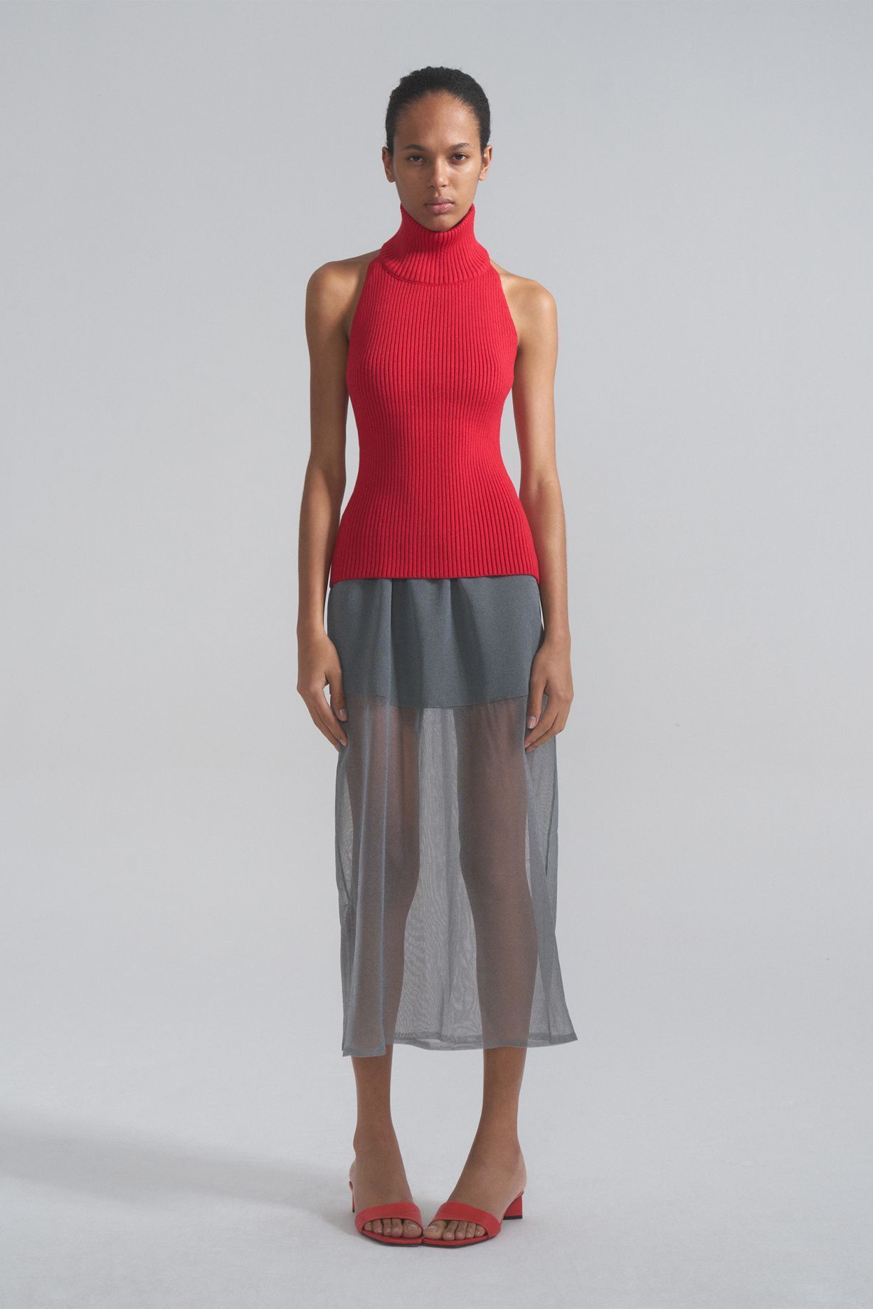 Юбка из невесомого итальянского трикотажа с небольшими расклешениями, с более плотной вязкой на линии бедер и резинкой на поясе.Состав: 100% нейлон