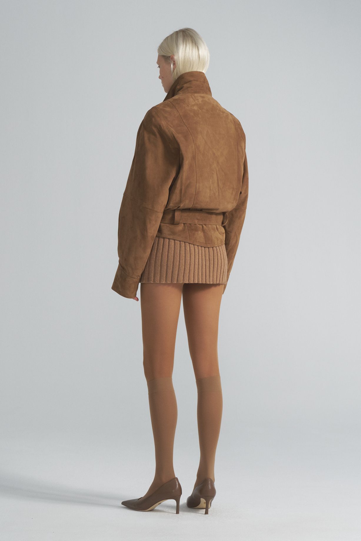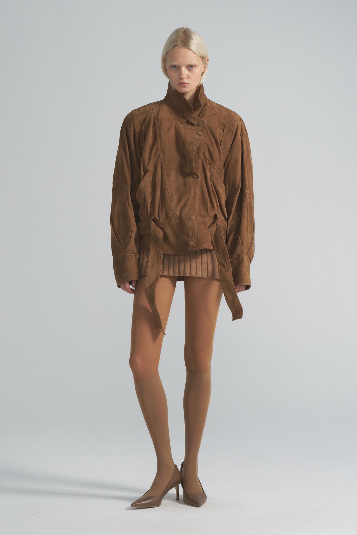 Двубортная замшевая куртка с плавной линией плеч, лацканами и поясом на талии из премиальной замши ручной работы.Состав: 100% натуральная замша/кожа
