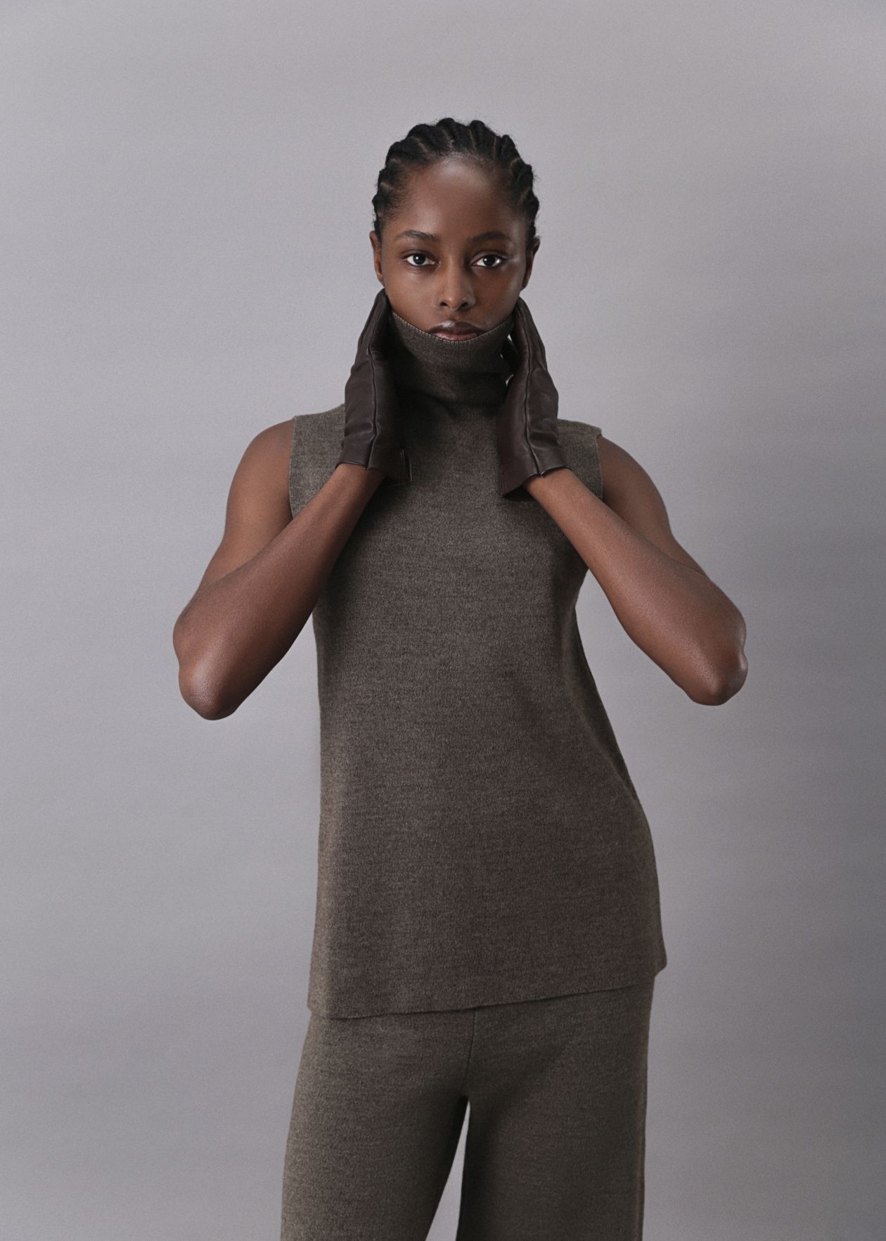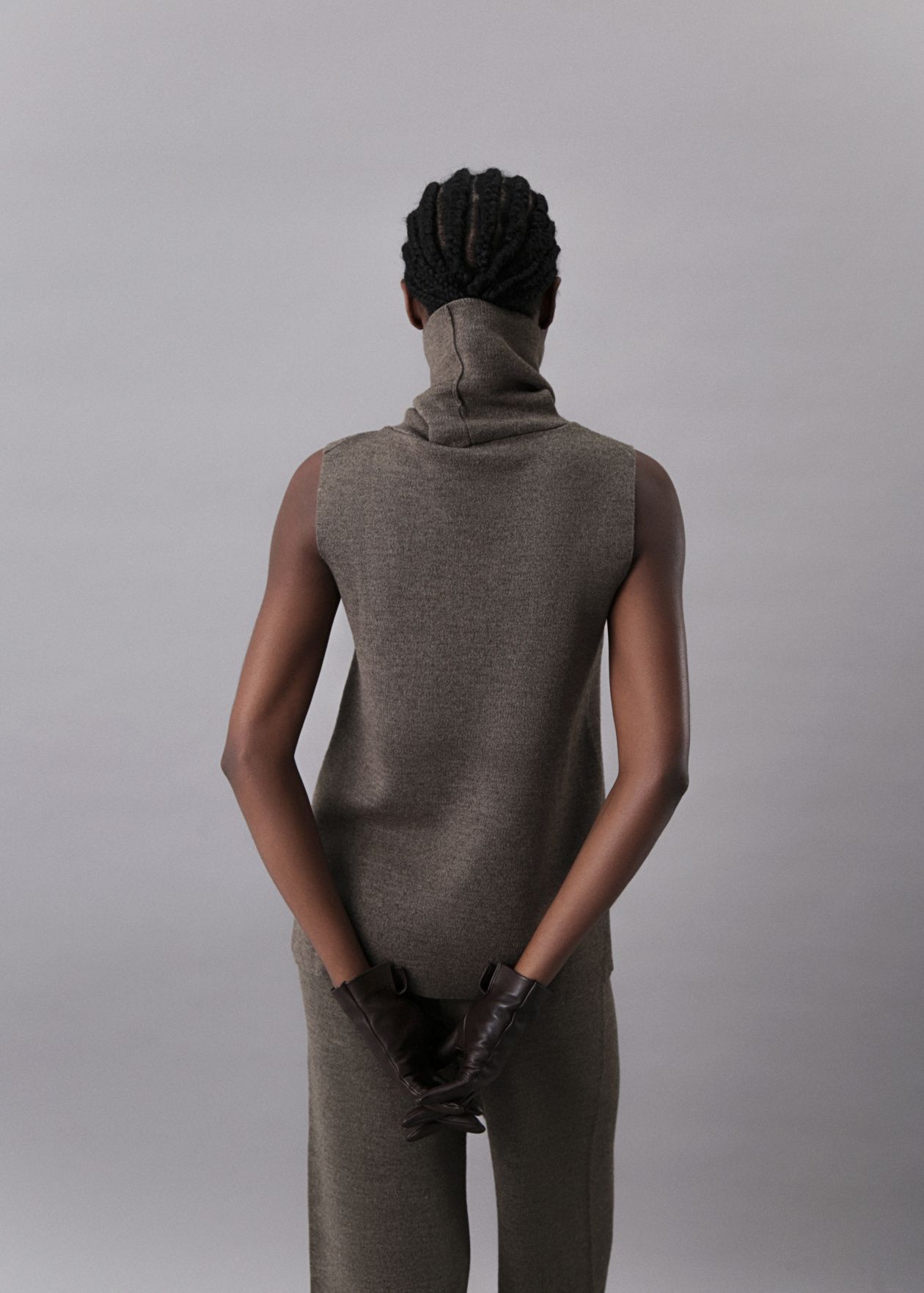 Жилет с воротником-стойкой, сшитый из нежного итальянского трикотажа, станет стильным и уютным дополнением вашего гардероба. Шерсть австралийского мериноса обеспечивает невероятную мягкость и тепло, а вискоза добавляет драпировку и легкость.Состав: 60% шерсть австралийского мериноса, 40% вискоза