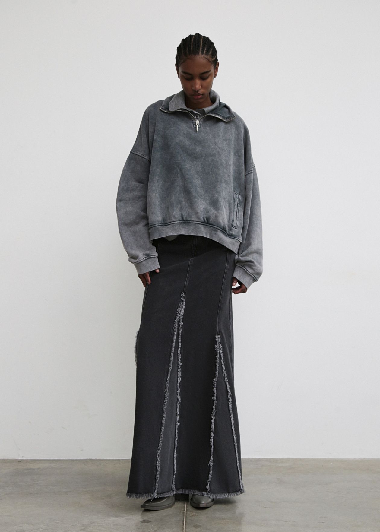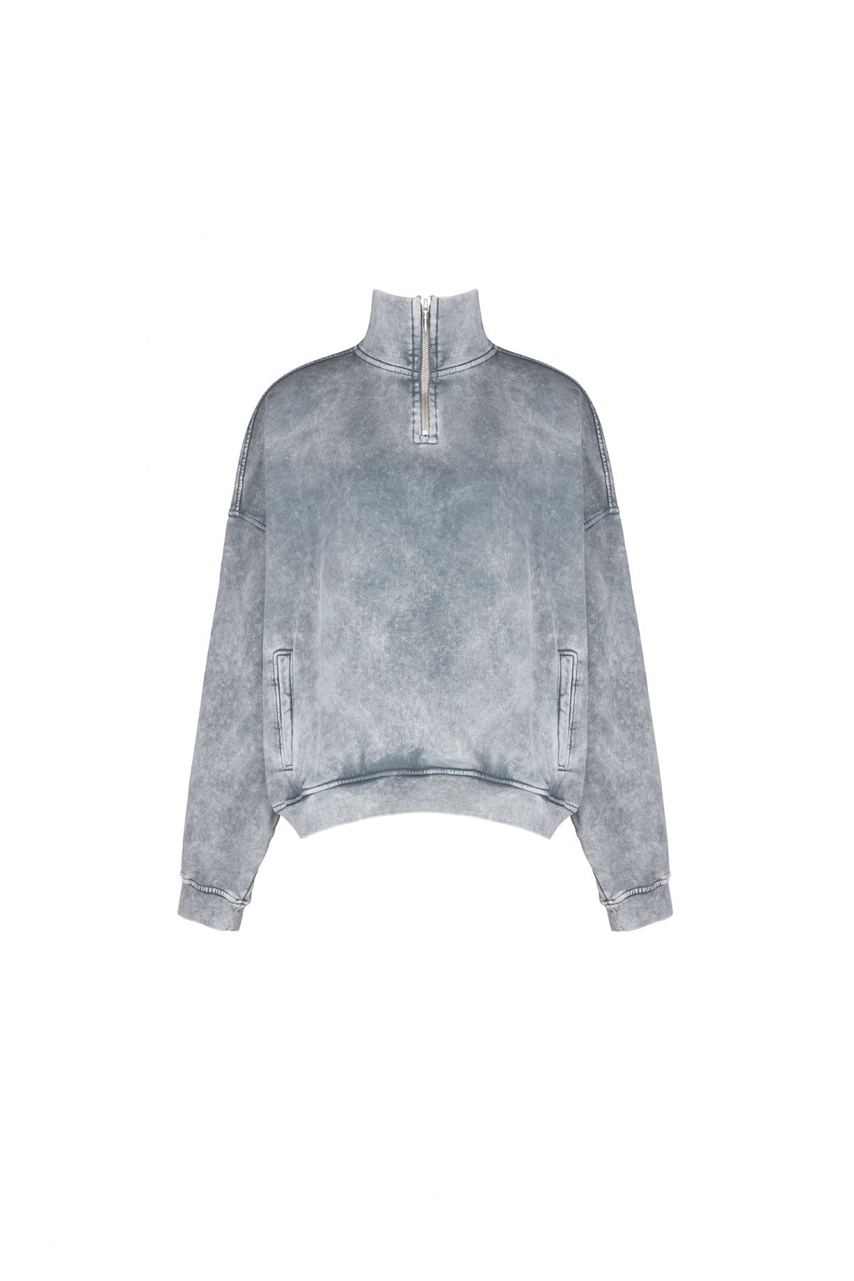 A voluminous anorak is made from knitted fabric with a grunge effect. It has rolled sleeves and a high zip collar with a "bullet" closure.Composition: 100% cotton