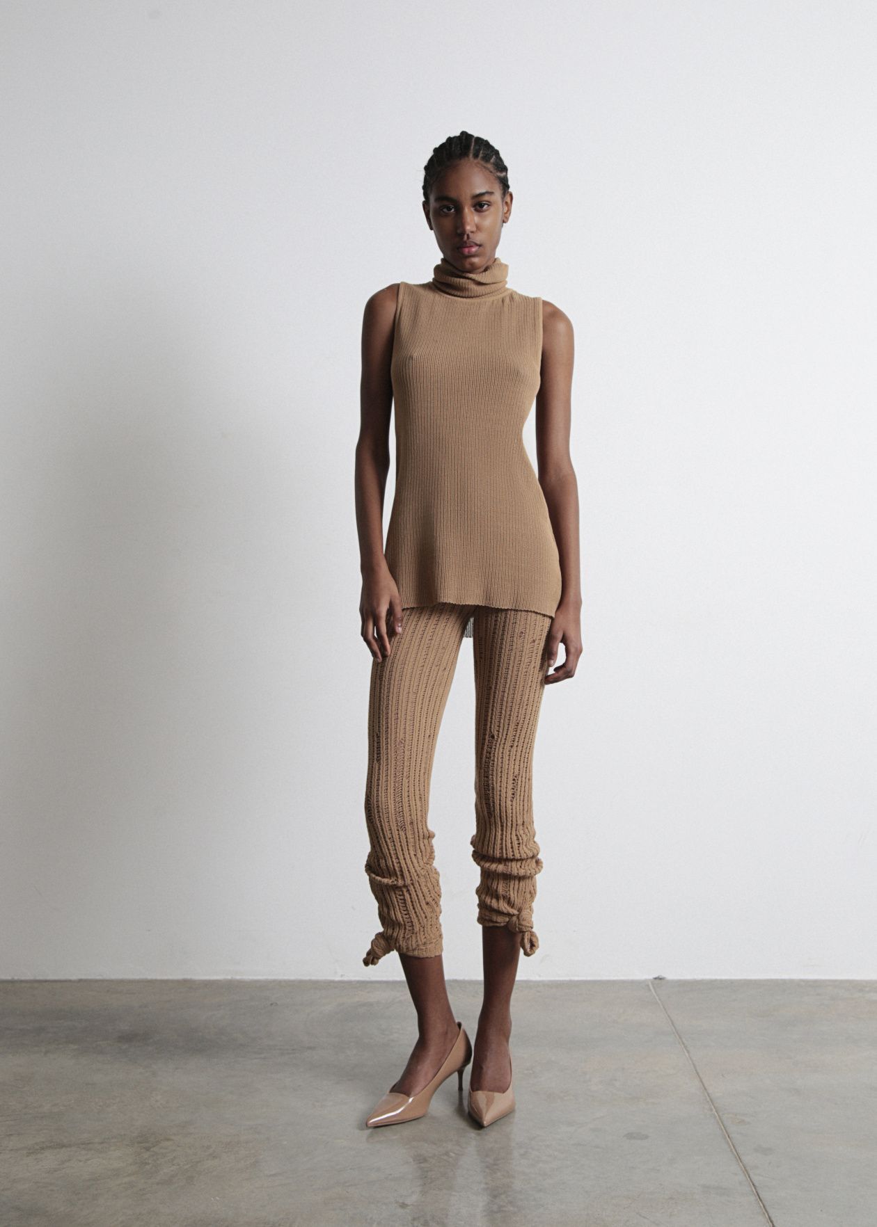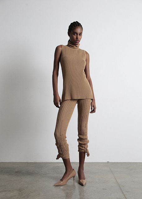 Trousers made from Italian knitwear with a unique texture, tailored to fit the figure and flare at the bottom, which emphasizes the silhouette and provides freedom of movement.Composition: 91% viscose, 9% elastane