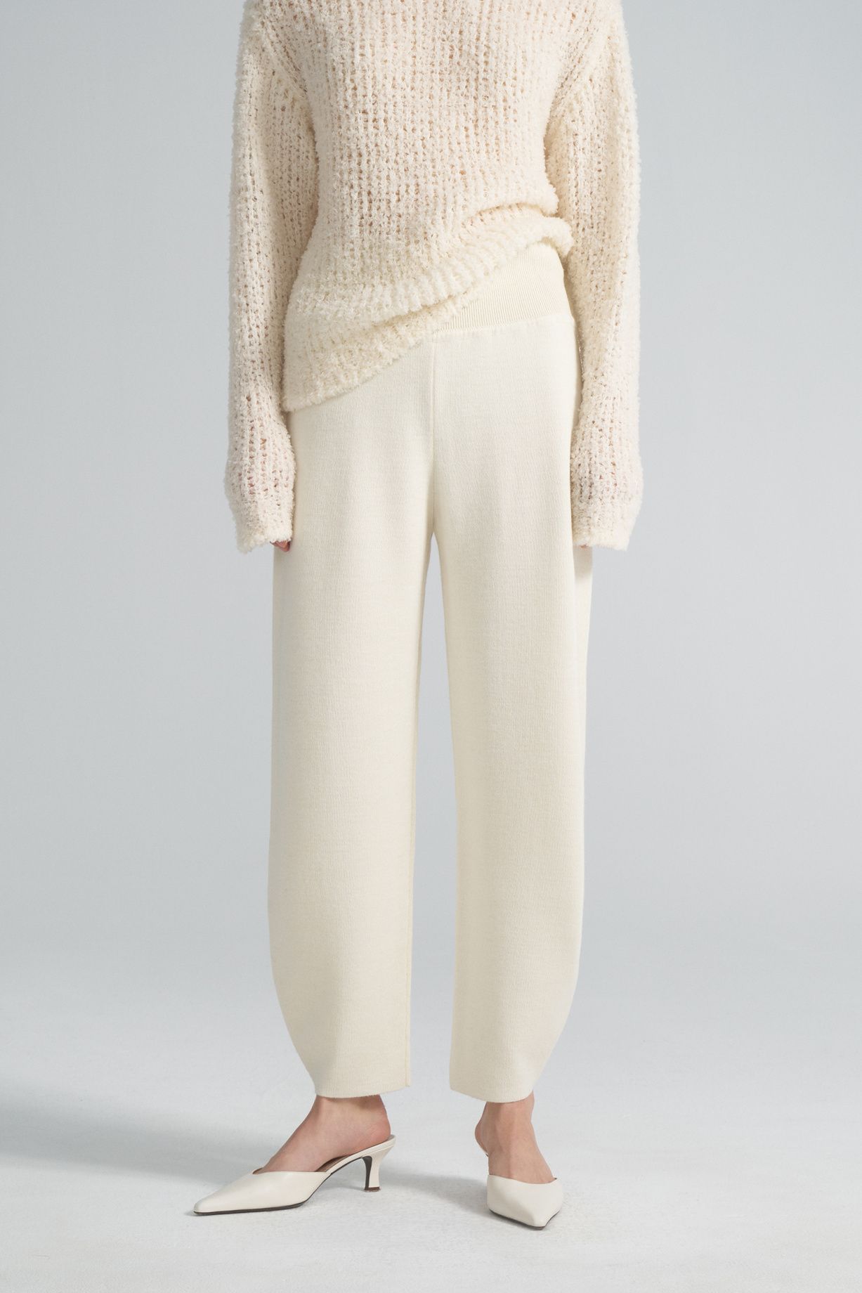 Knitted trousers made of Australian merino wool, loose and wide, tapering to the bottom with a comfortable knitted belt.Composition: 100% Australian Merino Wool