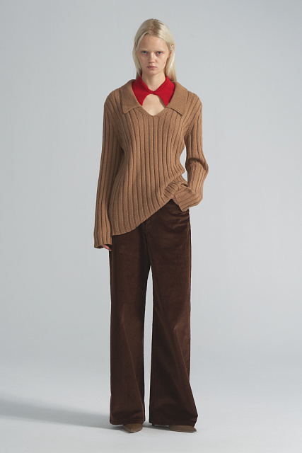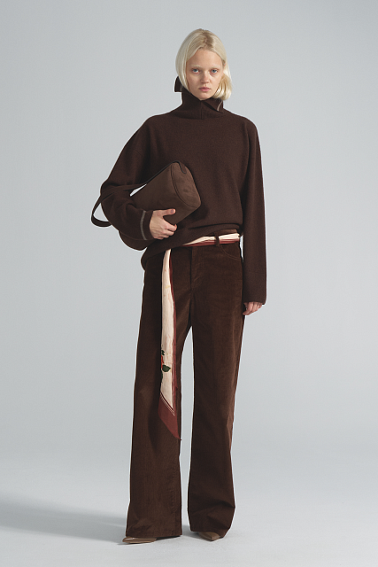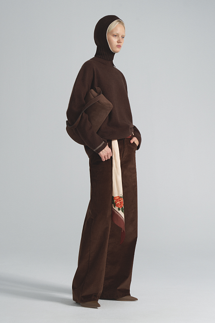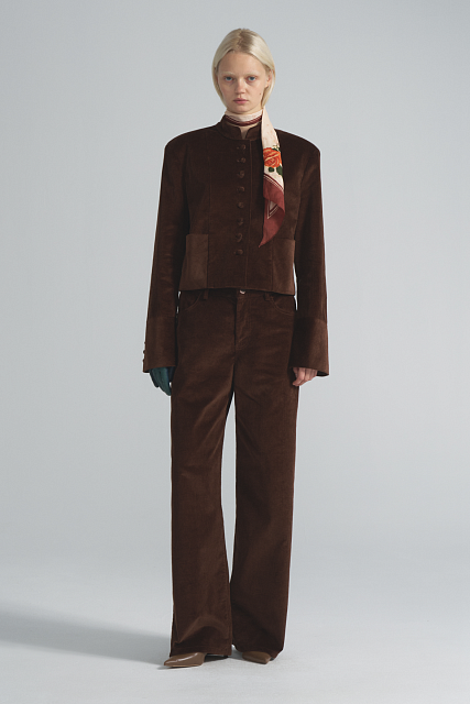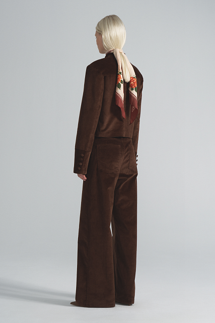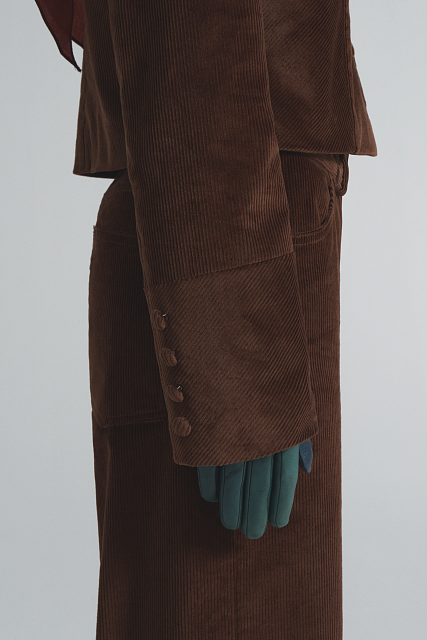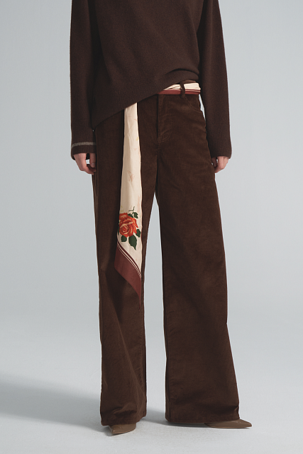 Trousers with a slightly lowered waistline and extended downwards. They are made of comfortable and lightweight breathable corduroy with fine ribbing.Composition: 97% cotton, 3% elastane