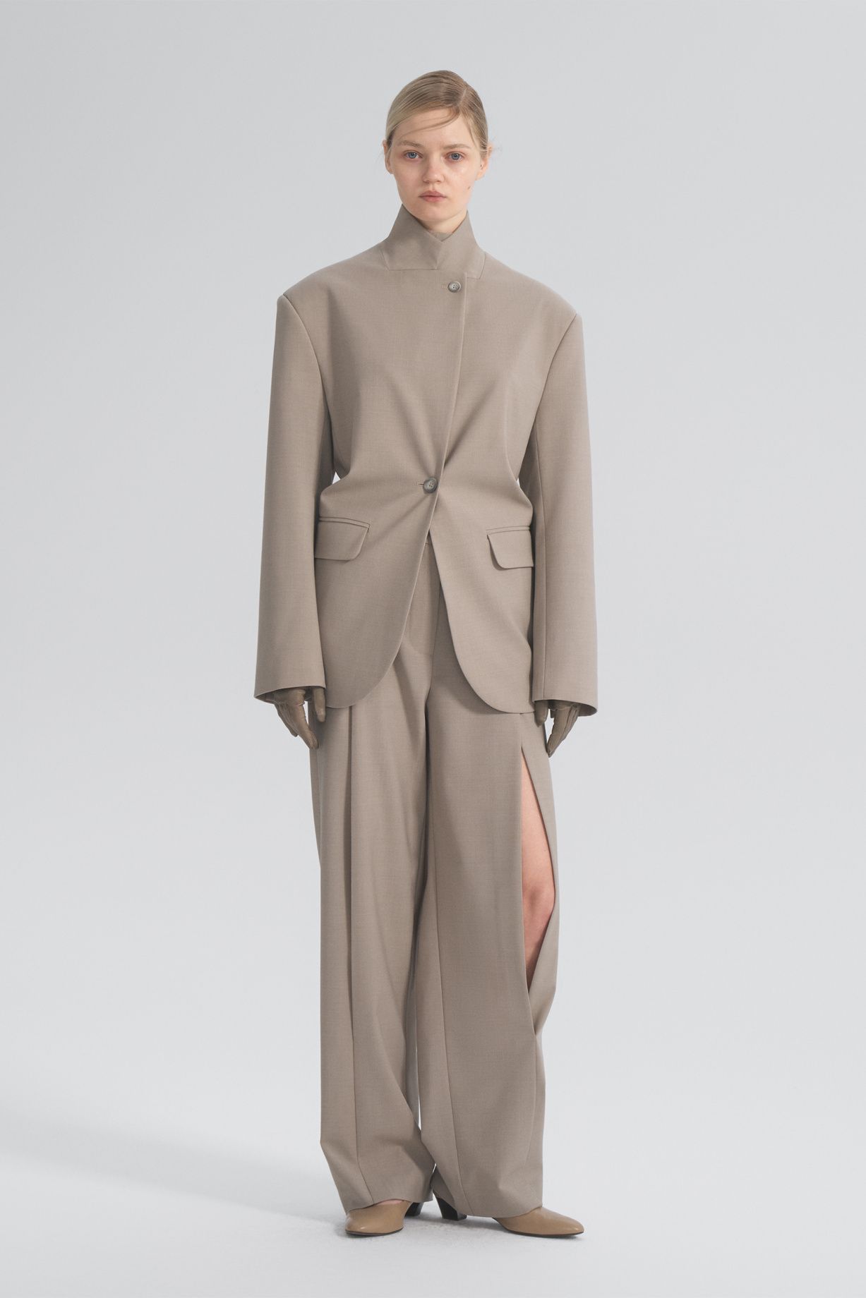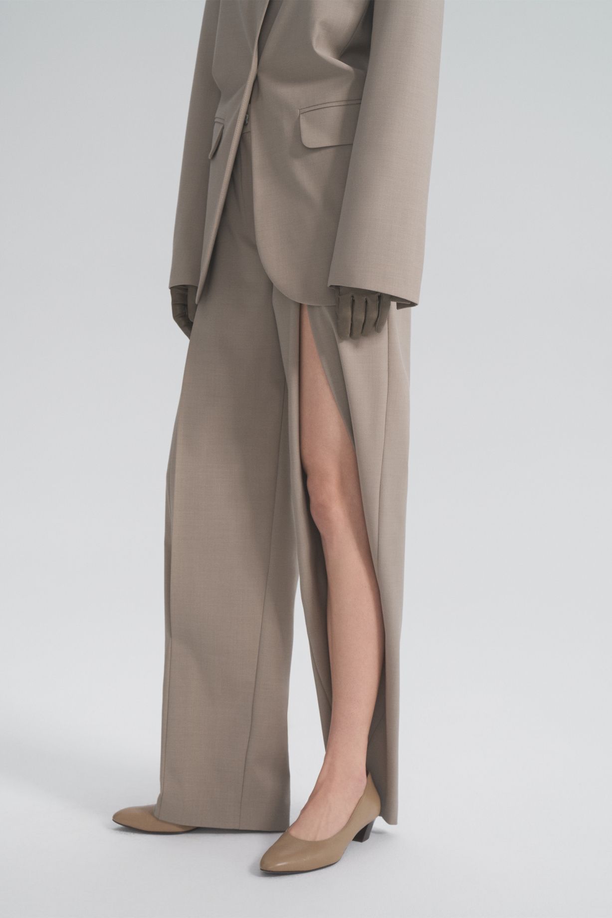 Classic cut trousers with a slit at the hip are a stylish accent that make them ideal for creating a unique look. The addition of Australian merino wool, pockets, and belt loops enhances their style.Composition: 55% wool, 45% viscose