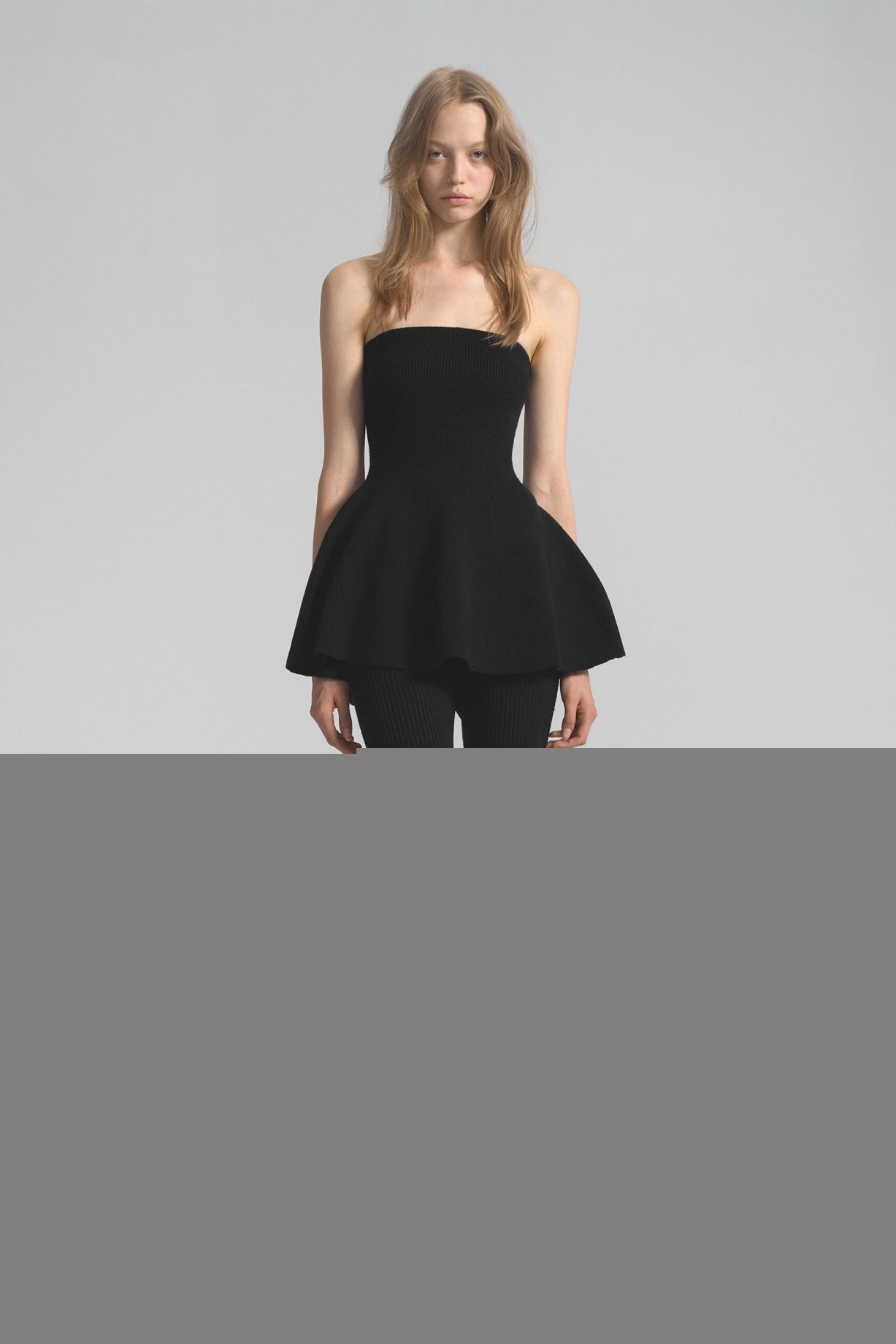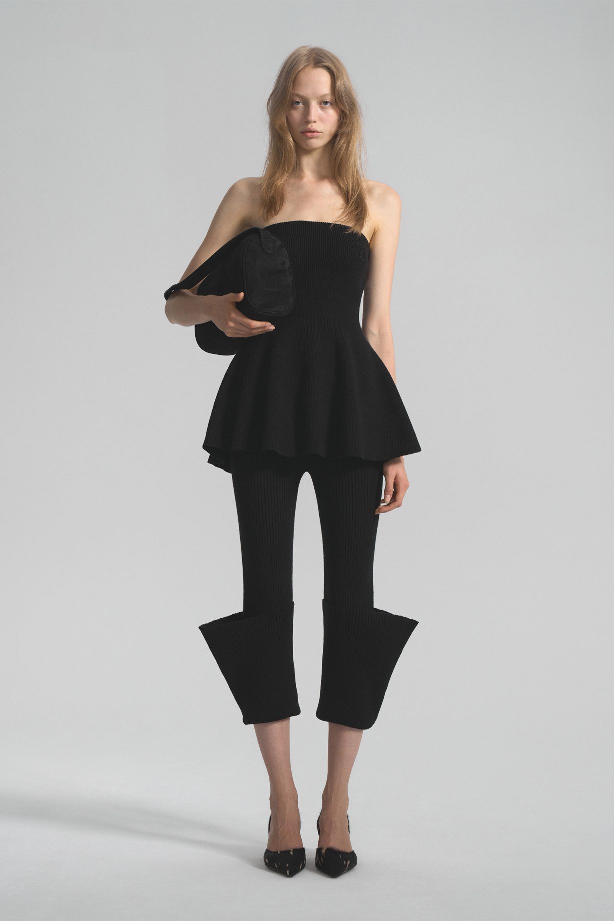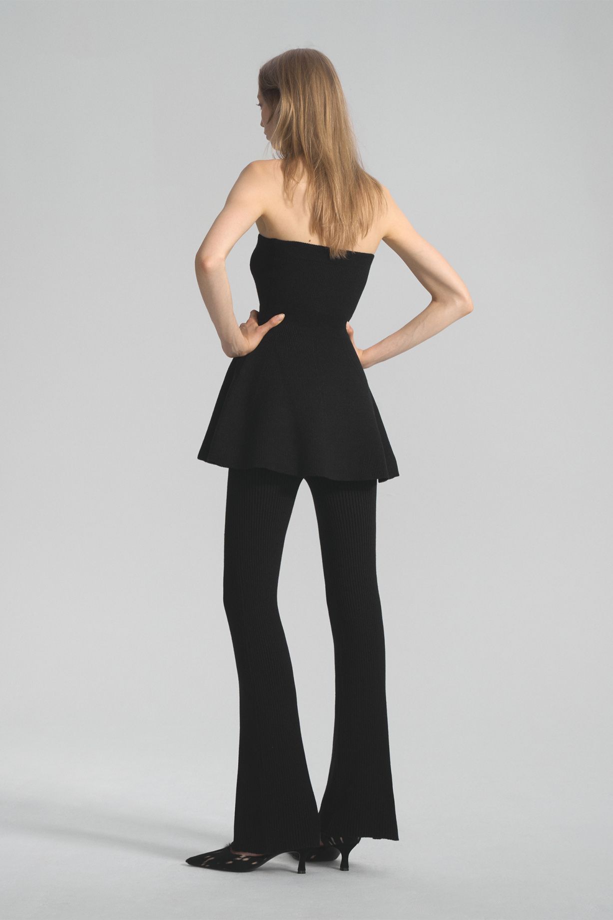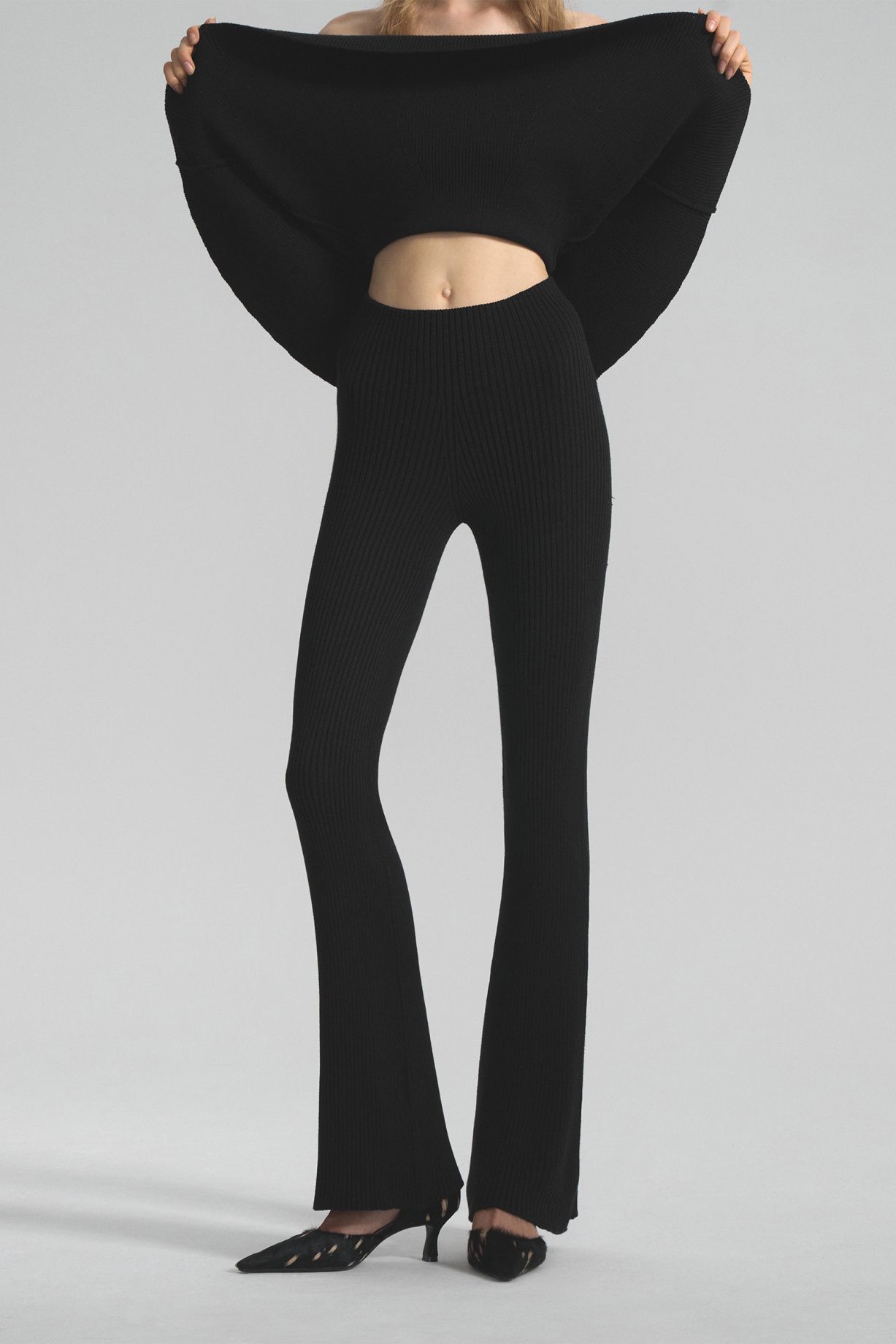 Knitted trousers with an addition of Australian merino wool in the composition. They have a high-rise, a wide belt, are tight-fitting, and flare at the bottom. They go well with dresses.Composition: 80% viscose, 20% wool