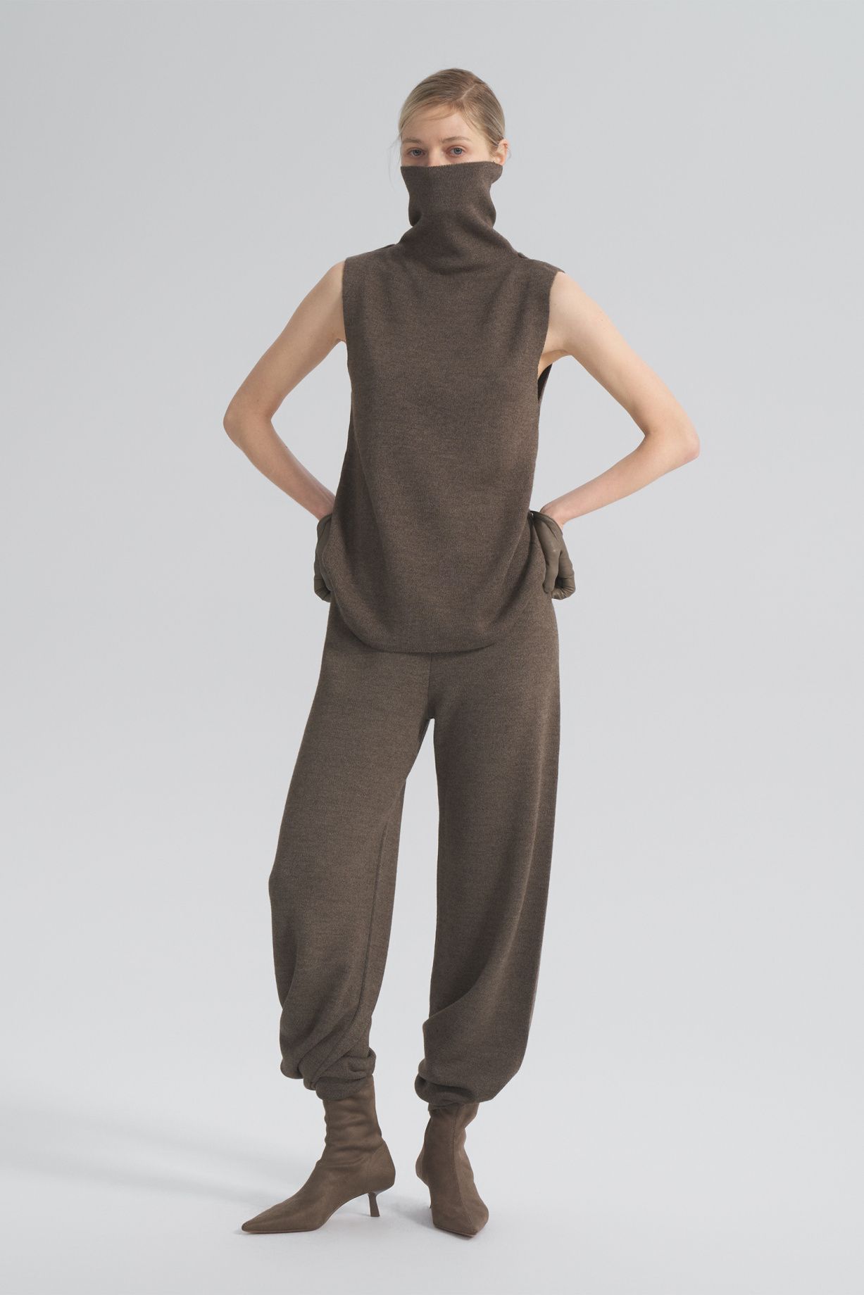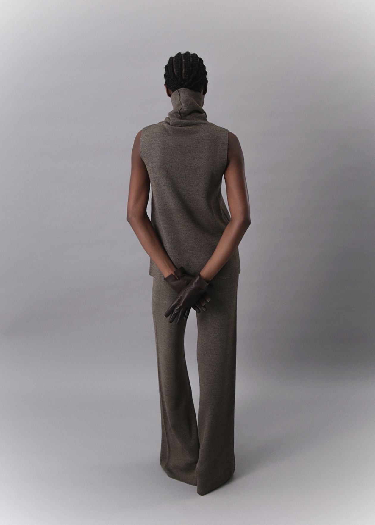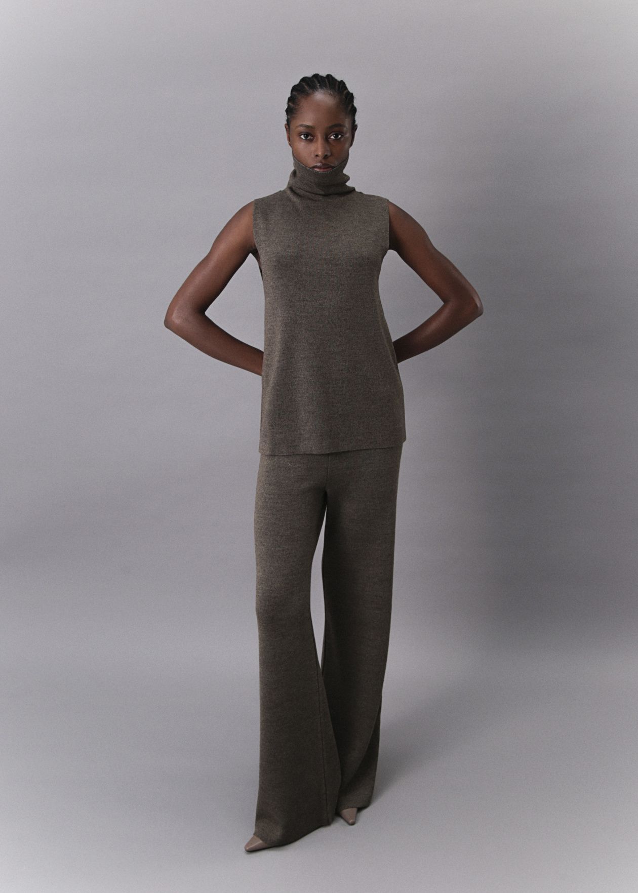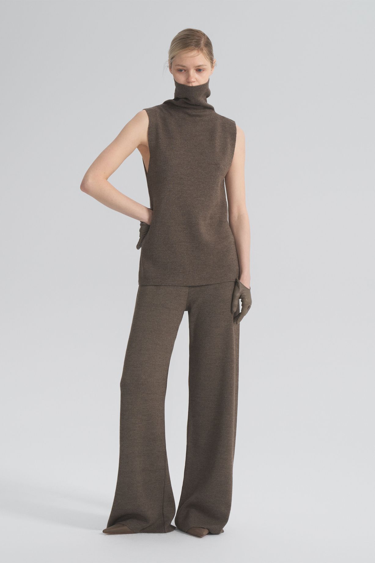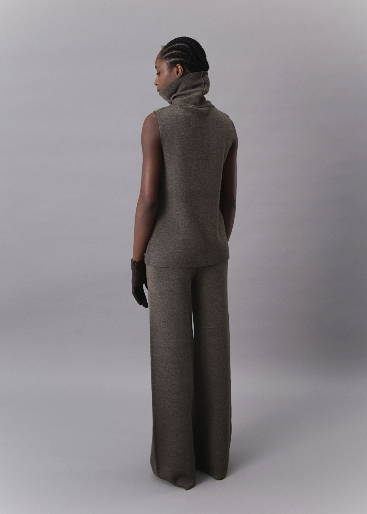 Seamless knitted trousers with a loose fit made of Australian merino wool with a wide comfortable belt.Composition: 60% Australian merino wool, 40% Viscose