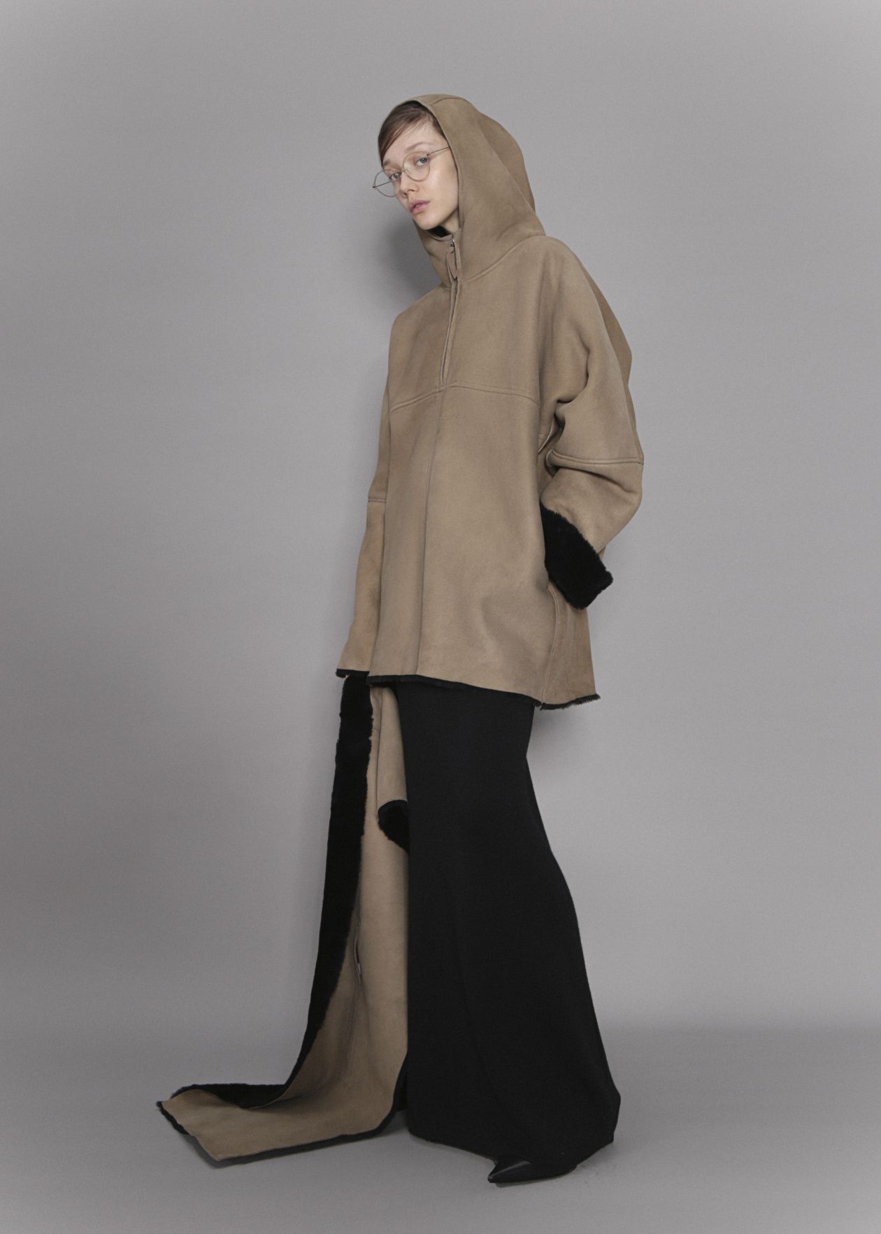 This voluminous sheepskin coat with a hood will become a stylish and warm addition to your wardrobe. Made of genuine suede and insulated with soft sheepskin, which provides comfort and warmth in the cold season. The straight cut model with a hood and wide sleeves is suitable for creating comfortable and fashionable looks. Unisex design makes it universal and suitable for everyone.Composition: 100% Lambskin