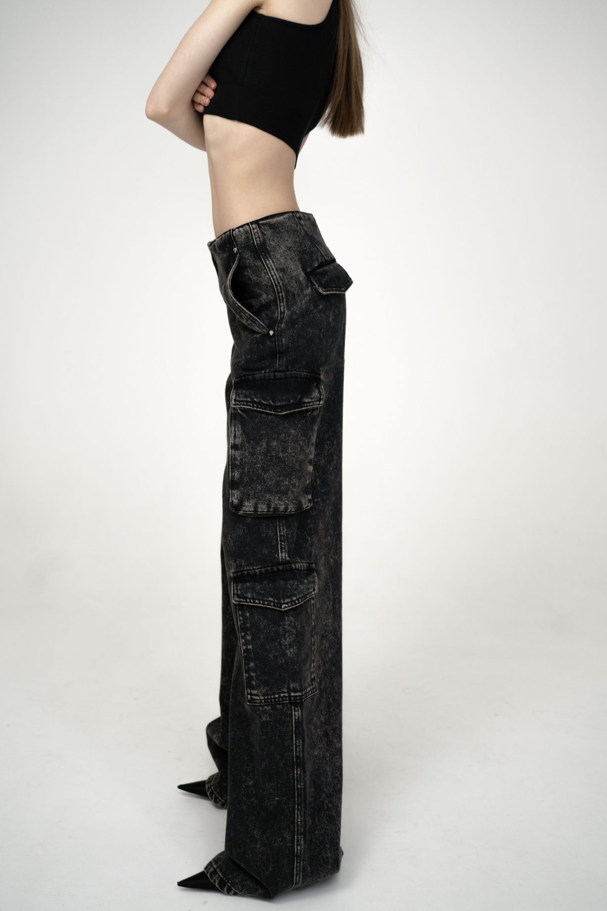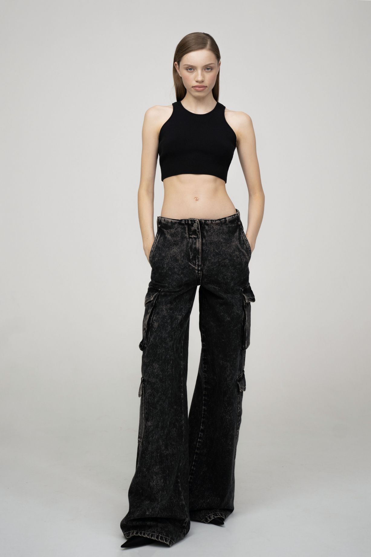 The voluminous "oversized" model is a loose fit, made of 100% cotton. Straight, plain trousers with large pockets and adjustable drawstring. Suitable for tall stature.Composition: 100% Cotton