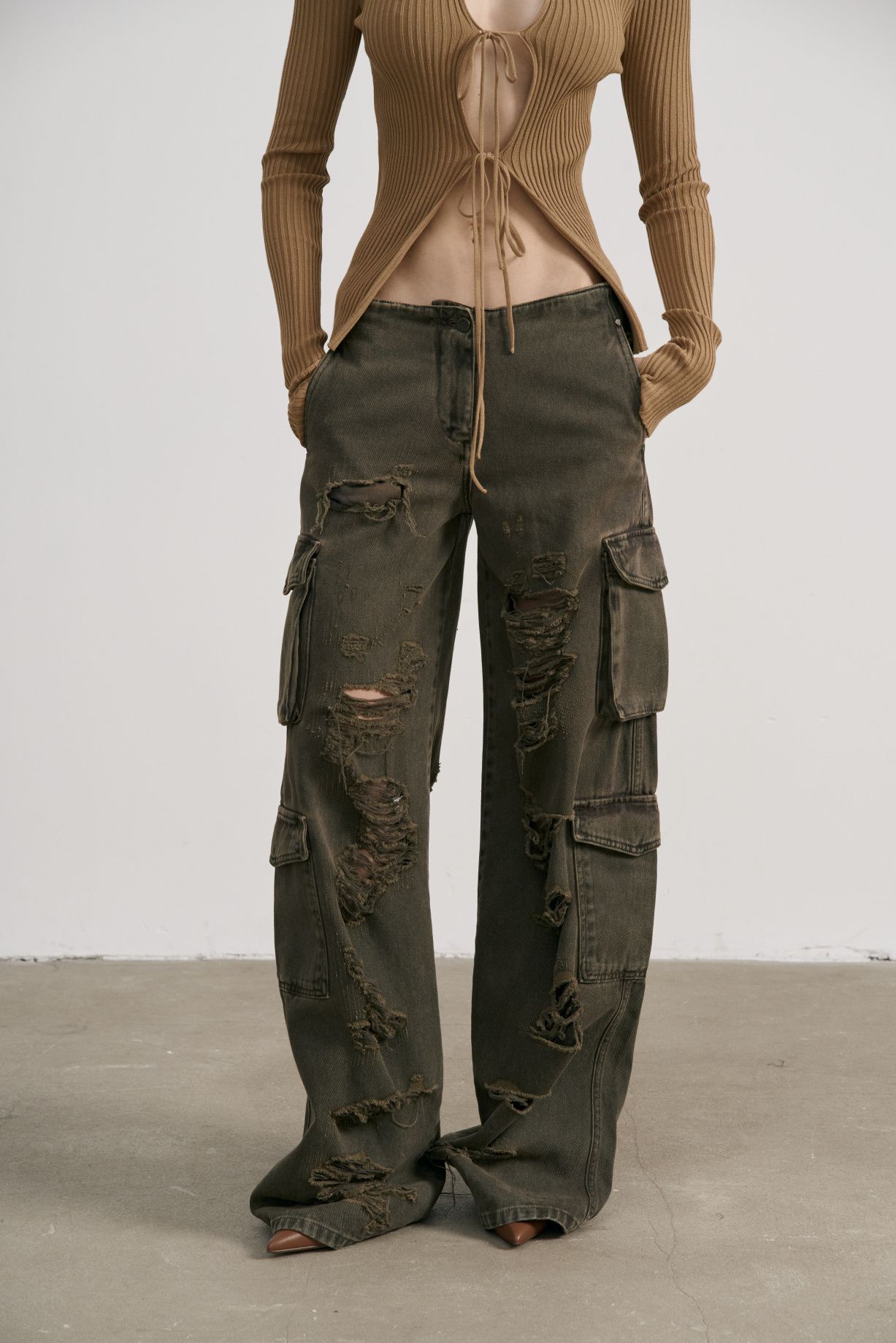 Jeans with patch pockets and slits are perfect for creating a grunge style. They are made of durable denim, which ensures durability and comfort. The patch pockets add functionality, while the slits give the jeans a unique look.Composition: 100% Cotton