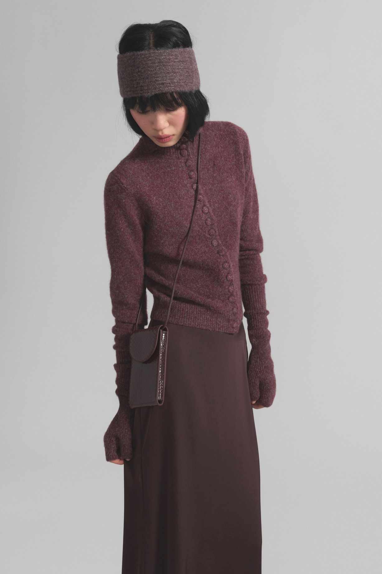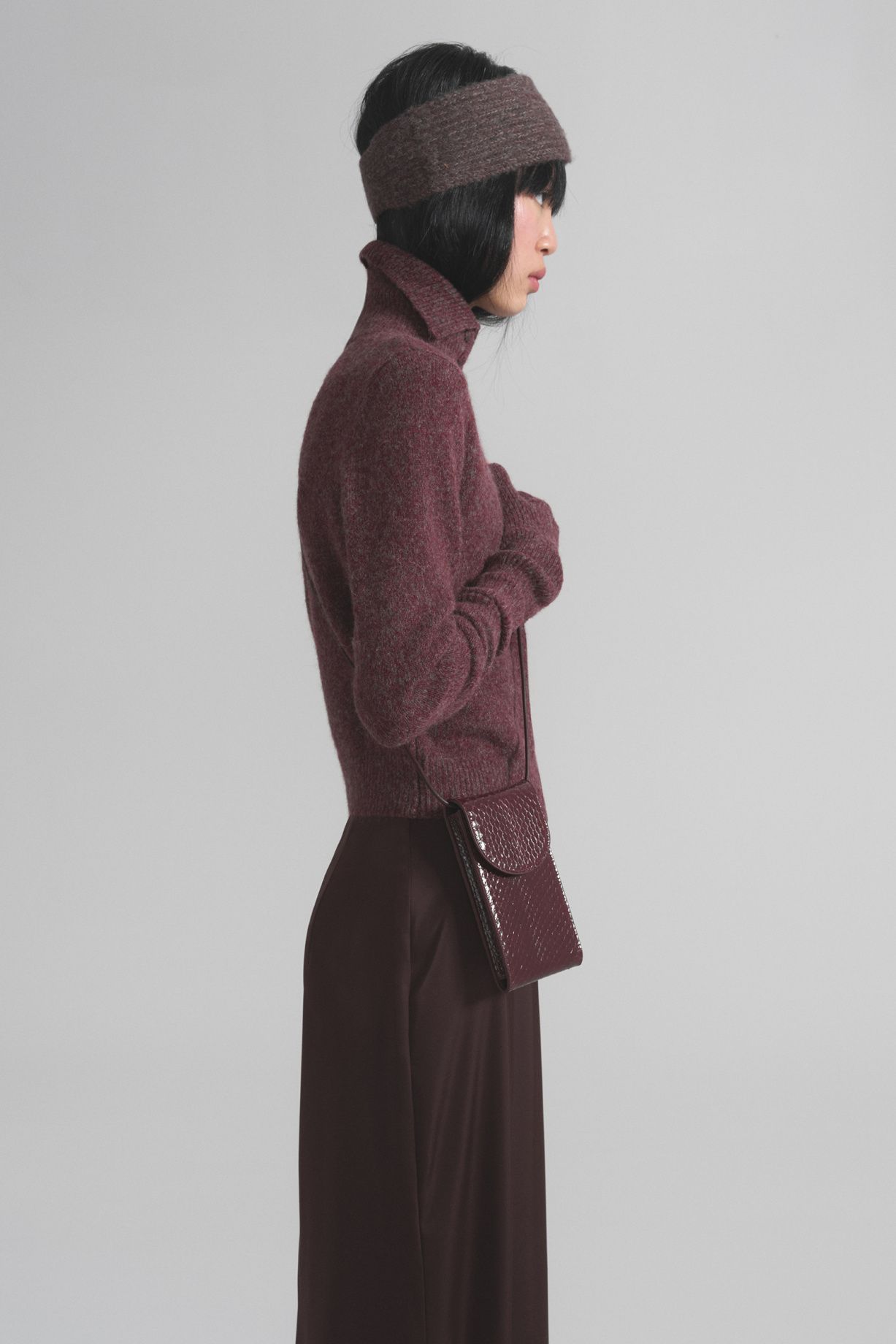 A warm headband made of soft alpaca wool with a pleasant texture. The dense knit provides comfort and protection from the cold, and the melange color pairs easily with outerwear and knitwear, creating a cohesive and sophisticated look. The elastic and soft fabric stretches and adapts to the shape of the wearer's head.