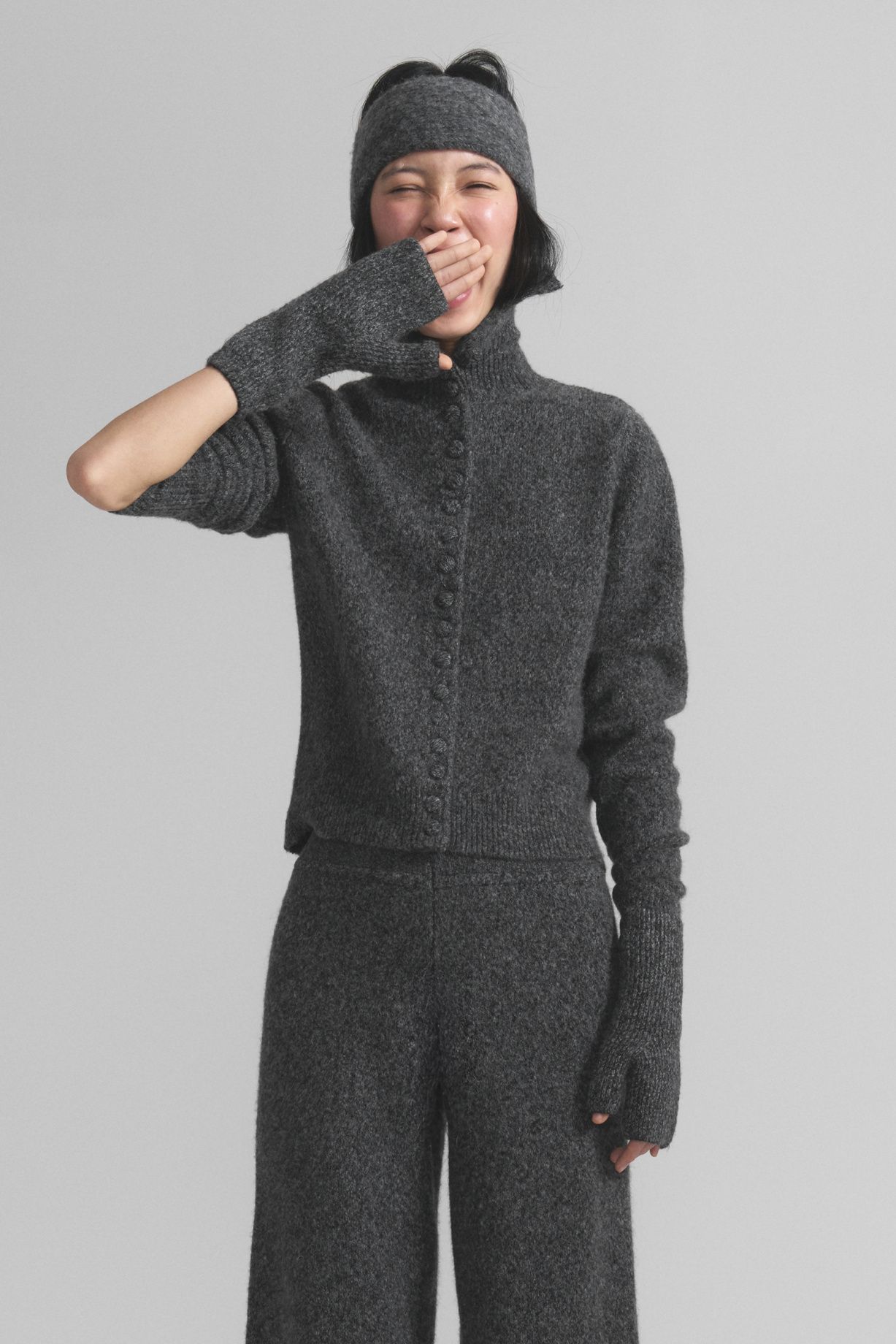 A warm headband made of soft alpaca wool with a pleasant texture. The dense knit provides comfort and protection from the cold, and the melange color pairs easily with outerwear and knitwear, creating a cohesive and sophisticated look. The elastic and soft fabric stretches and adapts to the shape of the wearer's head.