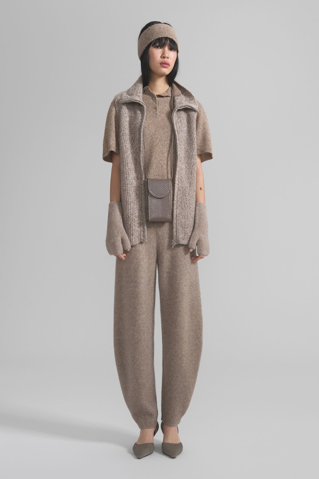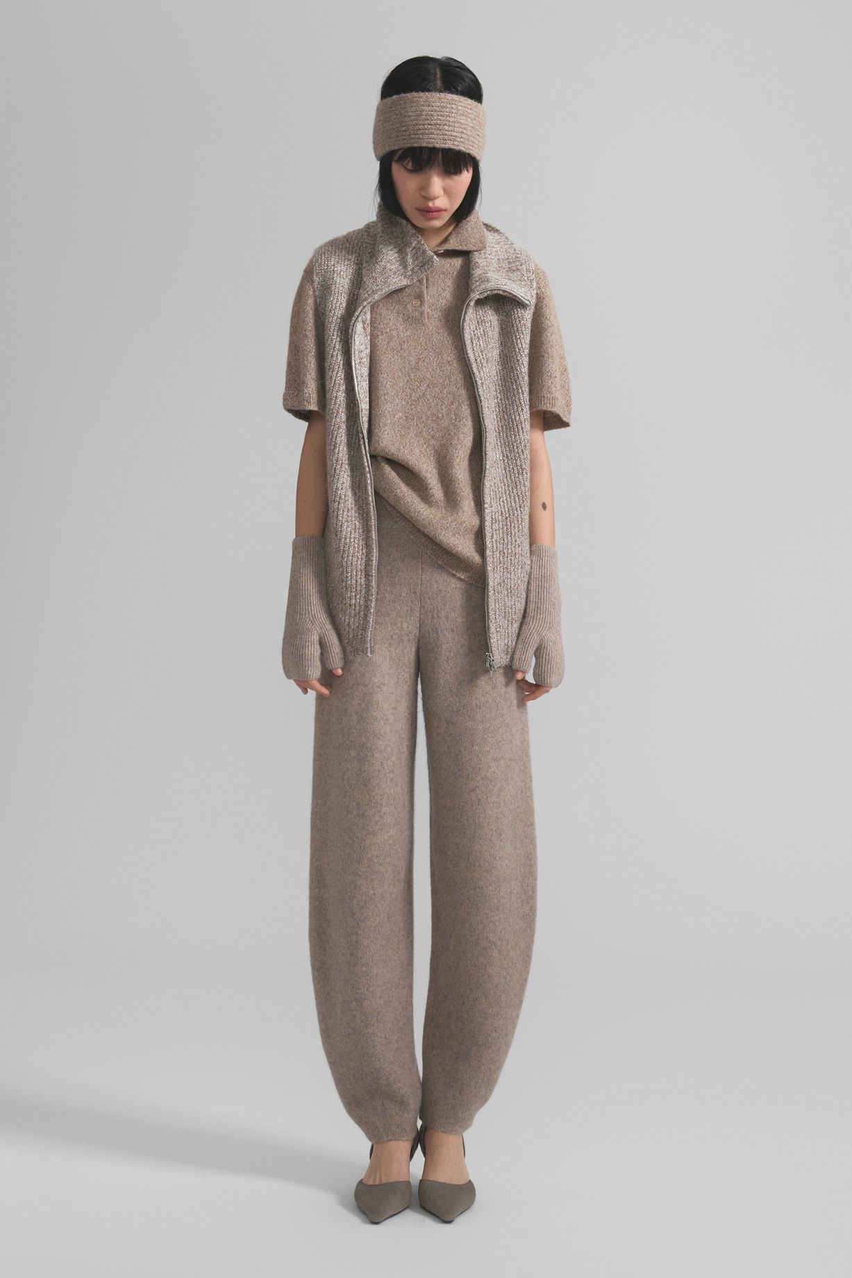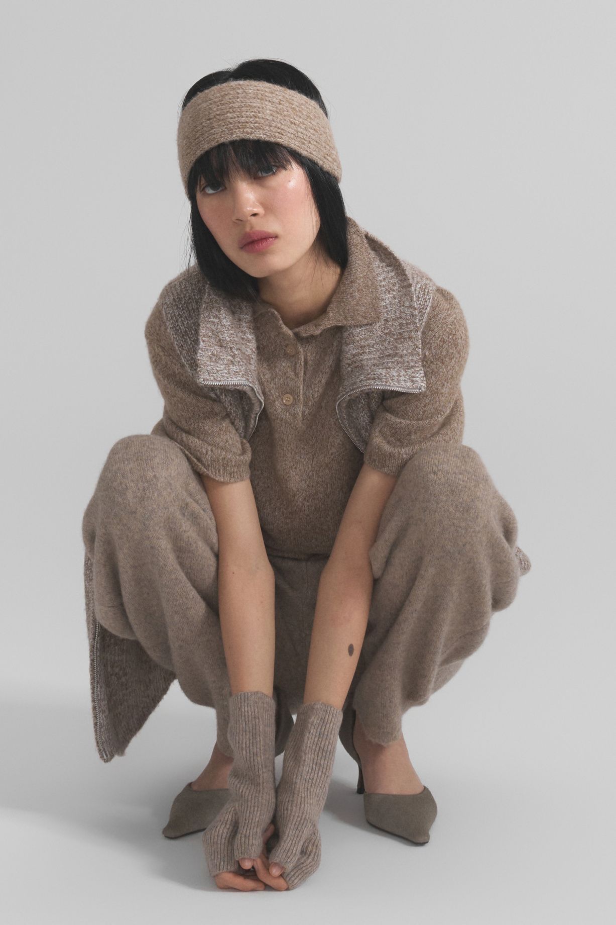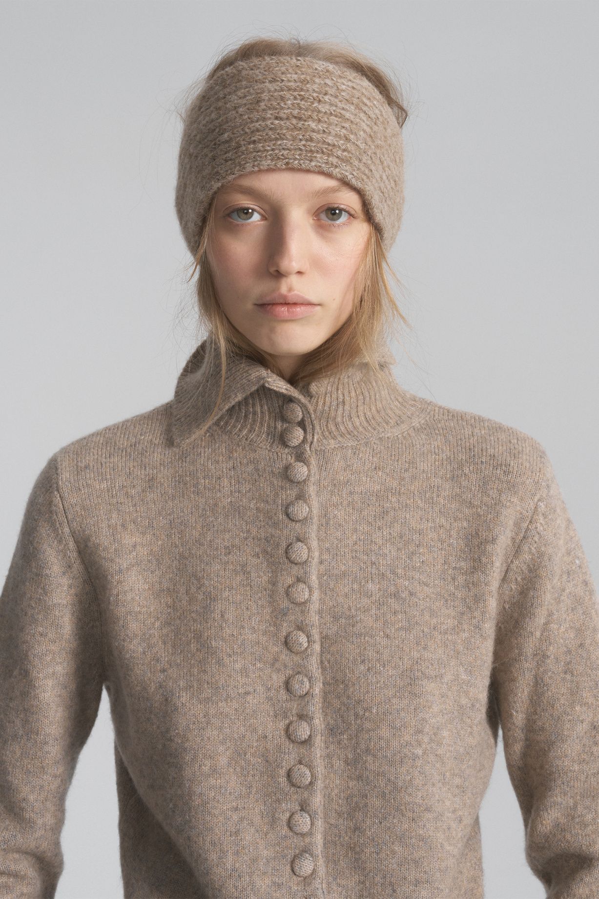 A warm headband made of soft alpaca wool with a pleasant texture. The dense knit provides comfort and protection from the cold, and the melange color pairs easily with outerwear and knitwear, creating a cohesive and sophisticated look. The elastic and soft fabric stretches and adapts to the shape of the wearer's head.Composition: 30% alpaca, 60% wool, 10% nylon
