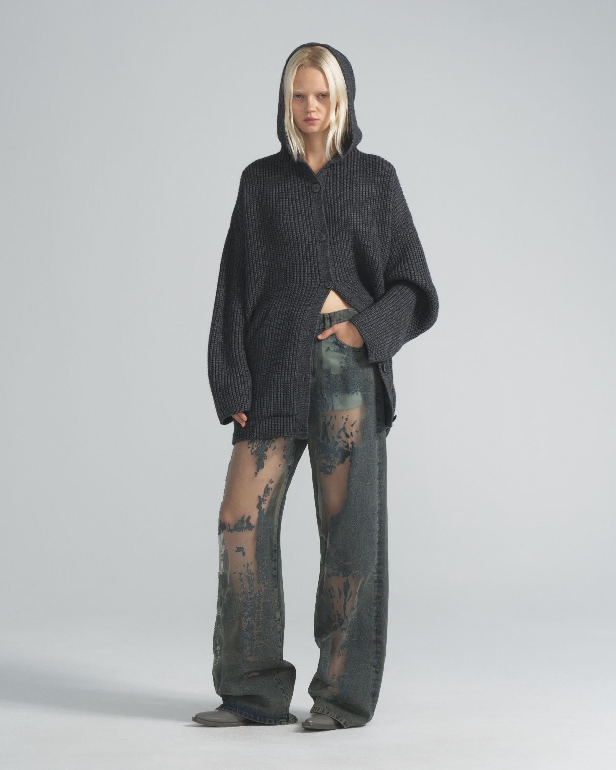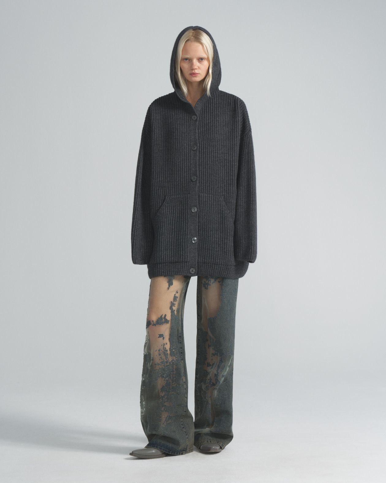 Loose cardigan made of thick yarn. The product is made of 100% merino wool, soft and pleasant to the skin. The versatile model is complemented by a voluminous hood and large pockets, it will perfectly complement the basic wardrobe.Composition: 100% merino wool