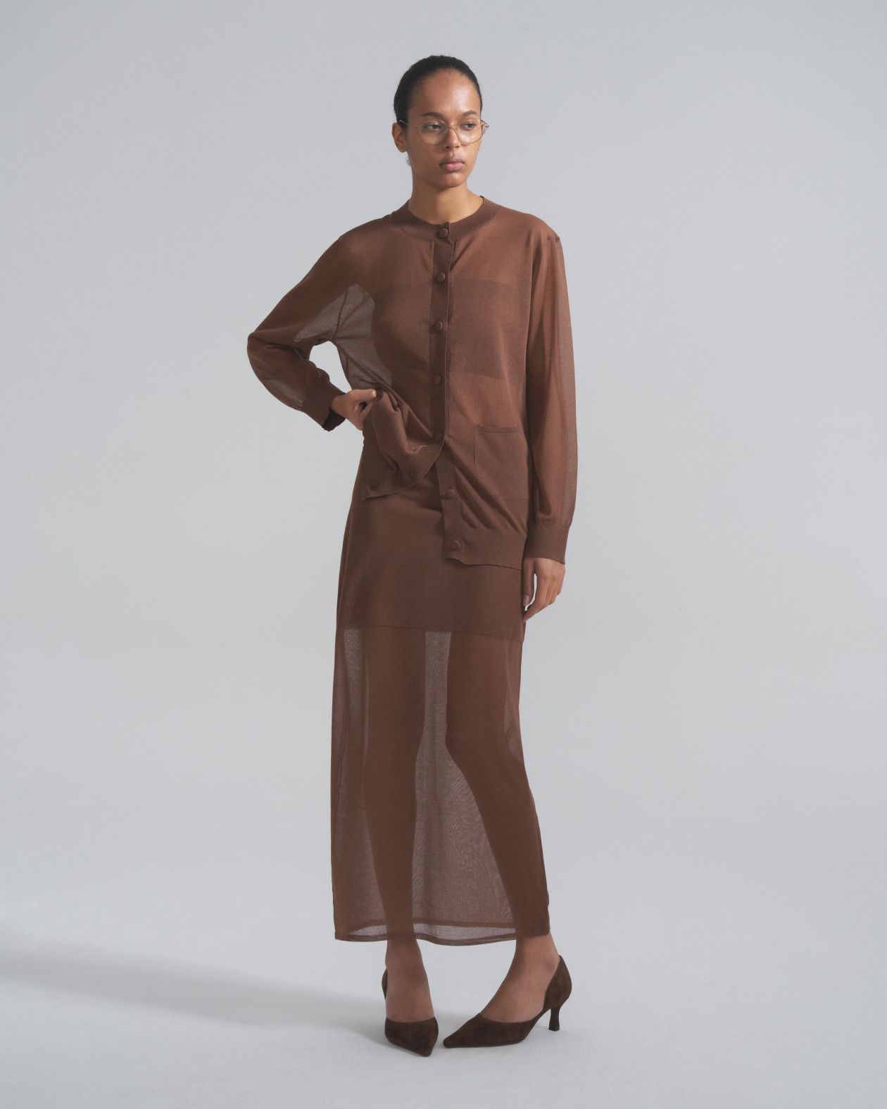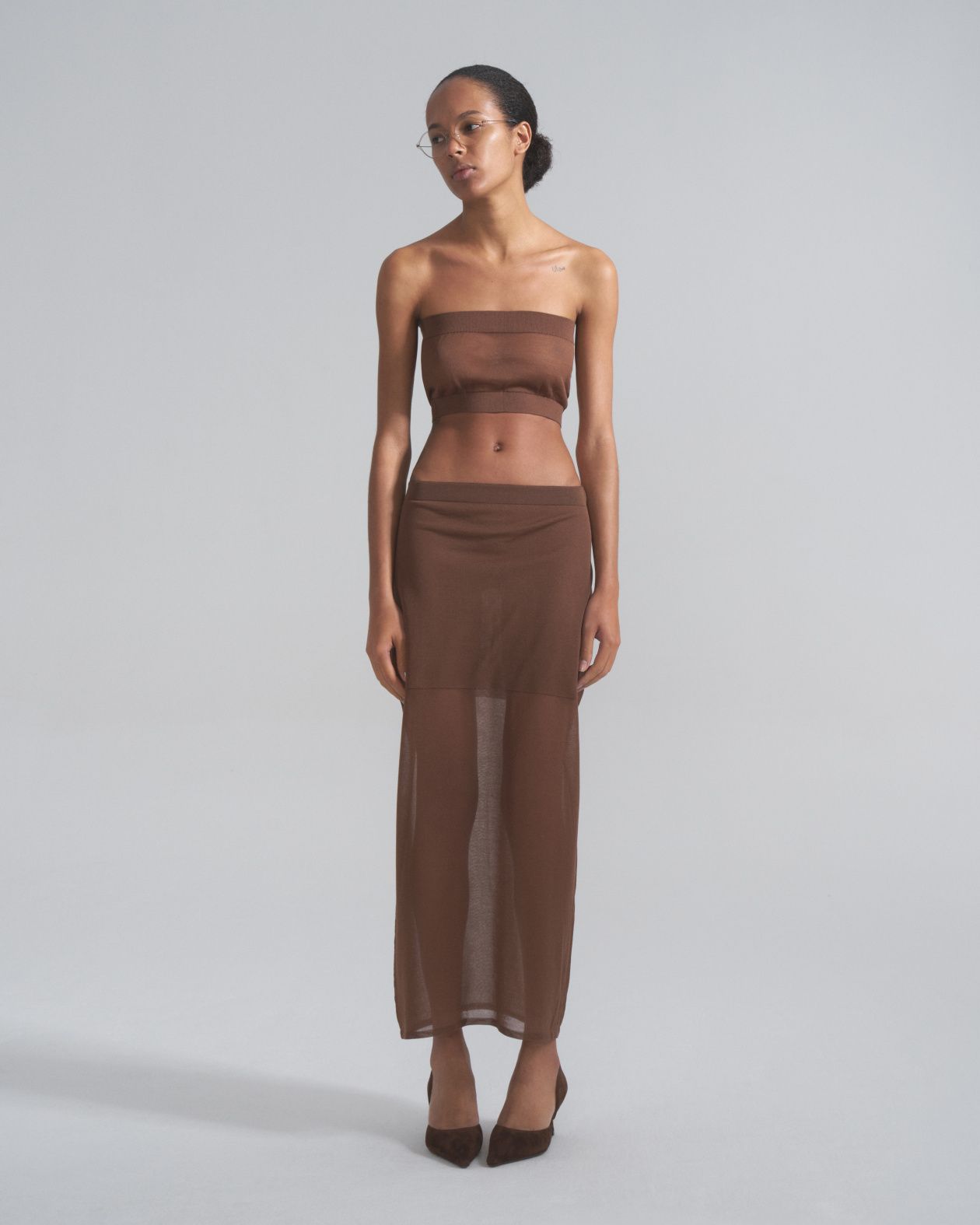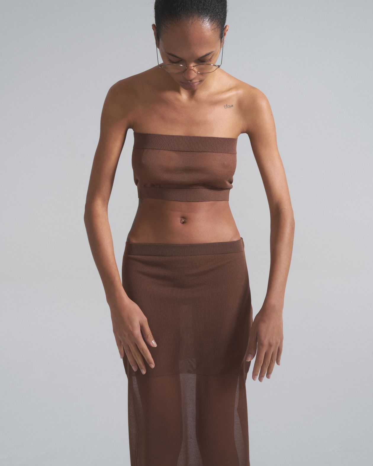 Semi-transparent striped top, upper and lower edges with elastic band.Composition: 20% silk, 60% viscose, 20% nylon