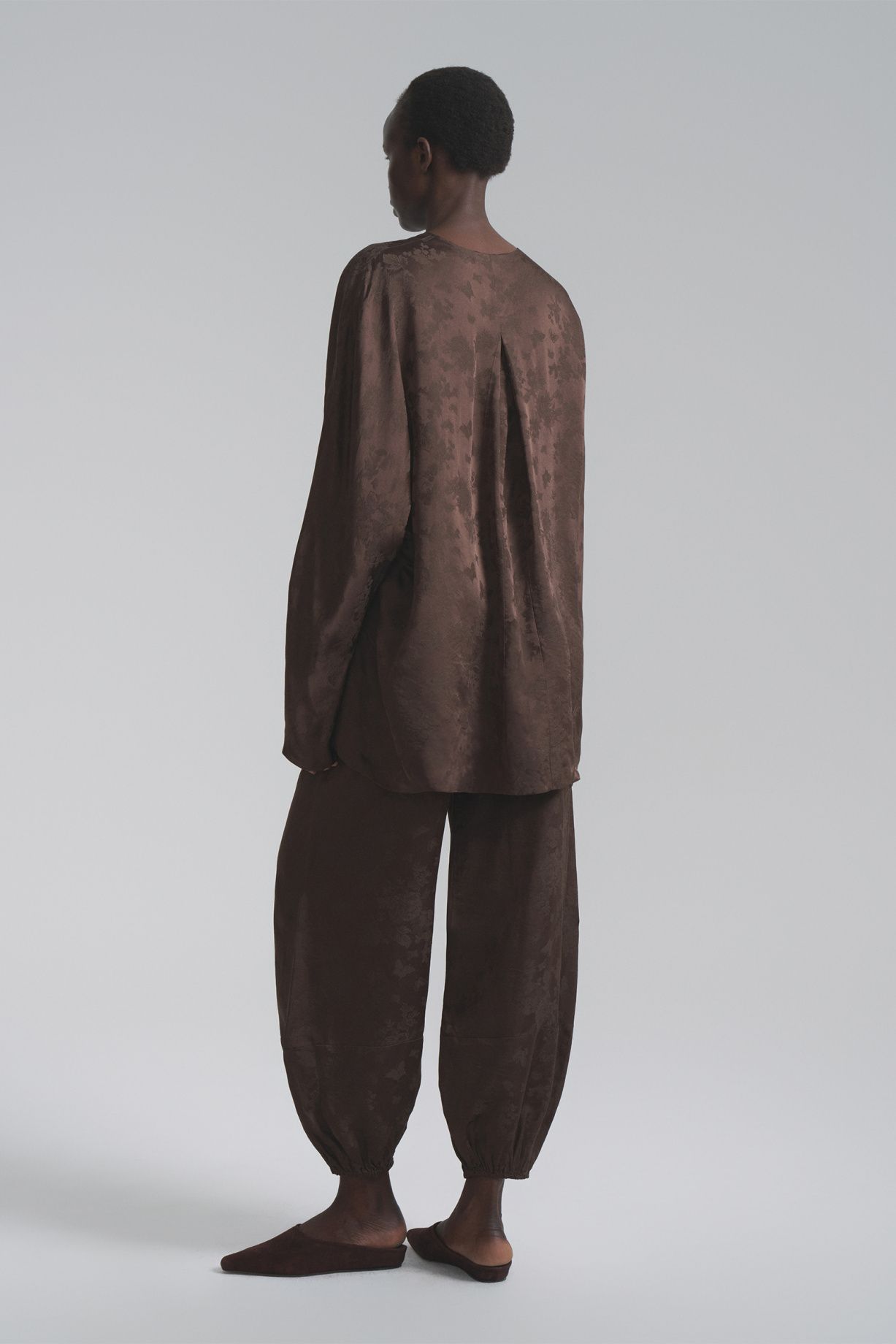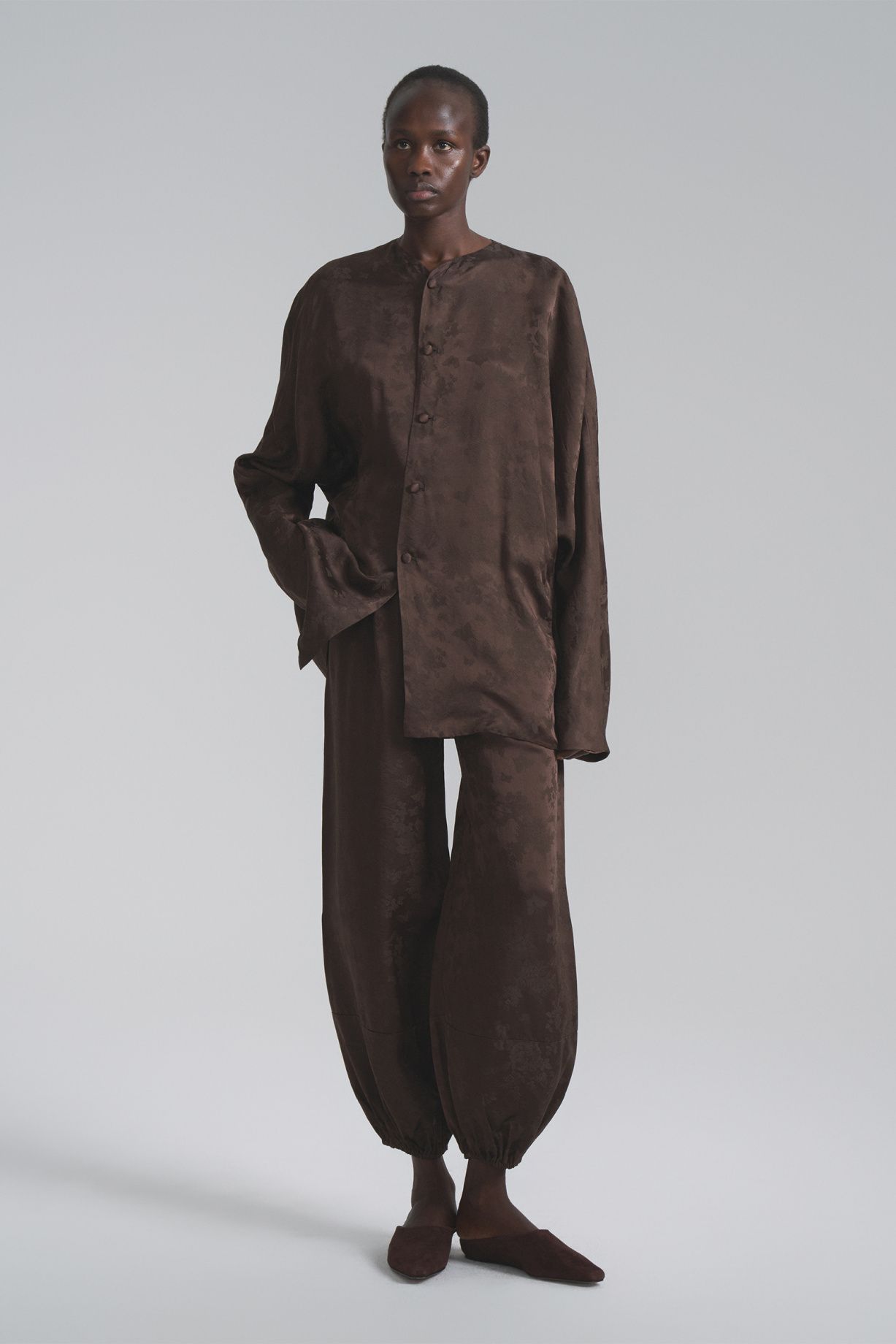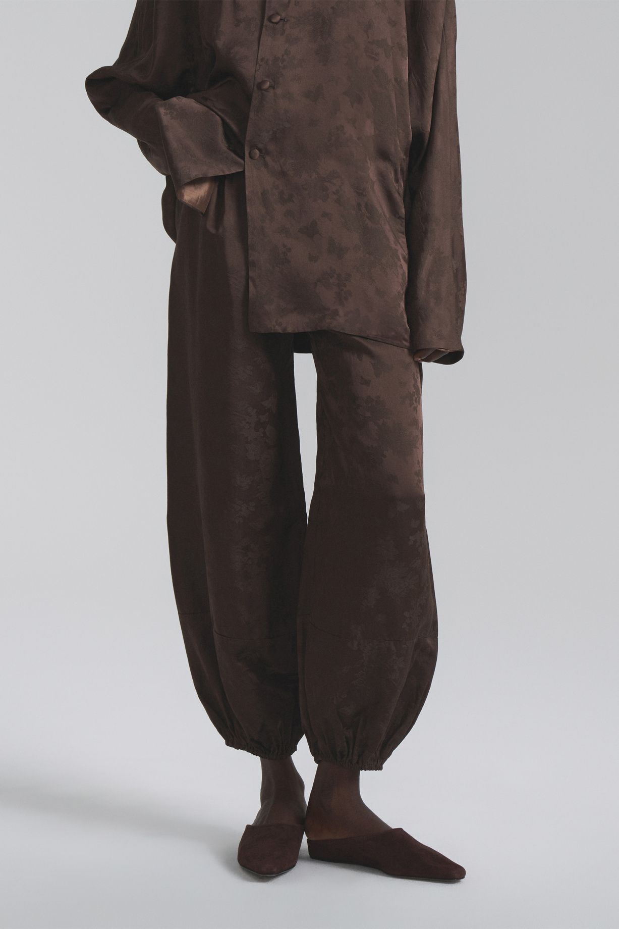 Jacquard silk pajama suit with trousers, buttons covered with silk, author's butterfly print, made using special technologyComposition: 70% silk, 30% viscose