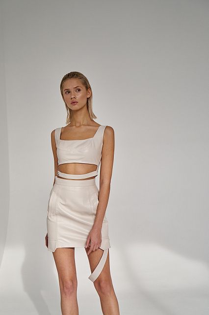 Premium leather crop top with double belt. Snapped on the back.Composition: 100% Leather
