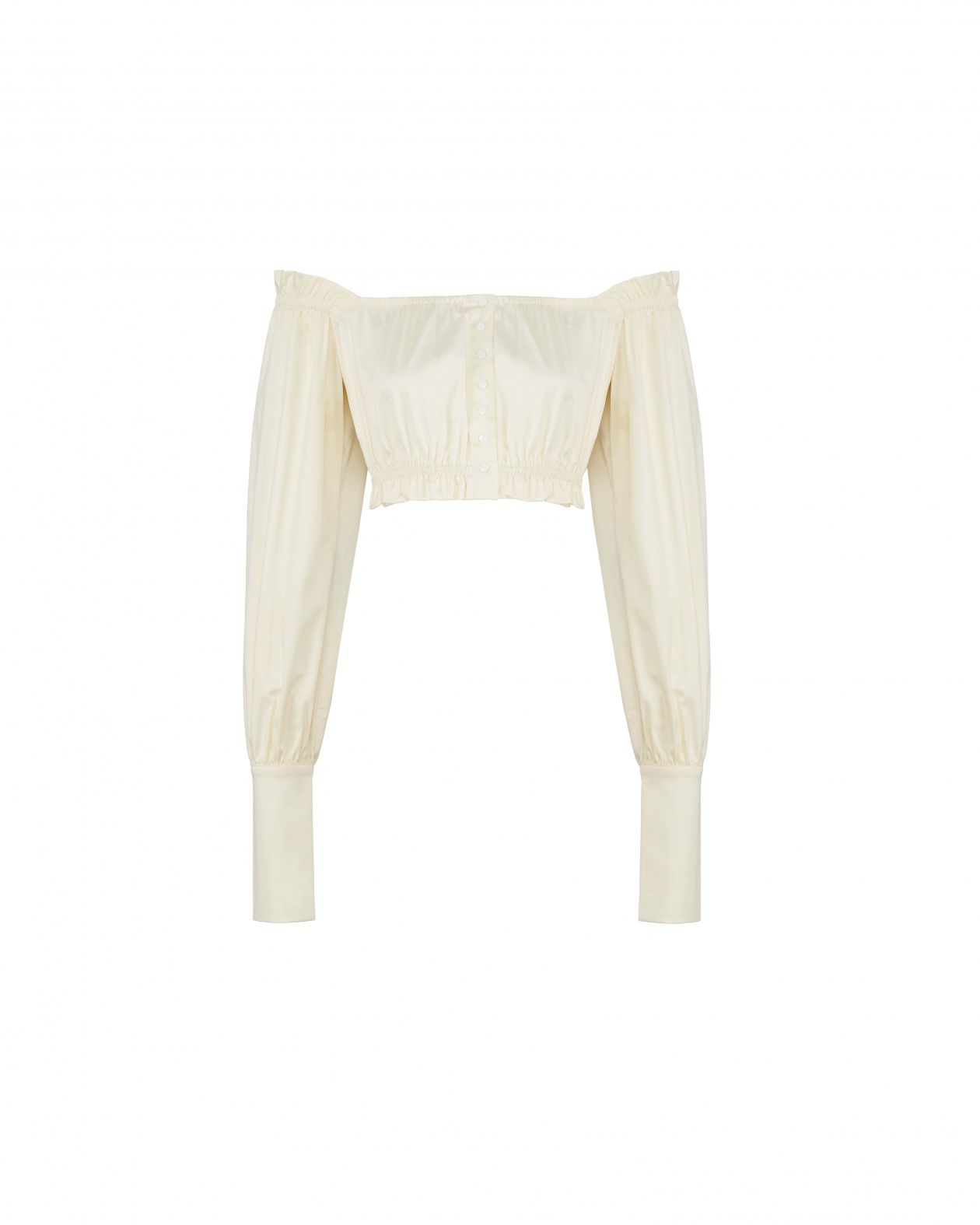 Cropped top with sleeves and elongated cuffs.Composition: 91% viscose, 9% elastane