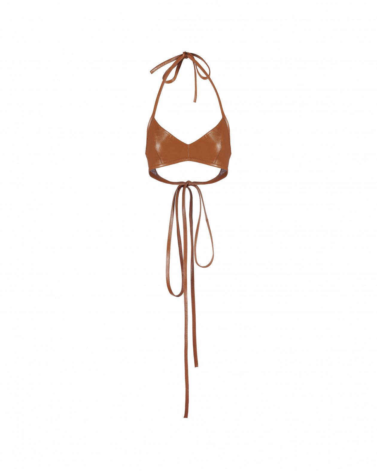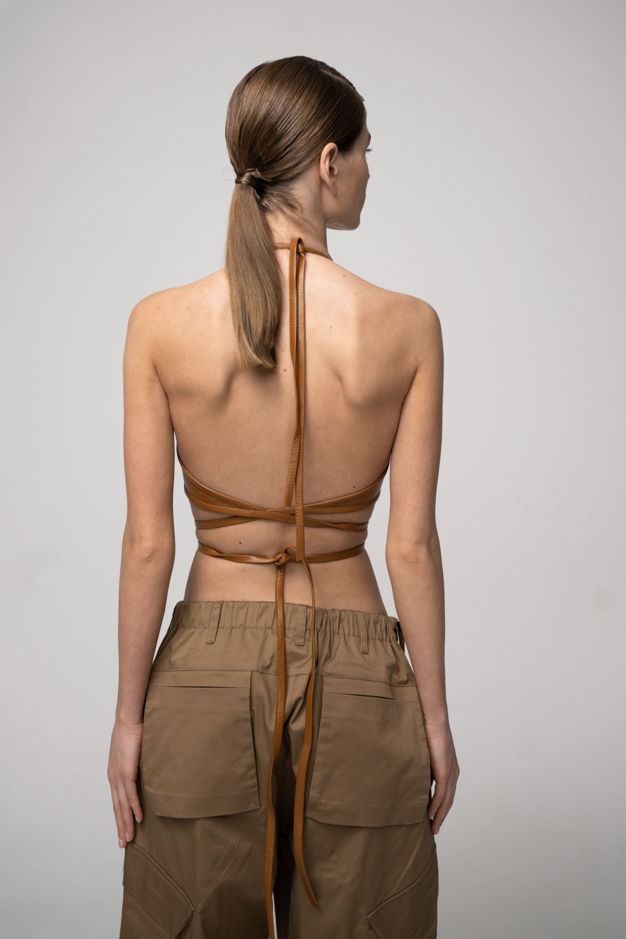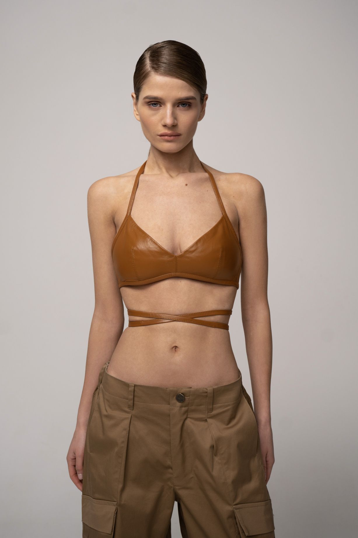 Genuine leather bodice with an elegant neckline and straps with ties. The seams provide a tight fit, creating a feminine silhouette. Cups without padding. We chose genuine flexible leather for this model.Composition: 100% natural leather