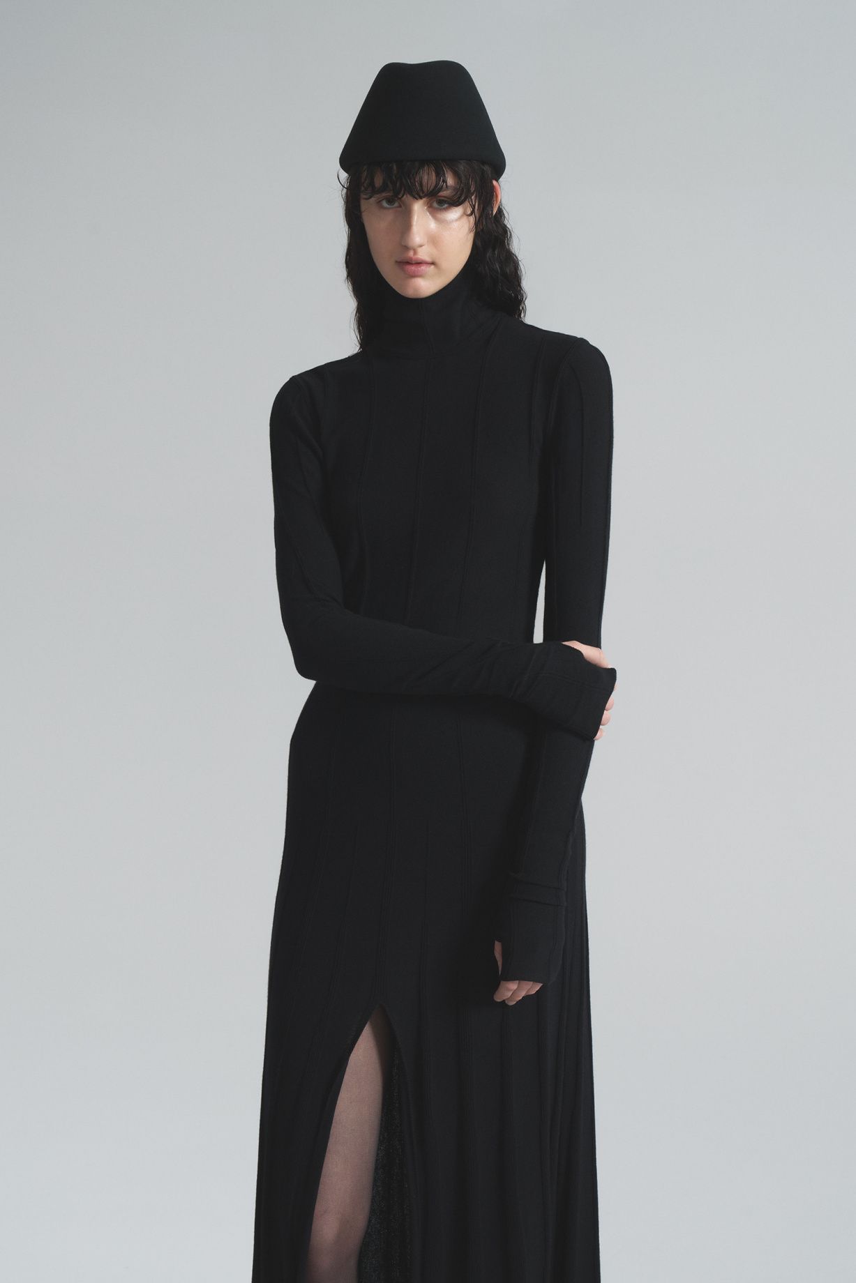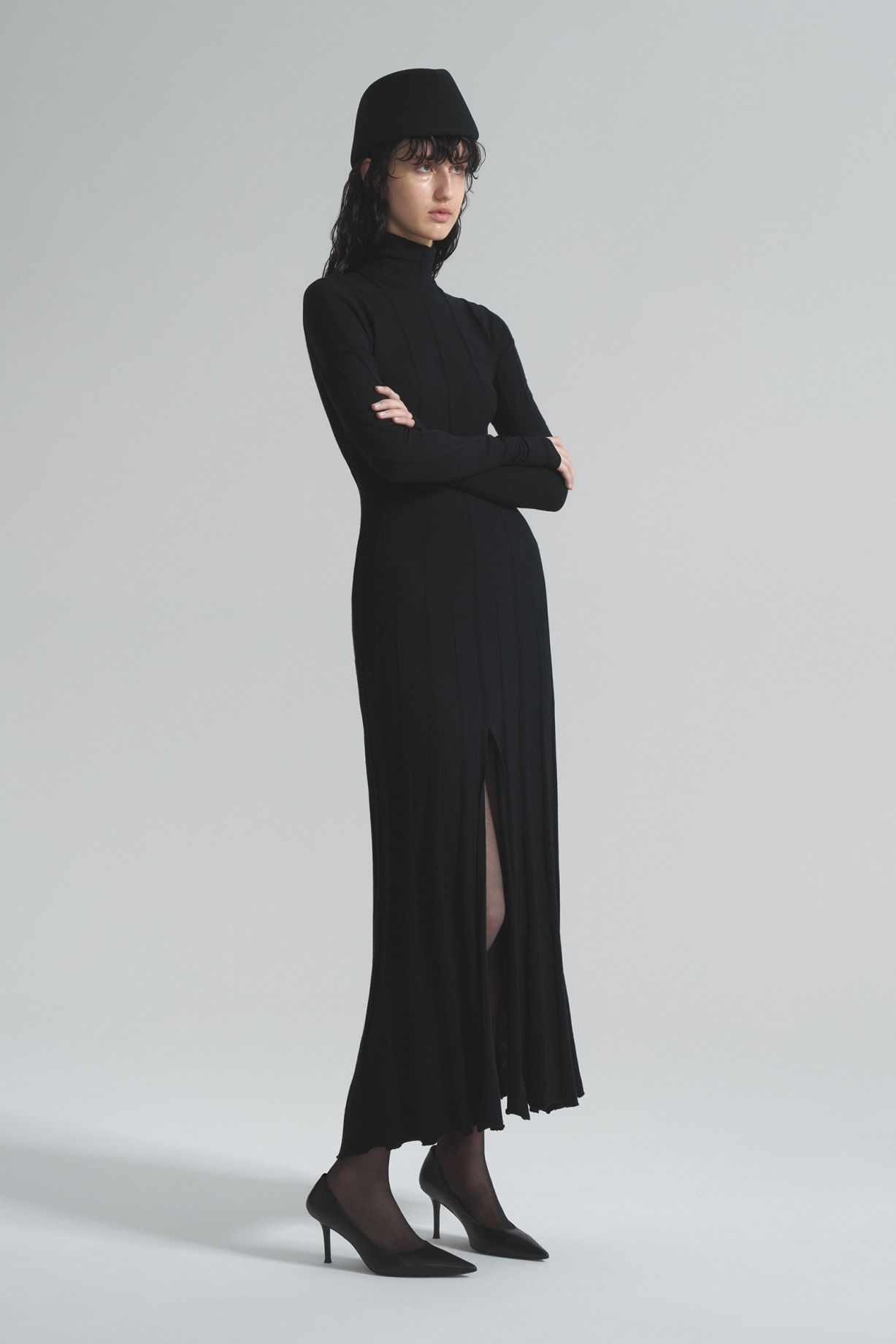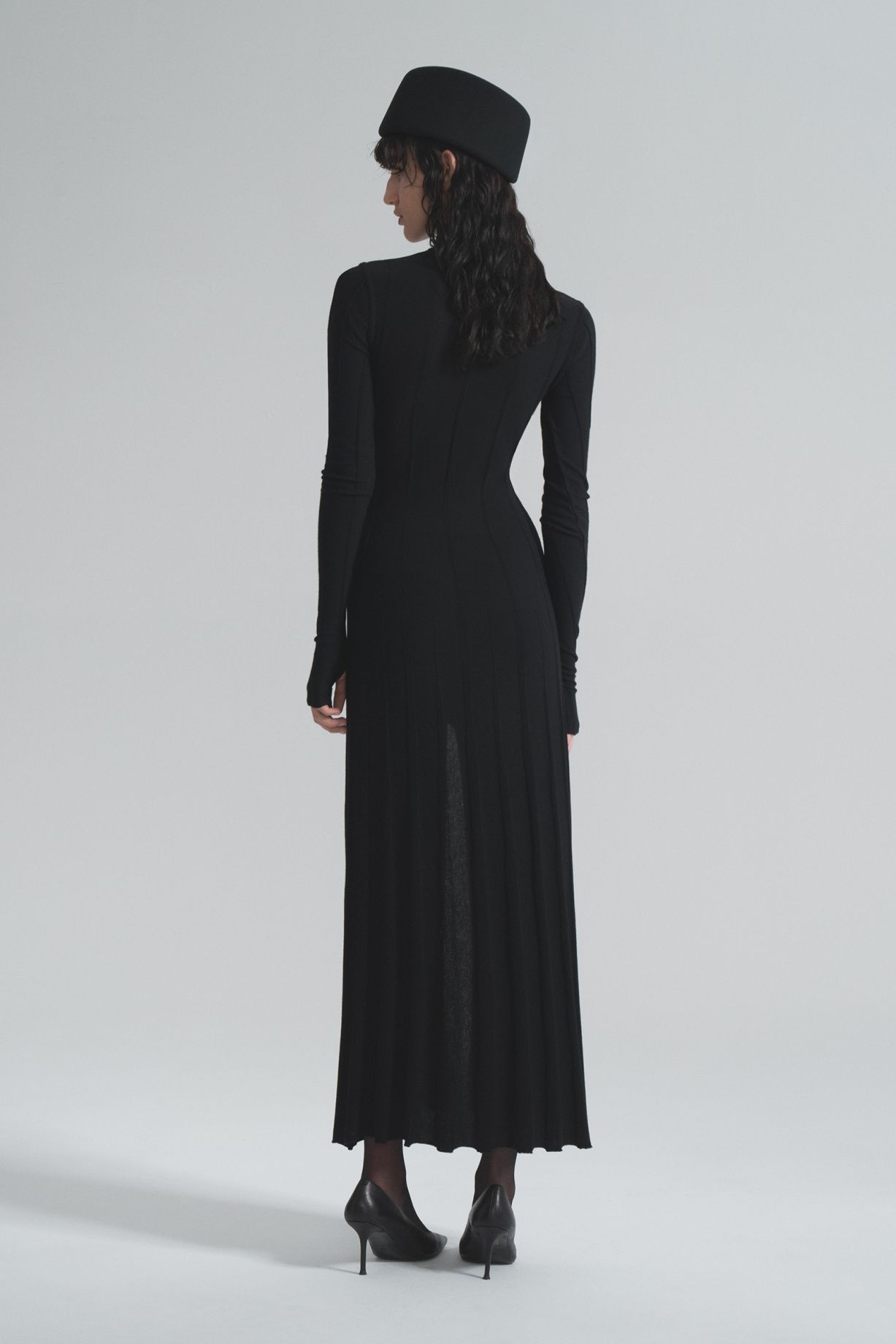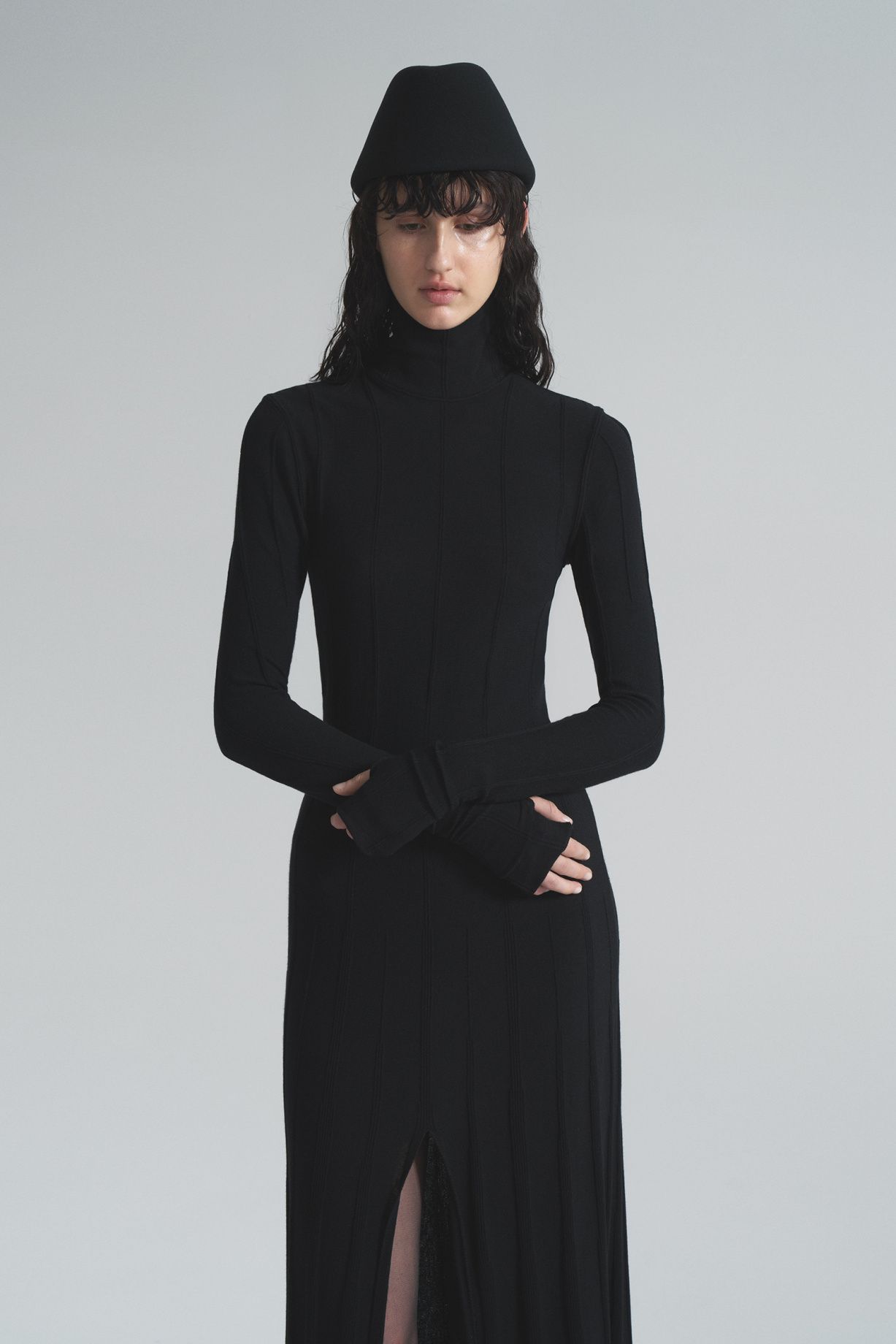 Long sleeves and a slit on the skirt at the front add femininity and sophistication to the dress. This dress can be easily combined with various accessories and shoes, creating a harmonious and complete look. Viscose provides softness and drape, and elastane adds elasticity for a perfect fit.Composition: 91% viscose, 9% elastane