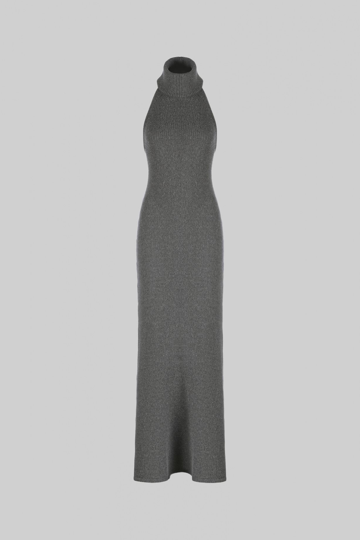 Alpaca and merino wool provide incredible warmth and softness, while viscose adds drape and stretch. The maxi length, high neck and open back give the dress a feminine and sophisticated feel, making it ideal for special occasions and evening events. This dress can be easily combined with various accessories and shoes, creating a harmonious and complete look.Composition: 50% Australian merino wool, 30% baby alpaca, 20% viscose