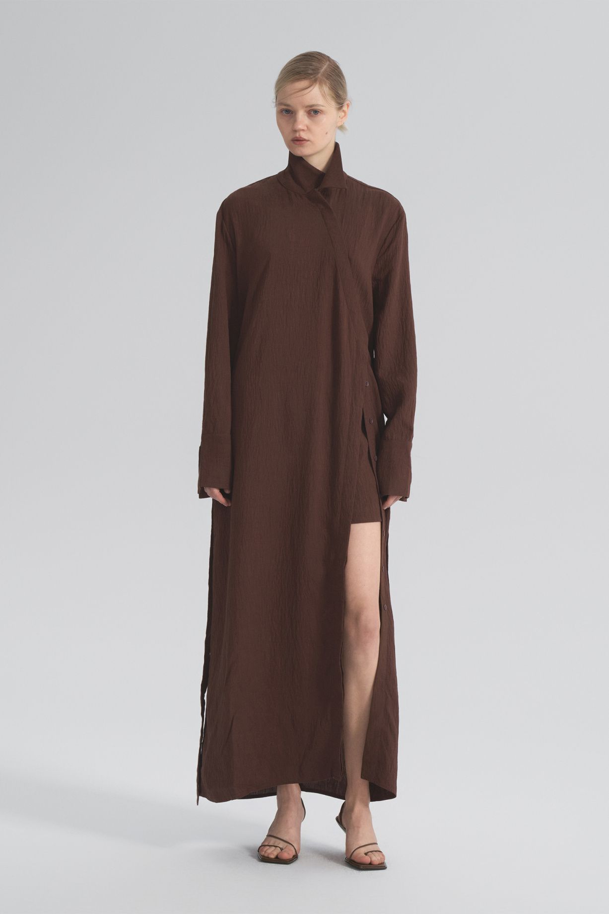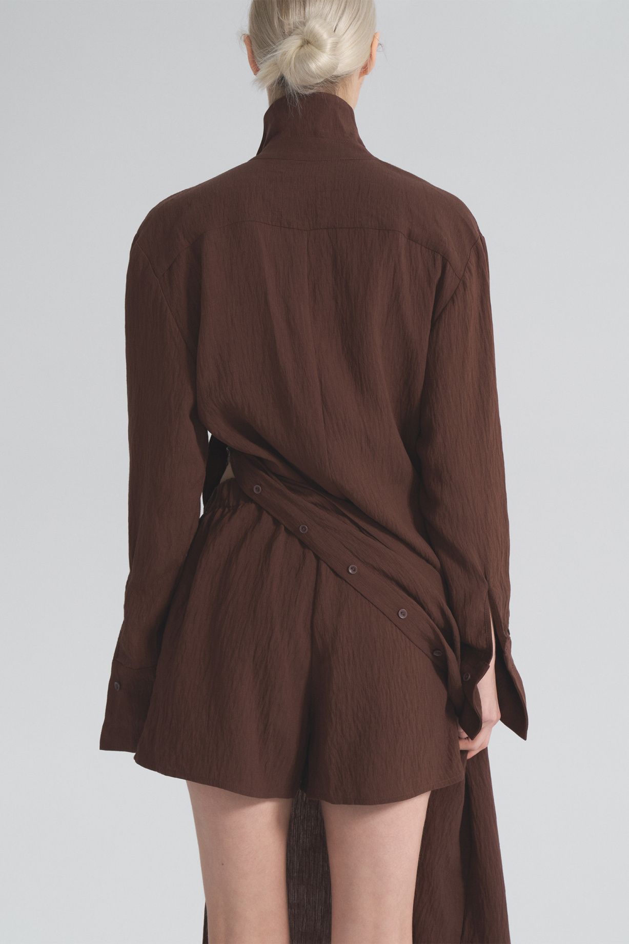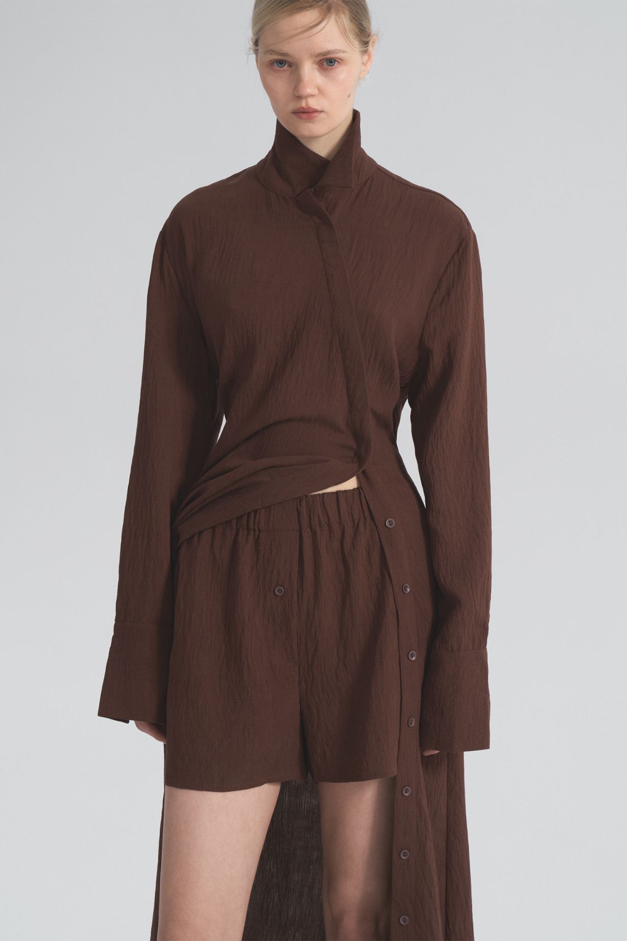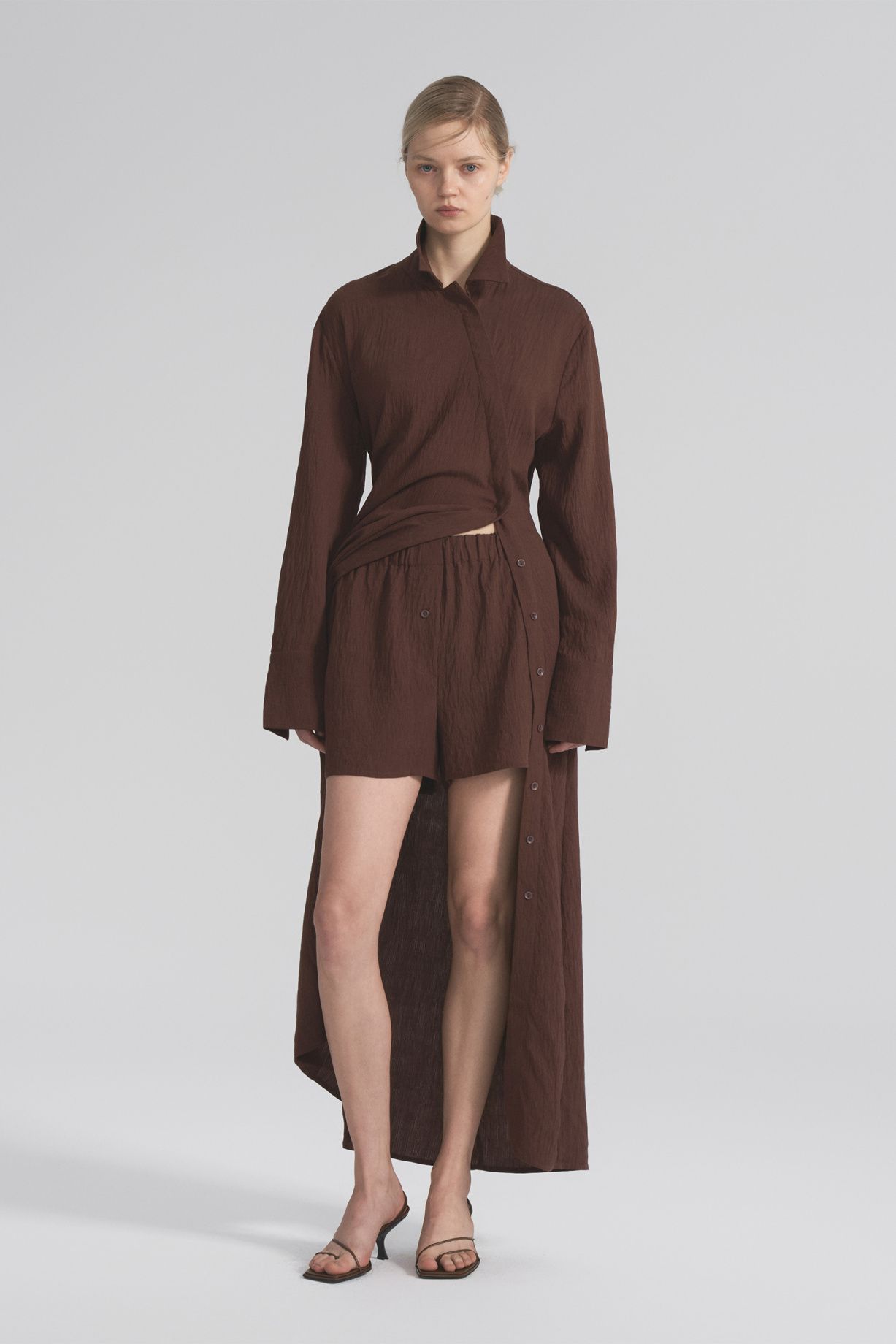 A set of shirt dresses with an asymmetrical closure and shorts.Composition: 80% viscose, 20% linen
