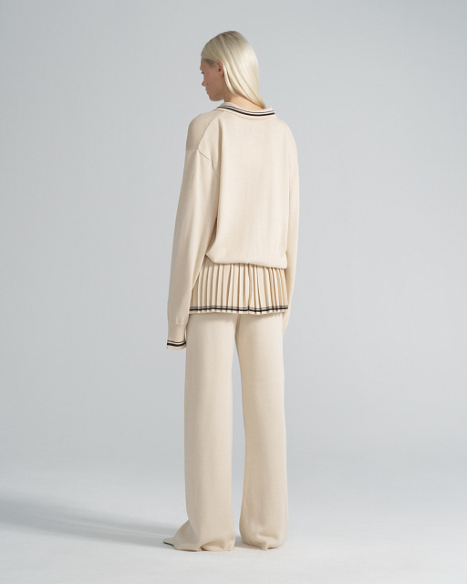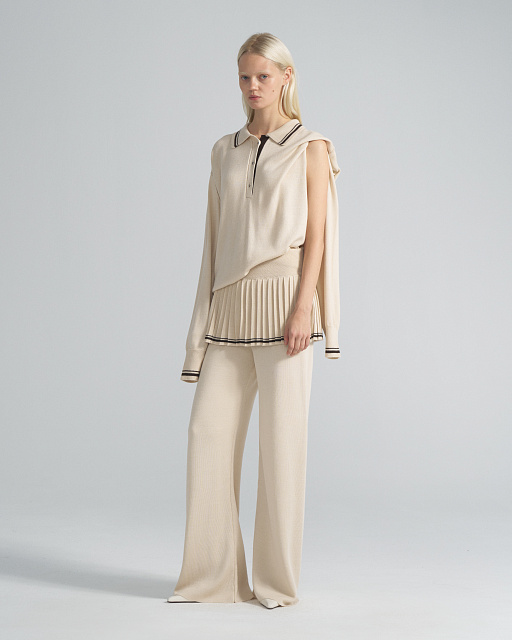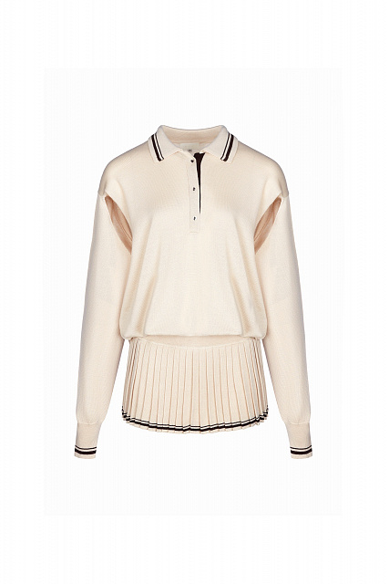 The Anime dress with a drawstring, pleated skirt and buttoned polo collar will be a stylish and versatile addition to your wardrobe. We created transformable sleeves that you can style as you wish, as in the photo. Viscose provides softness and drape, and wool adds warmth and coziness, creating the perfect combination for any time of year.Composition: 60% Australian merino wool, 40% viscose