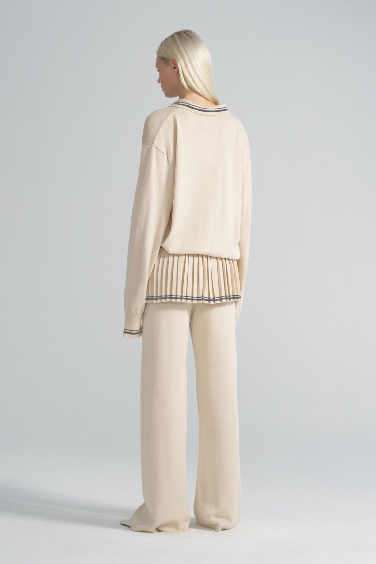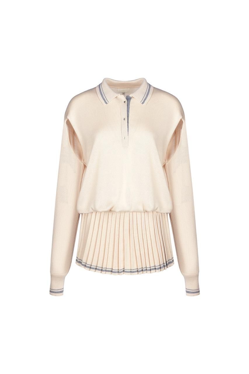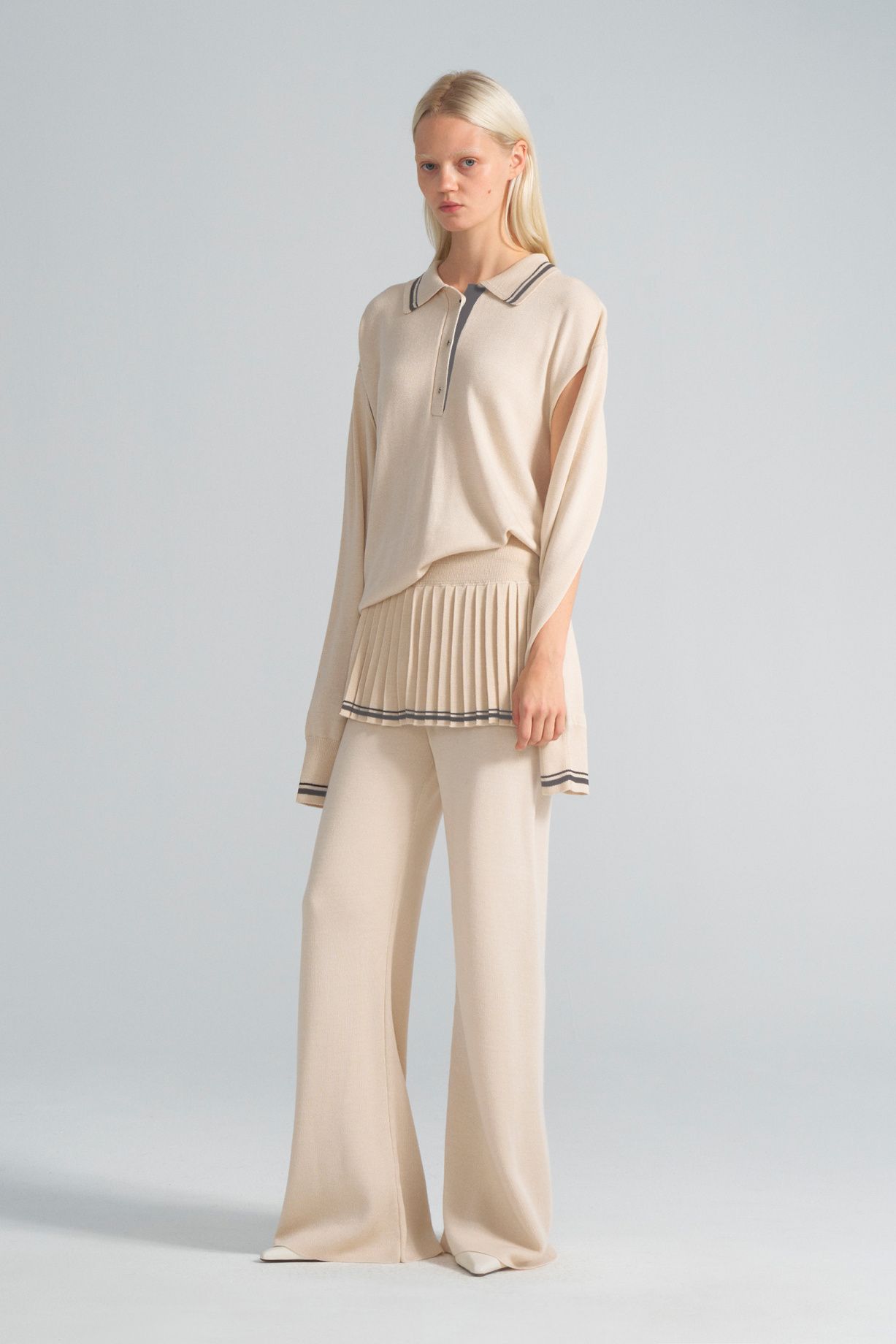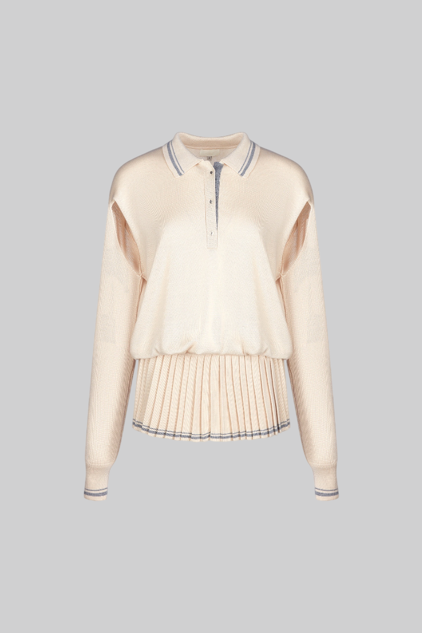 The Anime dress with a drawstring, pleated skirt and buttoned polo collar will be a stylish and versatile addition to your wardrobe. We created transformable sleeves that you can style as you wish, as in the photo. Viscose provides softness and drape, and wool adds warmth and coziness, creating the perfect combination for any time of year.Composition: 60% Australian merino wool, 40% viscose