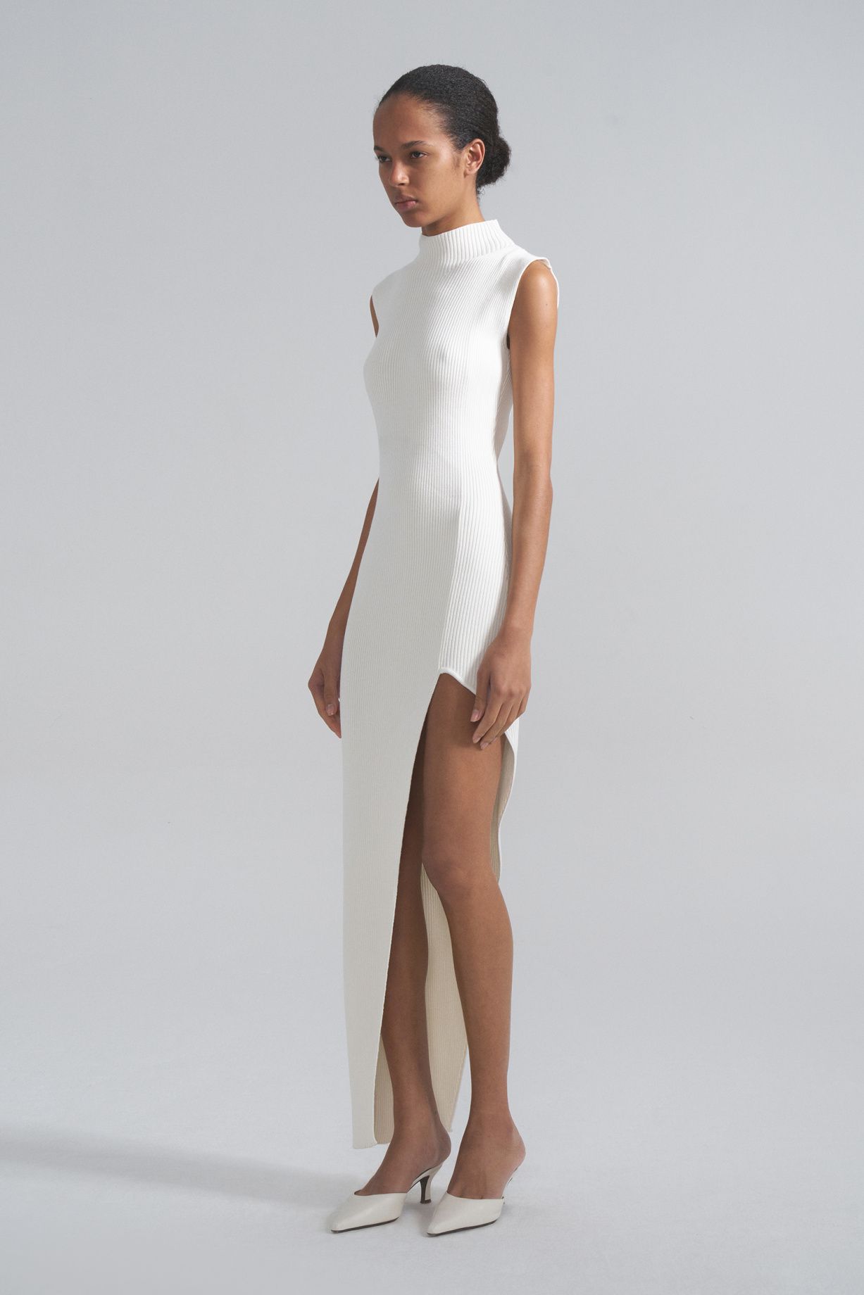 We chose Italian jersey for this piece. Viscose provides softness and drape, while elastane adds stretch for a perfect fit. The midi length, sleeveless and high neck give the dress a feminine and sophisticated look. The slit adds elegance and makes it perfect for special occasions and evening events.Composition: 91% viscose, 9% elastane