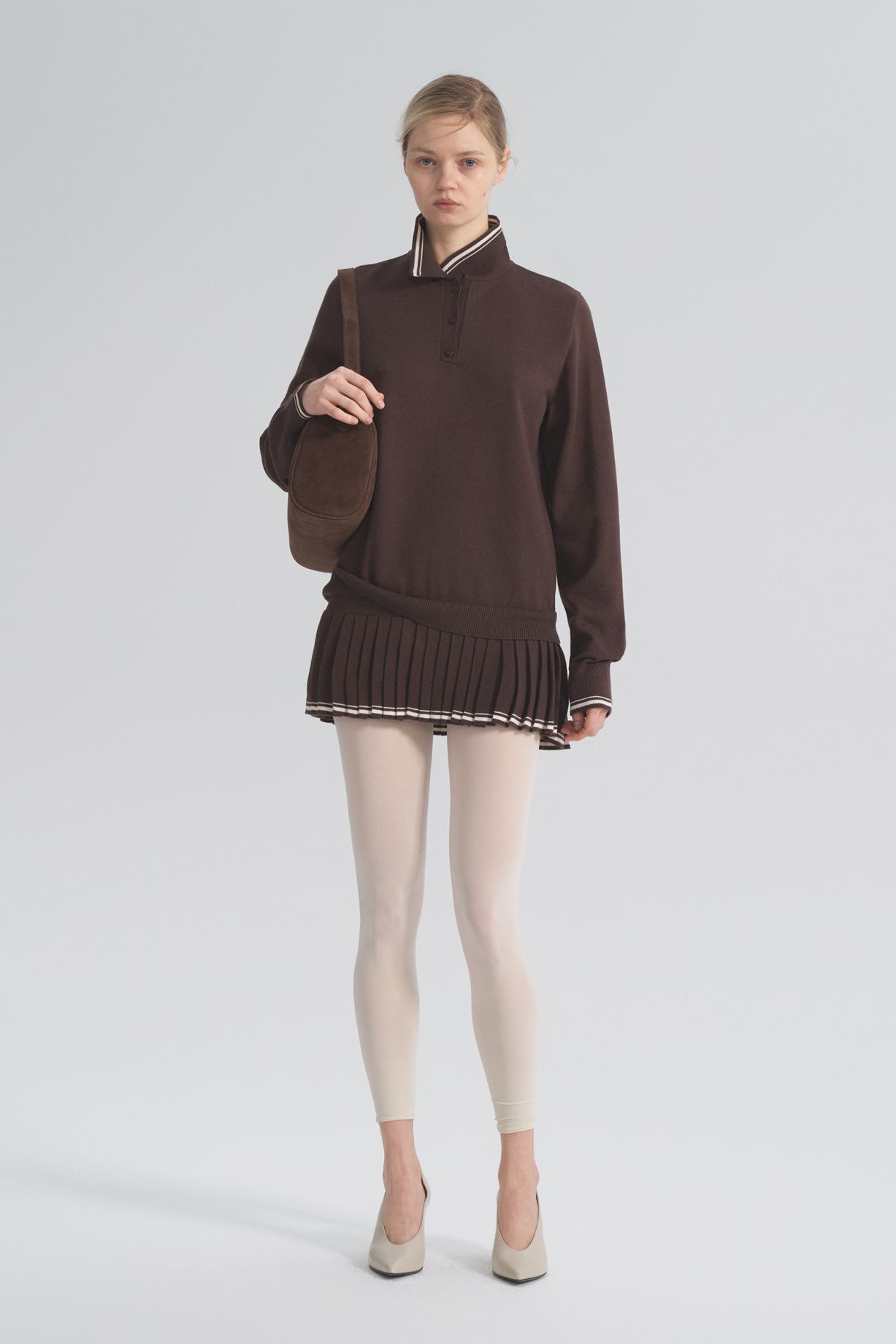 Anime dress with pleated skirt and button-down polo collar.Composition: 80% viscose, 20% wool
